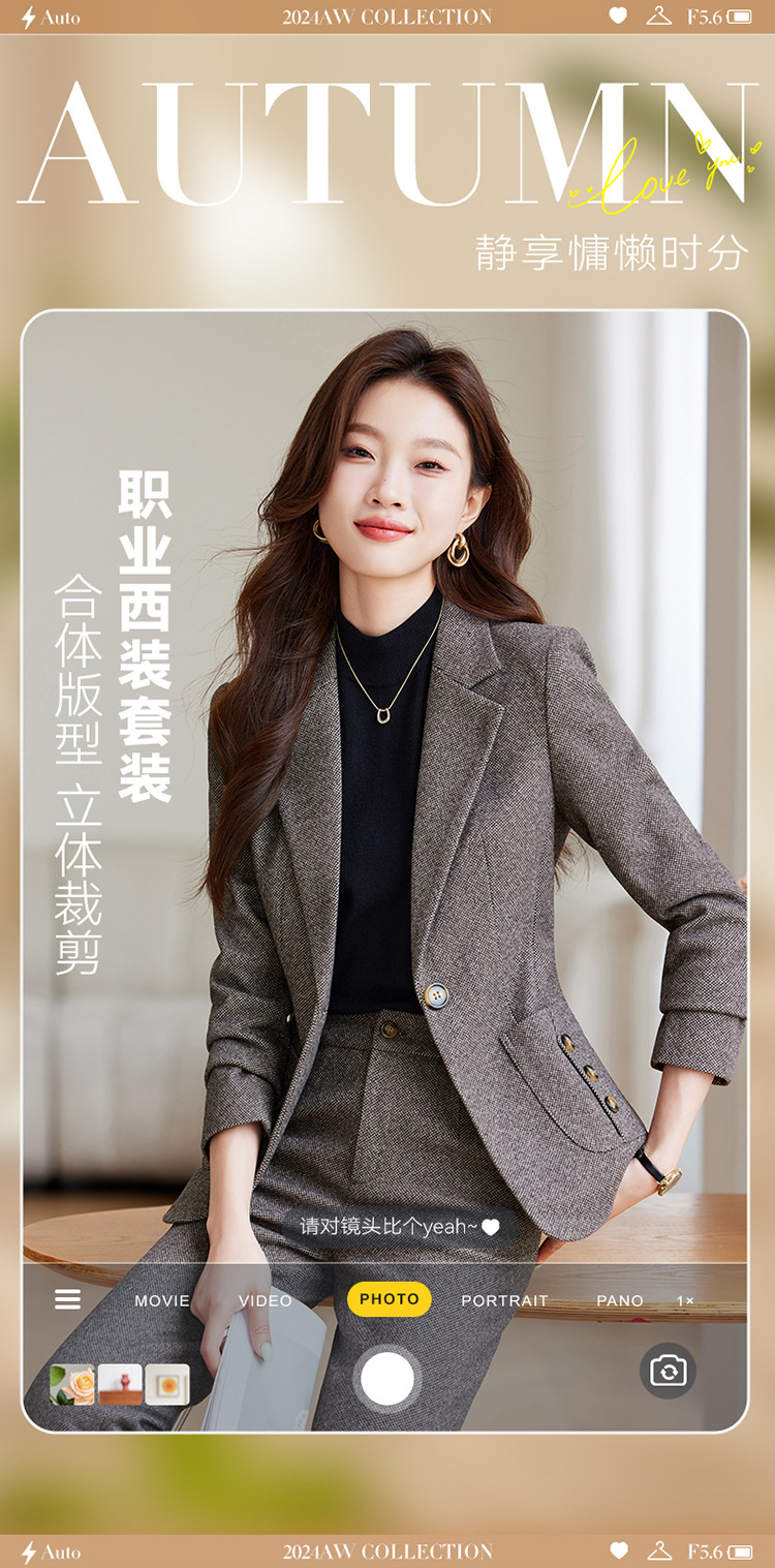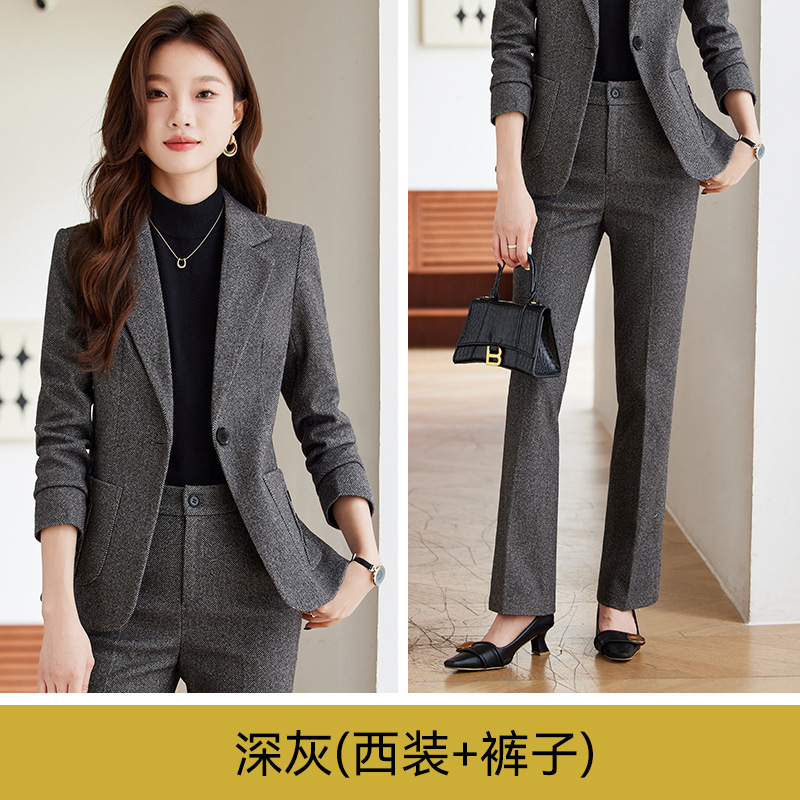 고급 라이트 브라운 모직 세트 재킷 여성의 가을과 겨울 2024 새로운 우아한 패션 캐주얼 세트 투피스 세트스토어 가기