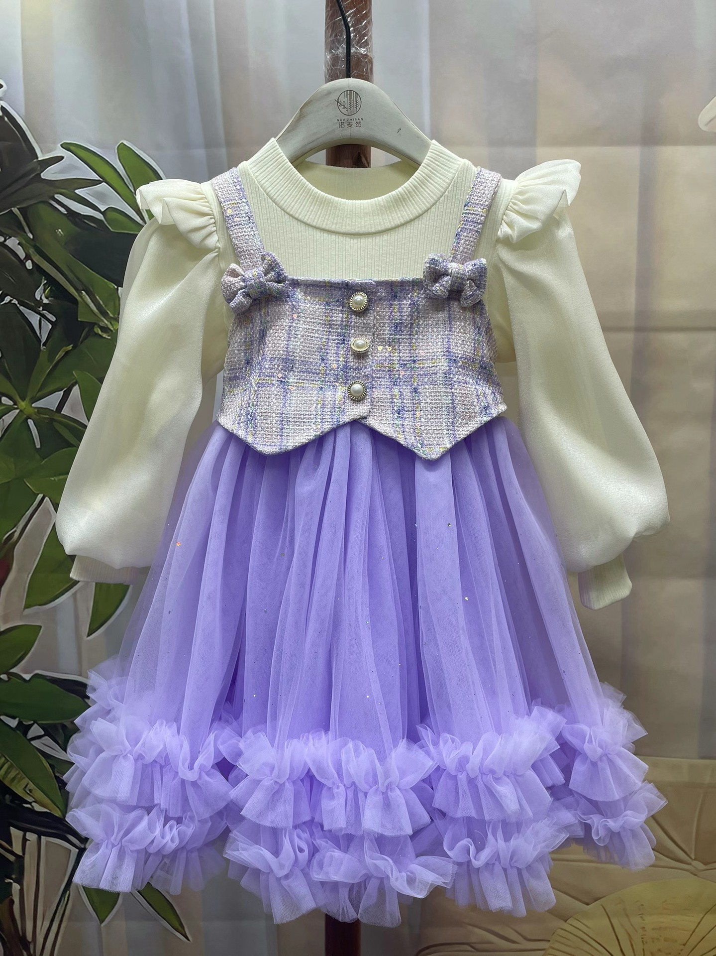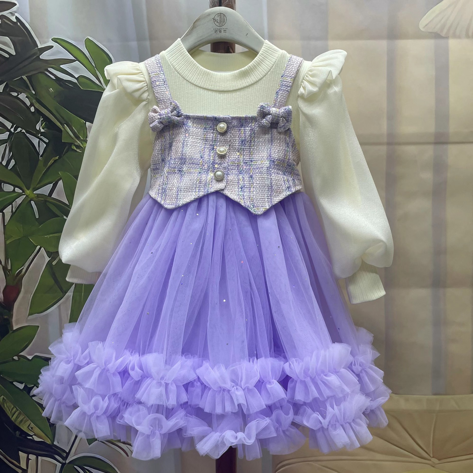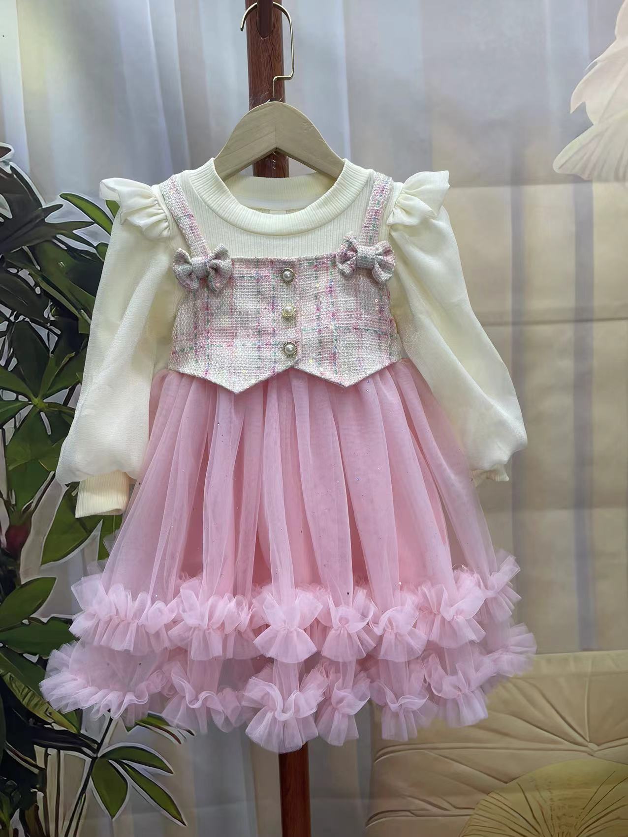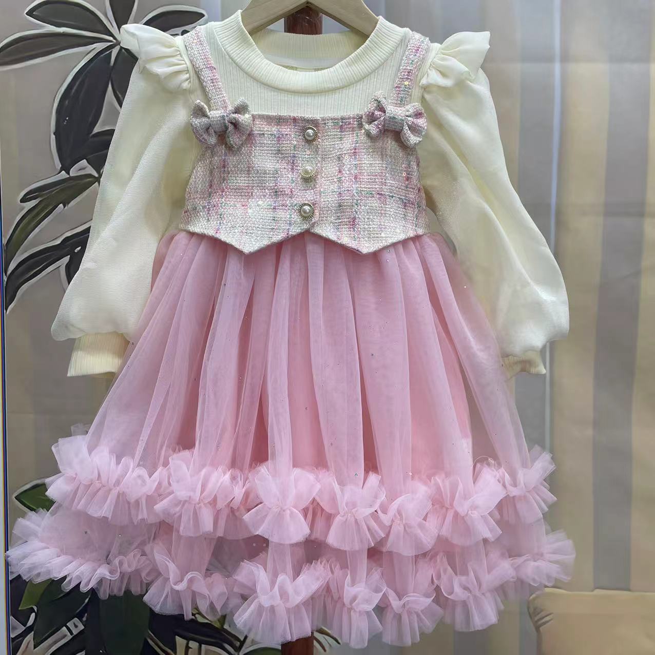 기모 가을과 겨울 새 소녀의 원피스 가짜 투피스 달콤한 활 공주 원피스 어린 소녀의 긴팔 공연 옷스토어 가기