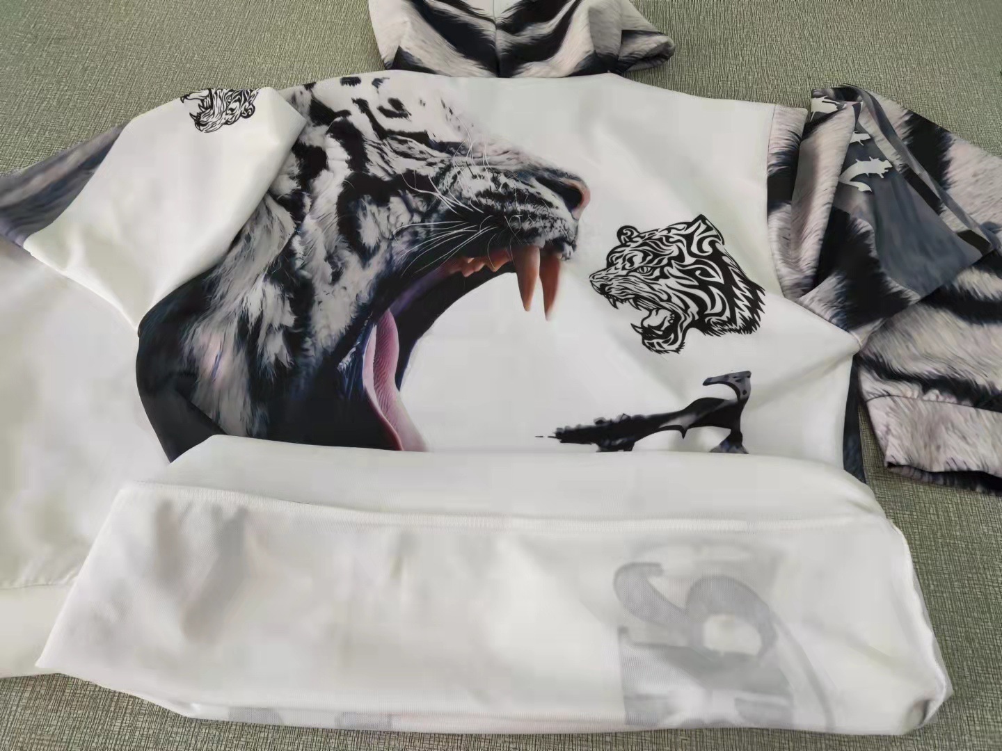 봄과 가을 새로운 후드 라이온 타이거 3D 디지털 인쇄 패턴 남성 캐주얼 스포츠 스웨터