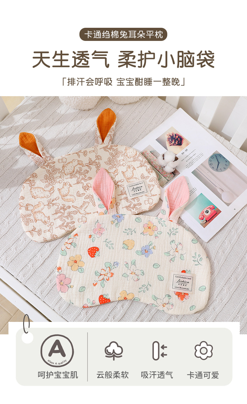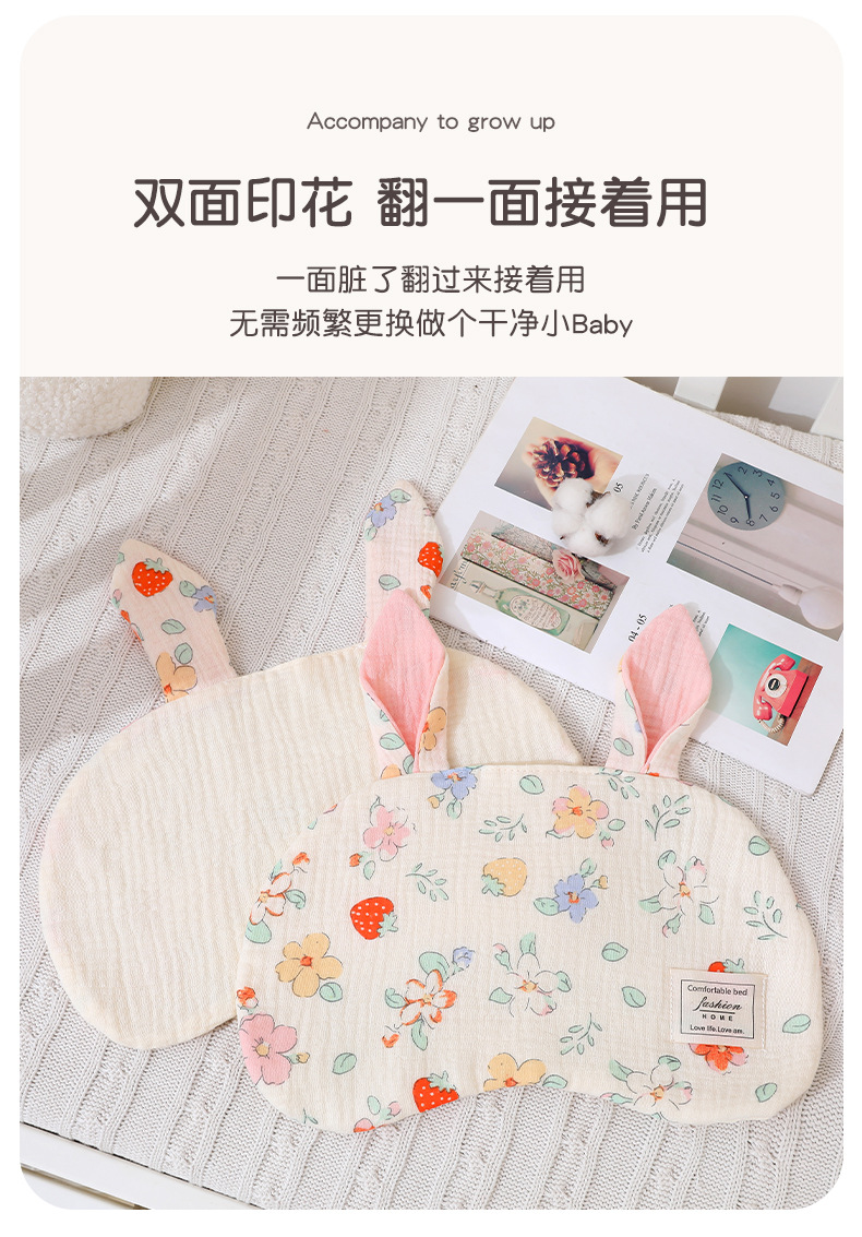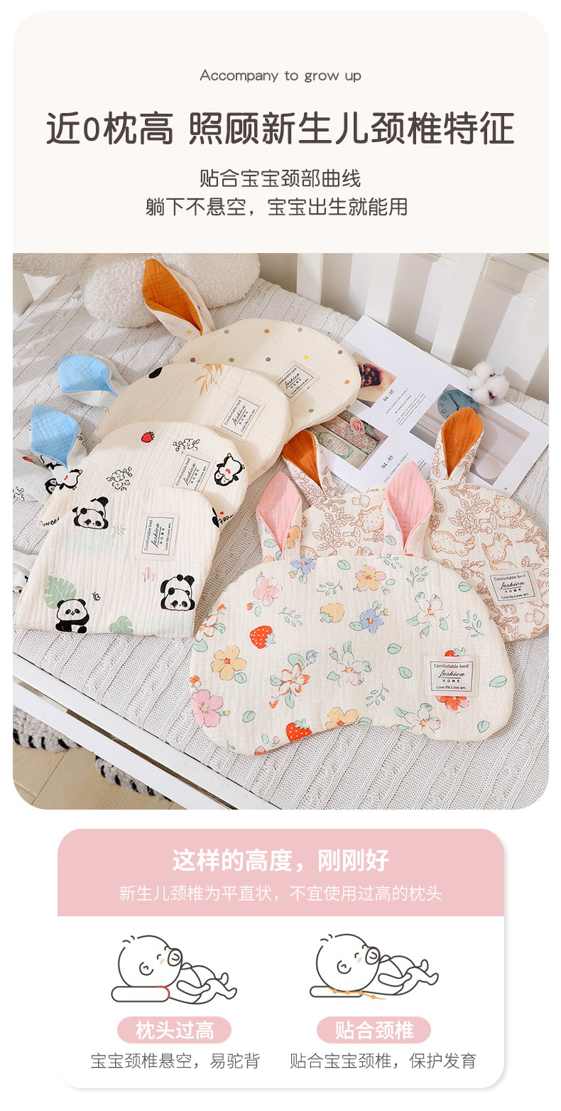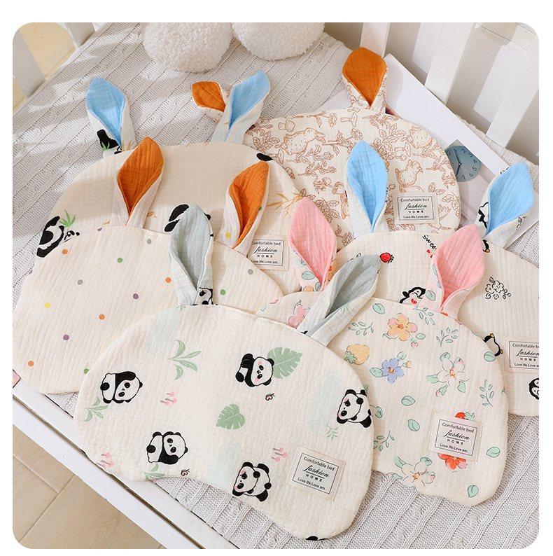 새로운 거즈 구름 베개 아기 컬러 긴 귀 플랫 베개 신생아 베개 안티 침 베개 수건스토어 가기