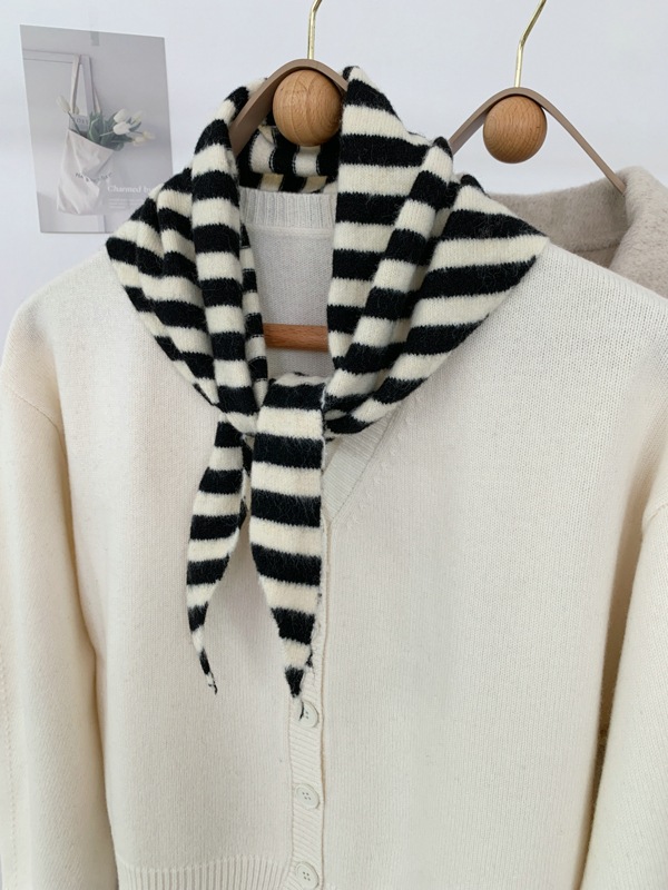 재고 컬러 줄무늬 울 삼각형 장식 니트 작은 스카프 부드러운 일본 다기능 작은 목 목걸이스토어 가기