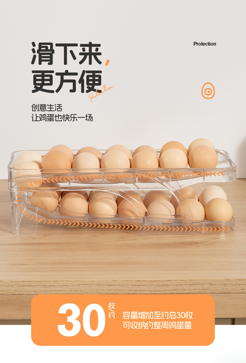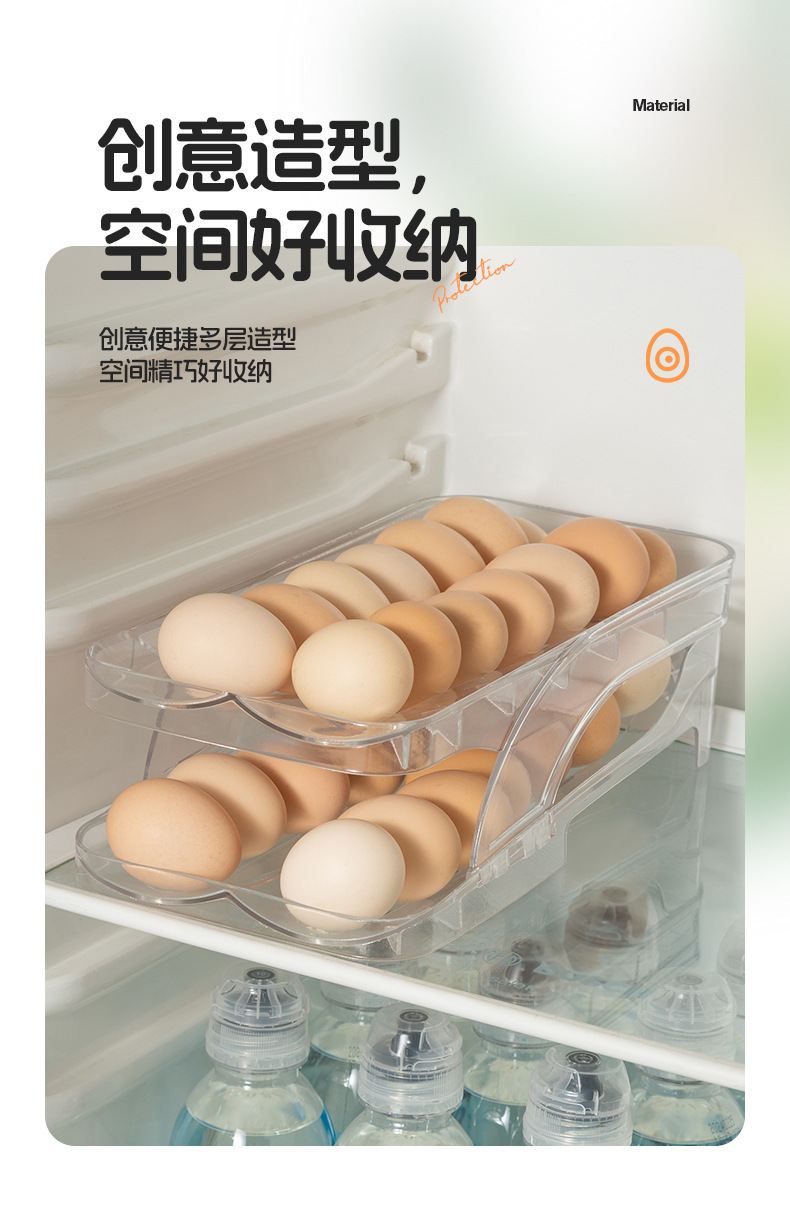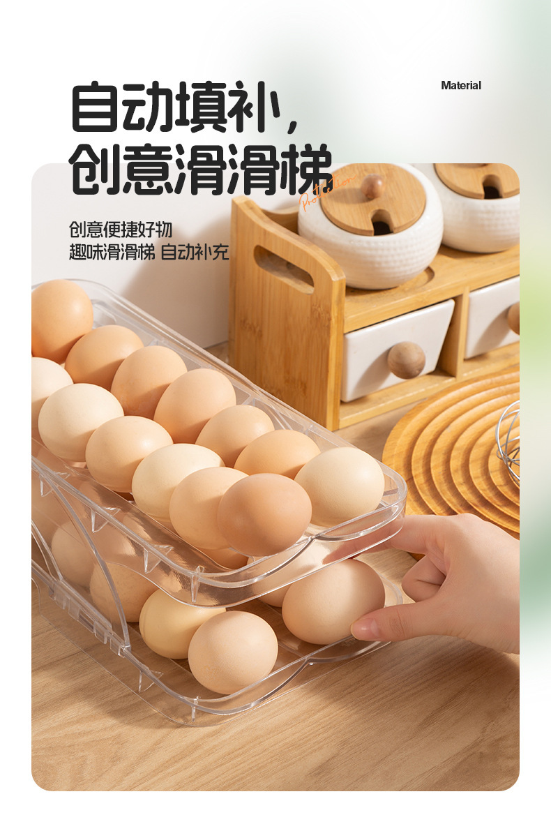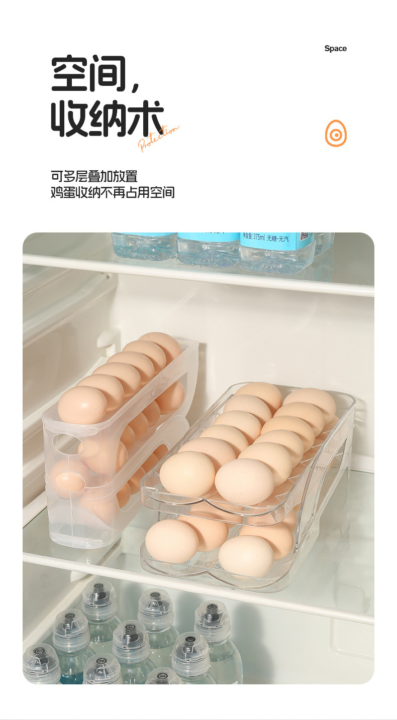 국경 간 새로운 창조적 인 롤링 계란 상자 주방 자동 충전 계란 상자 냉장고 더블 슬라이드 계란 랙스토어 가기