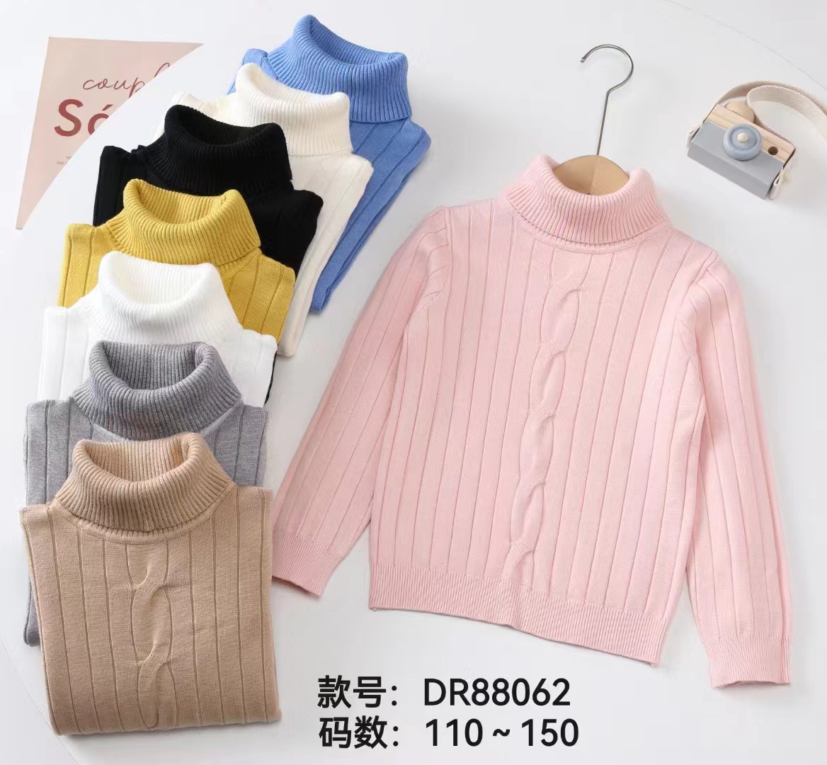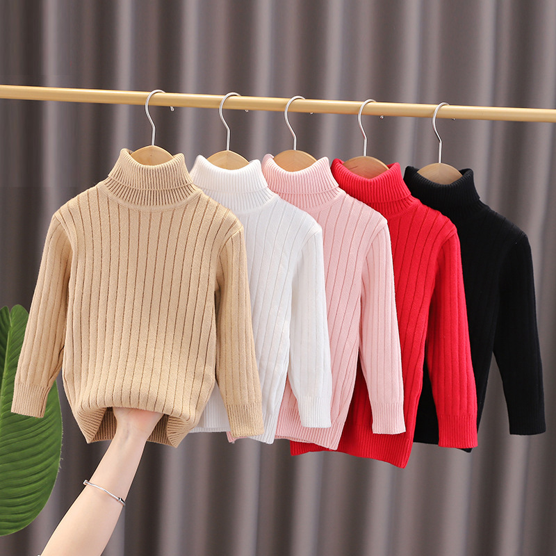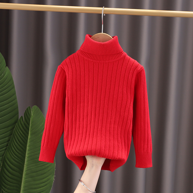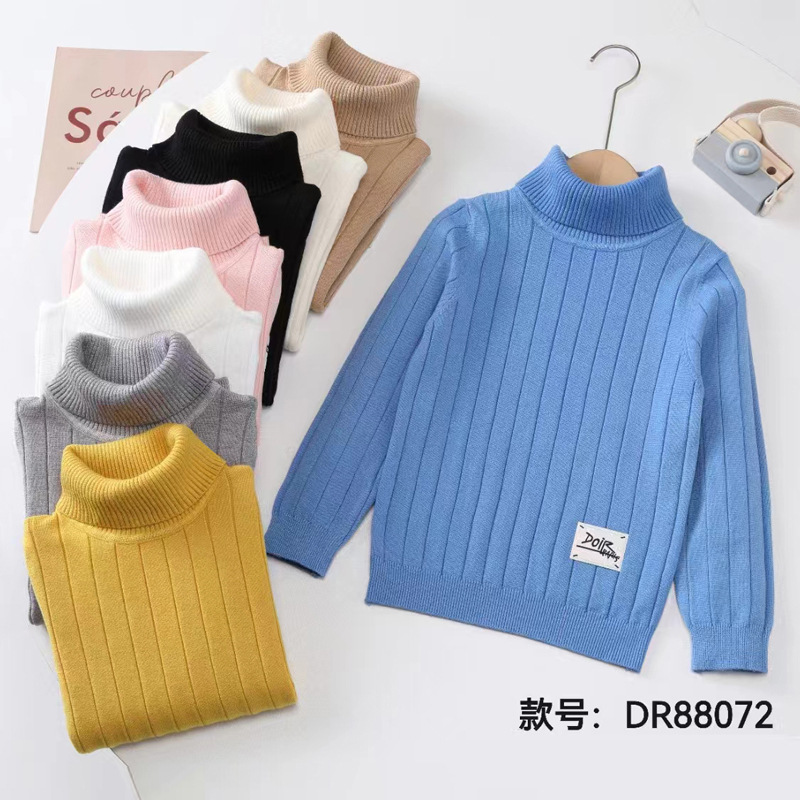 어린이 터틀넥 스웨터 가을과 겨울 단색 소녀 풀오버 스웨터 소년 니트 베이스 셔츠 대외 무역 도매스토어 가기