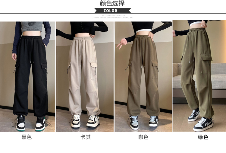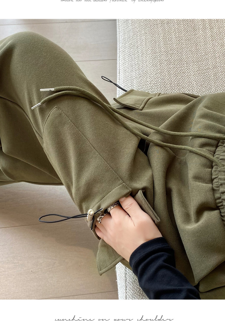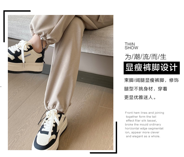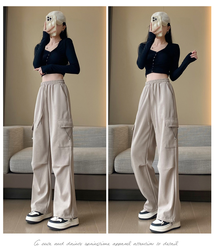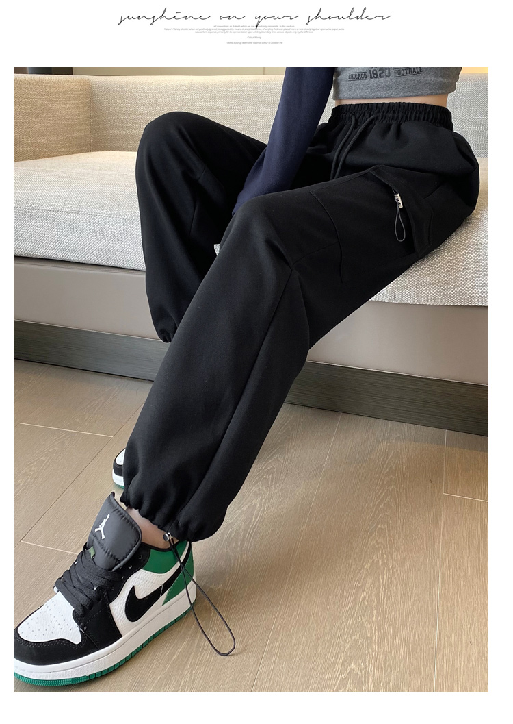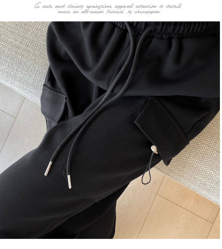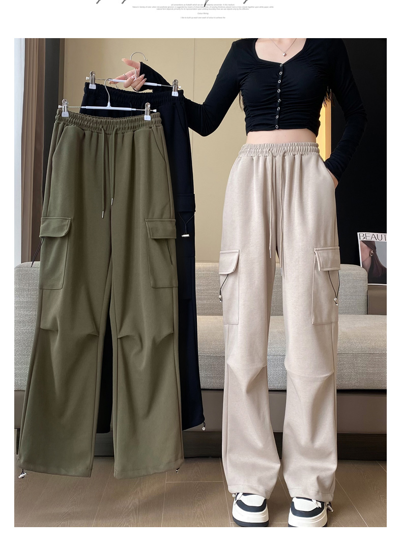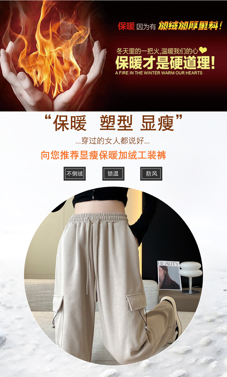 미국 스타일 기모 주의 바지 여성 가을 및 겨울 높은 허리 스트랩 Dagging 스트레이트 다리 넓은 다리 바지 작은 캐주얼 스포츠 바지스토어 가기