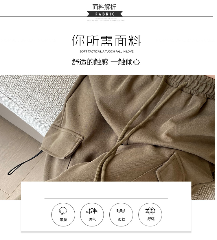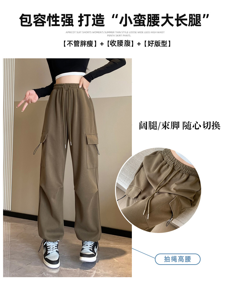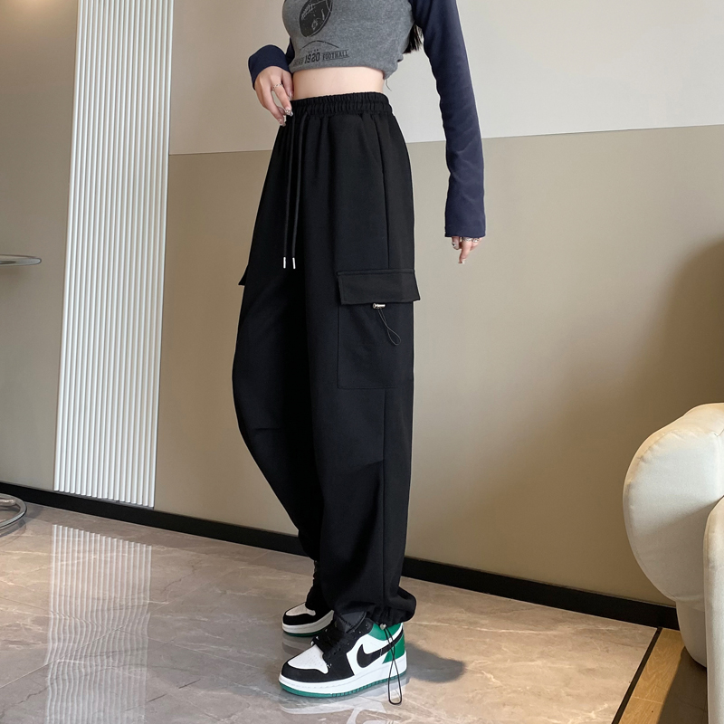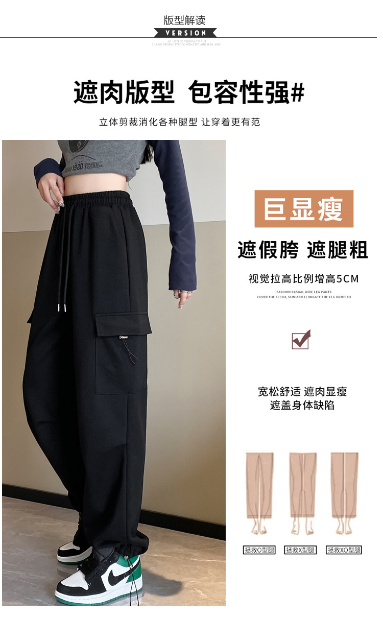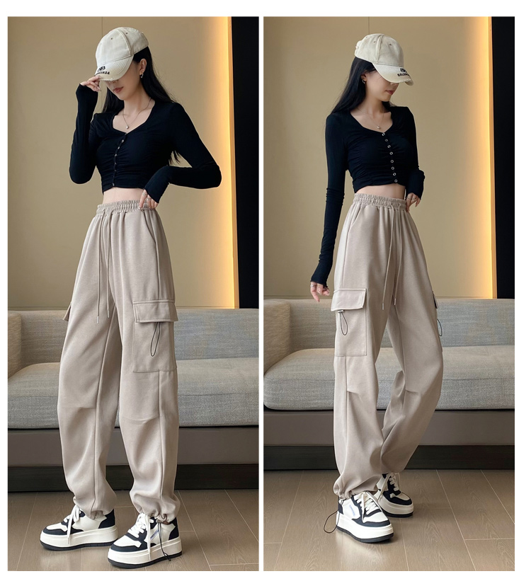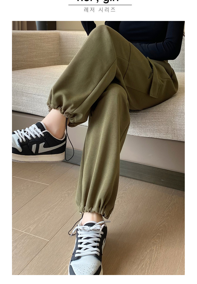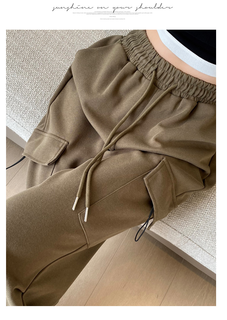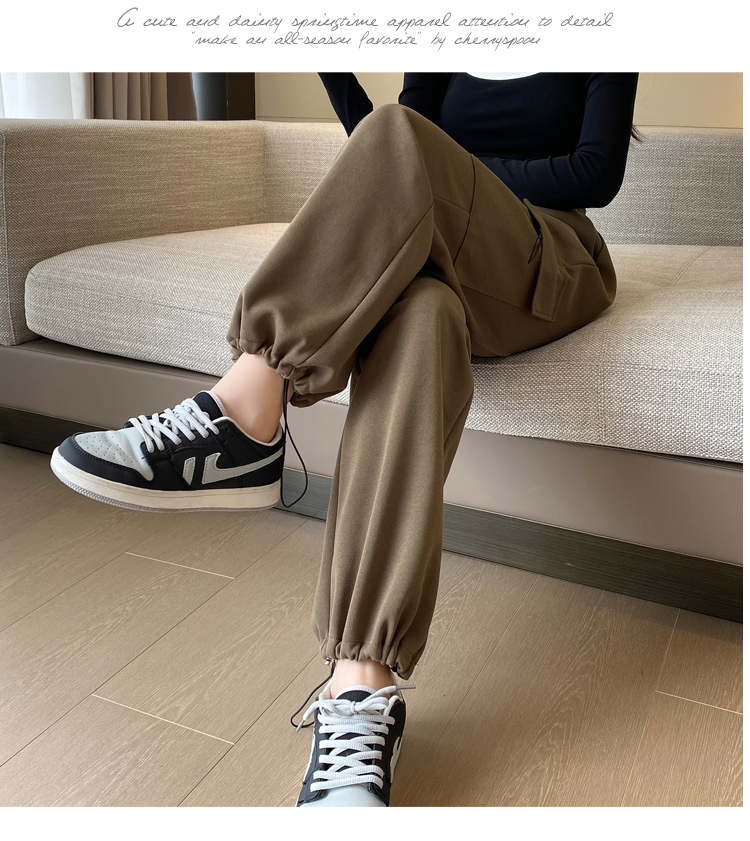 미국 스타일 기모 주의 바지 여성 가을 및 겨울 높은 허리 스트랩 Dagging 스트레이트 다리 넓은 다리 바지 작은 캐주얼 스포츠 바지스토어 가기