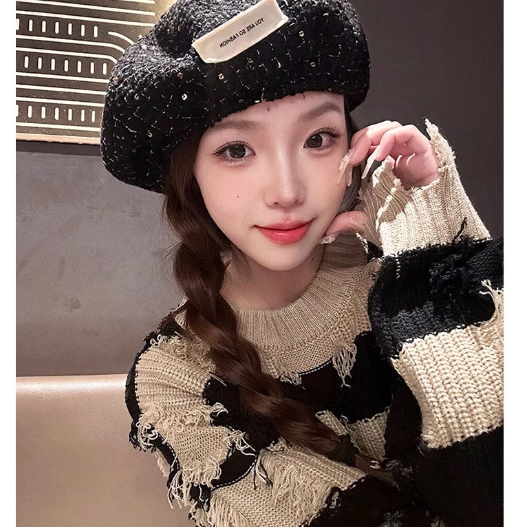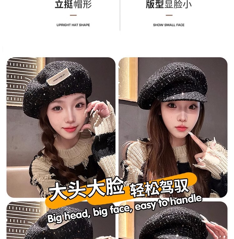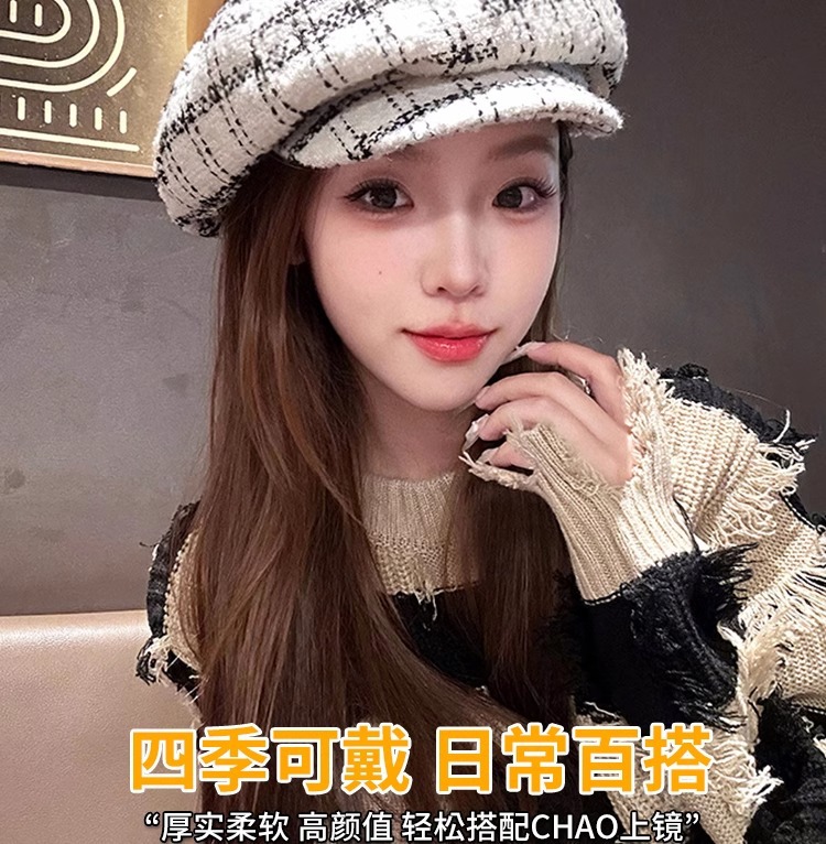 하이 엔드 팔각형 모자 작은 가을 겨울 패션 올 매치 클라우드 모자 밝은 실크 작은 샤넬 바람 착용 베레 어린이 얼굴 표시스토어 가기