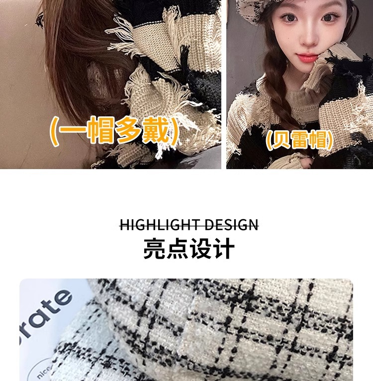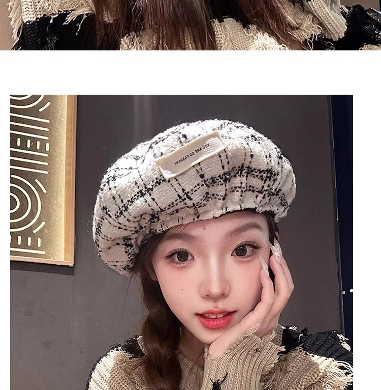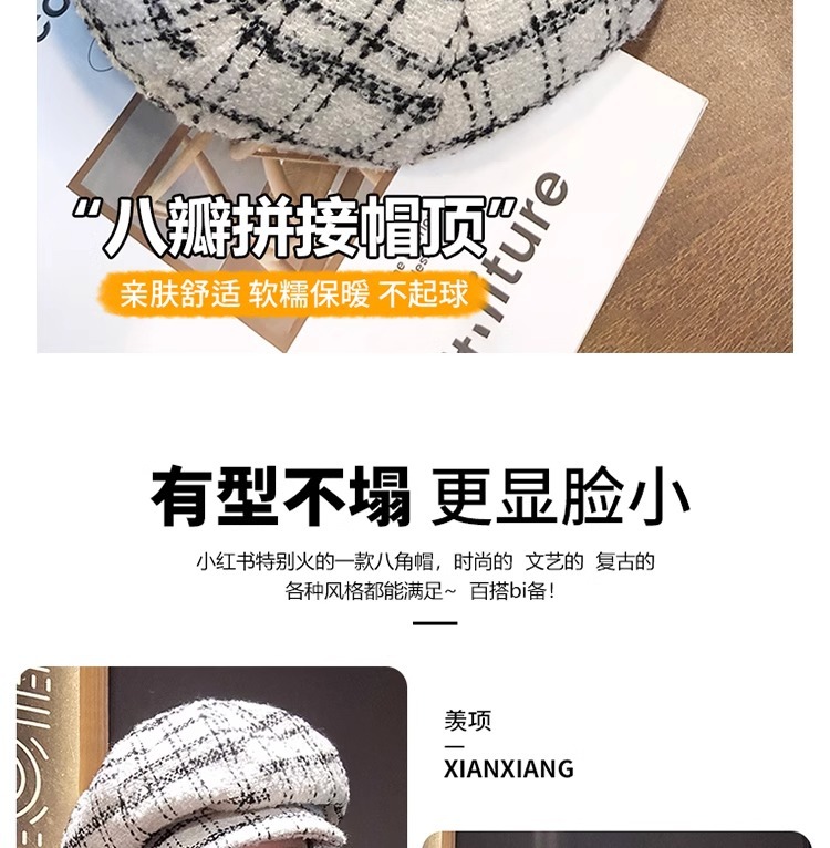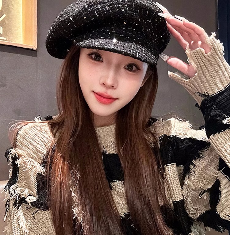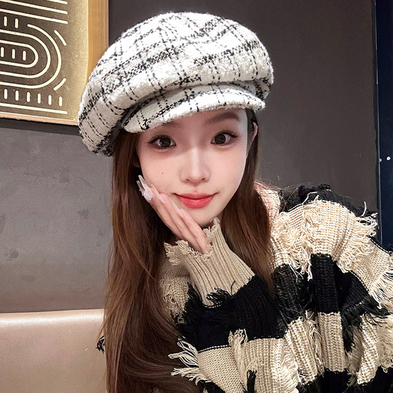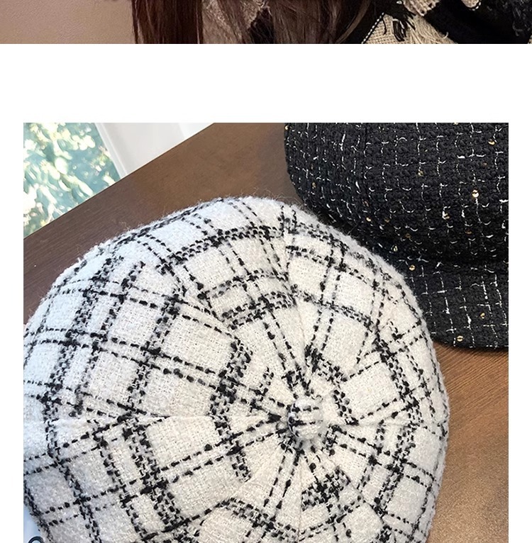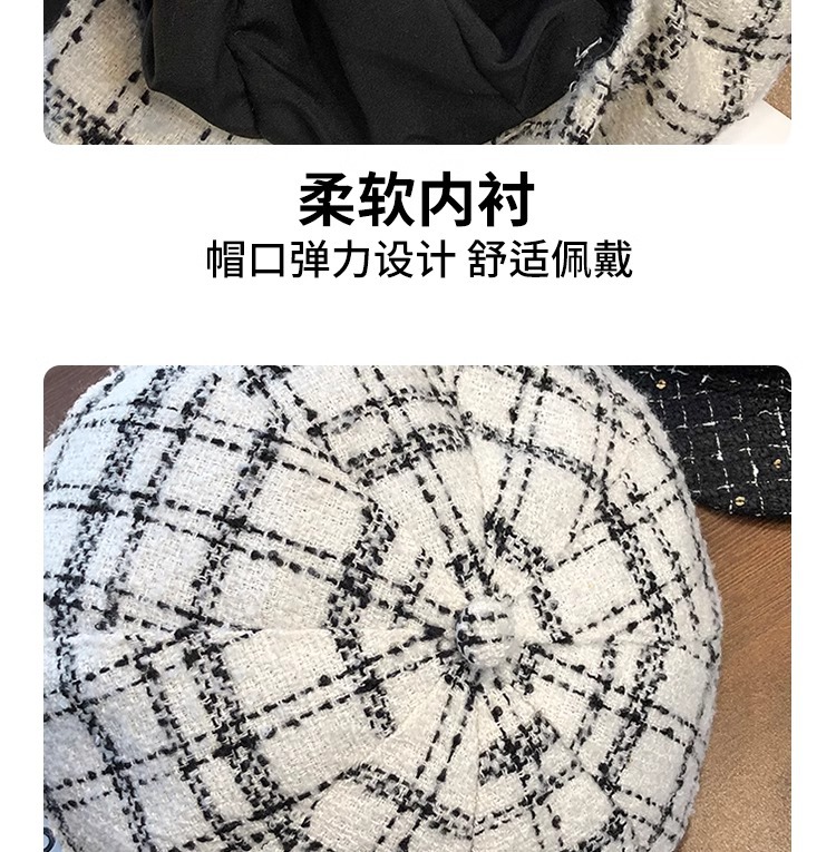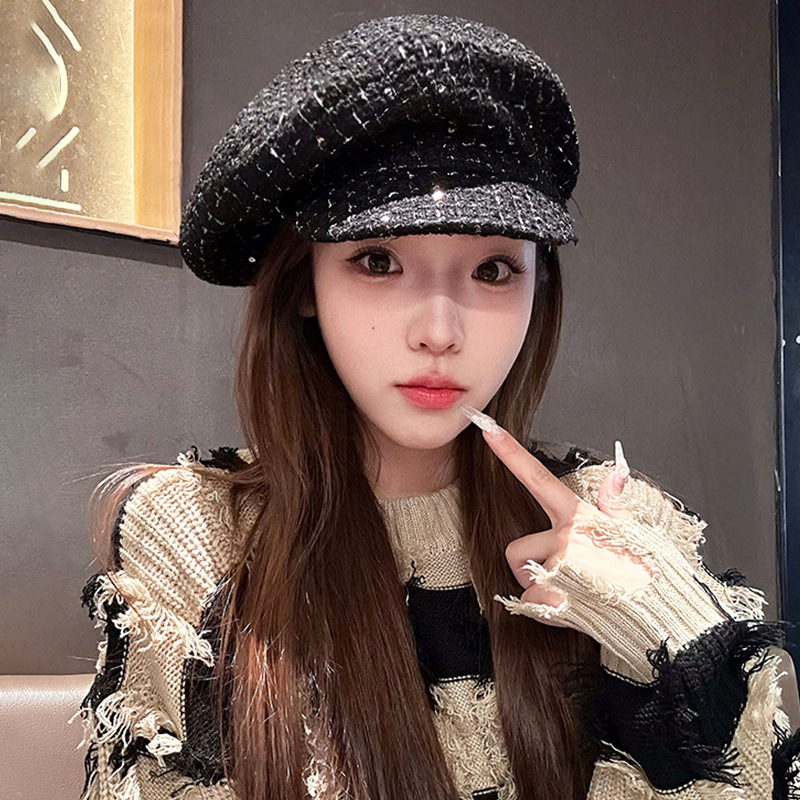 하이 엔드 팔각형 모자 작은 가을 겨울 패션 올 매치 클라우드 모자 밝은 실크 작은 샤넬 바람 착용 베레 어린이 얼굴 표시