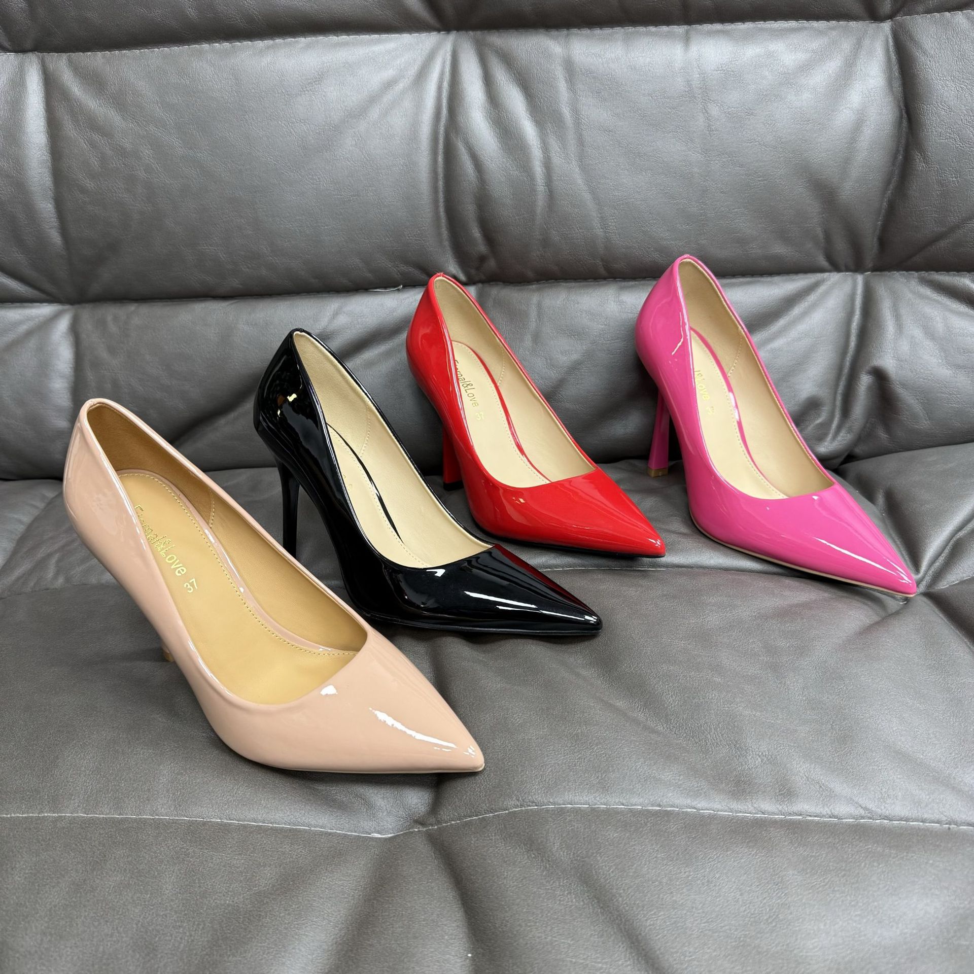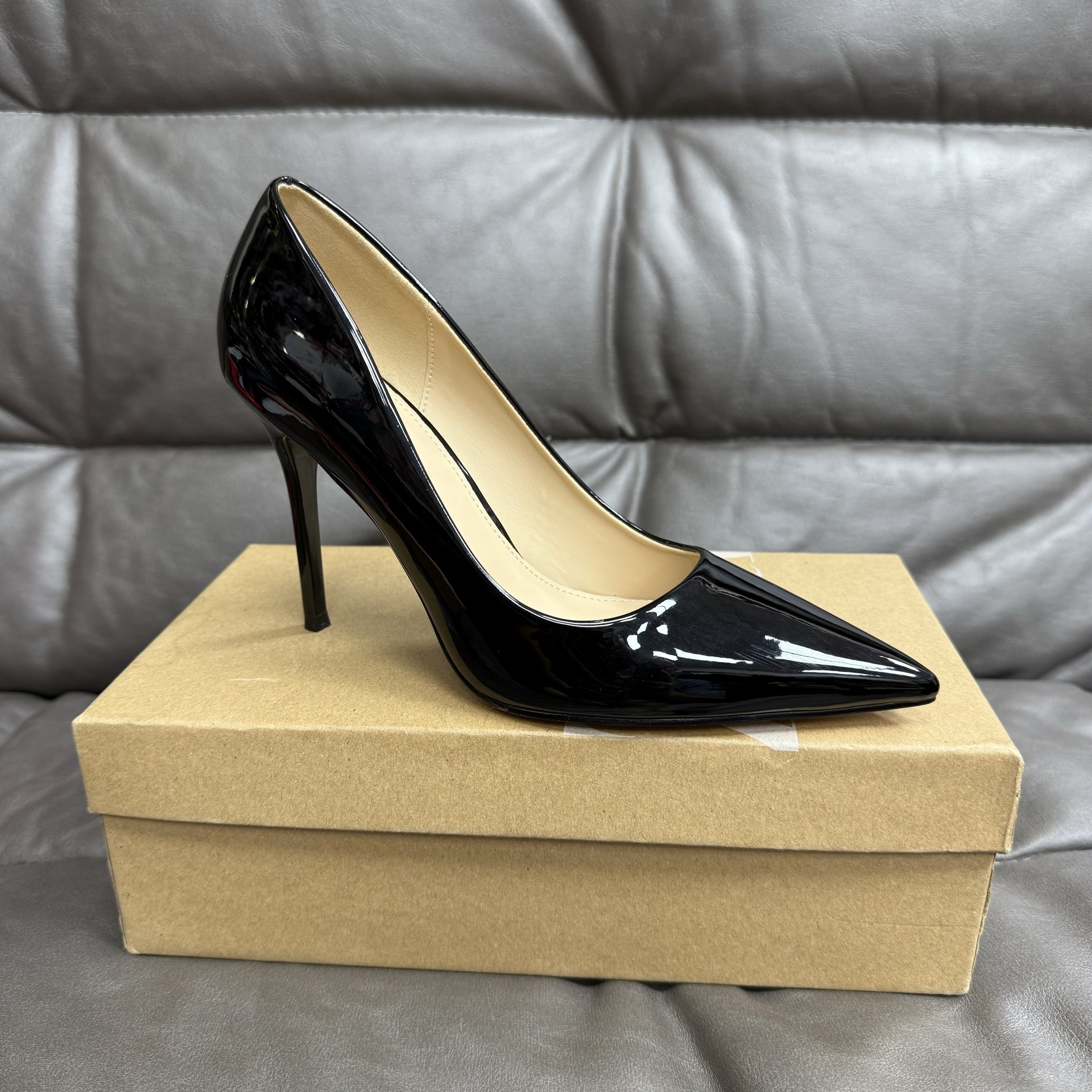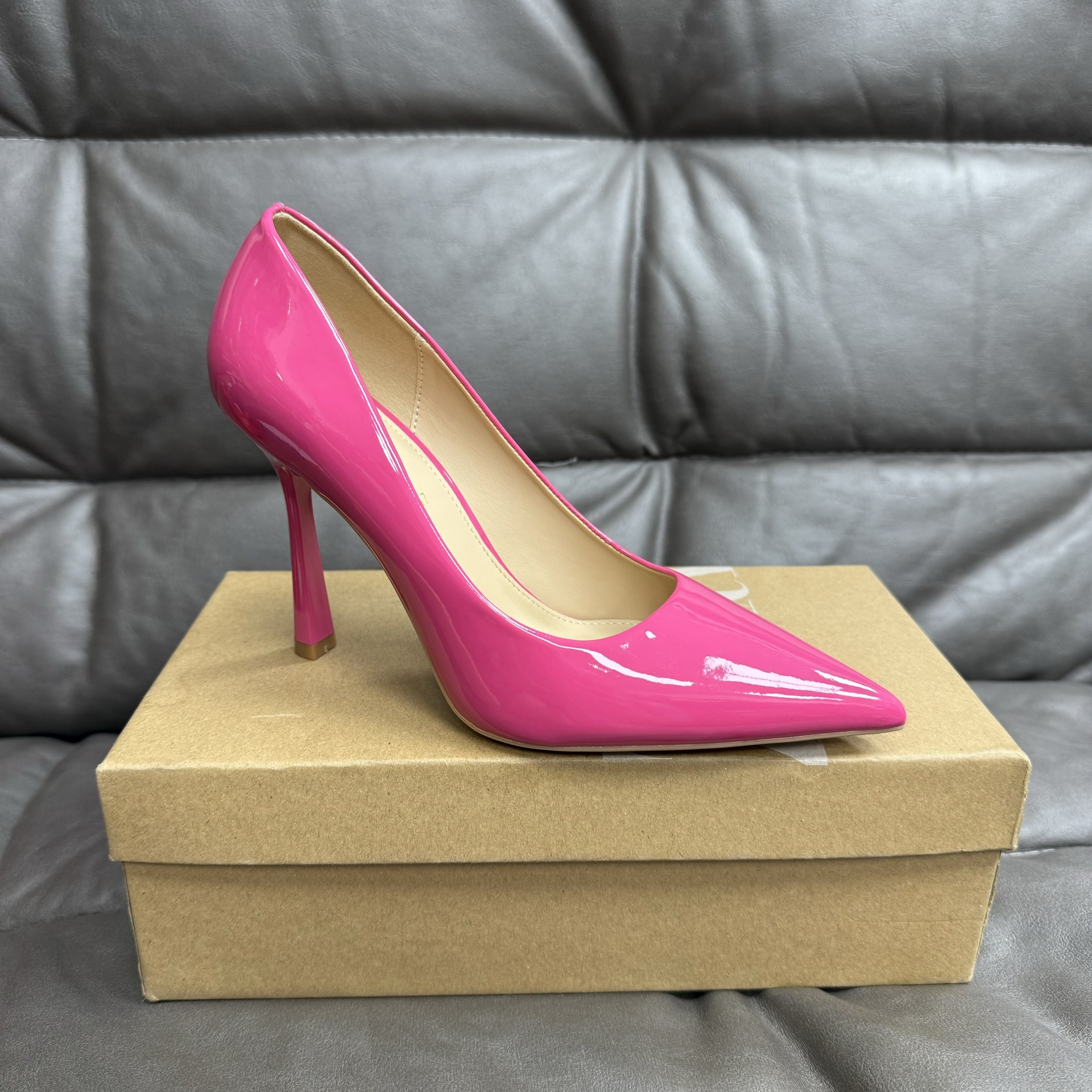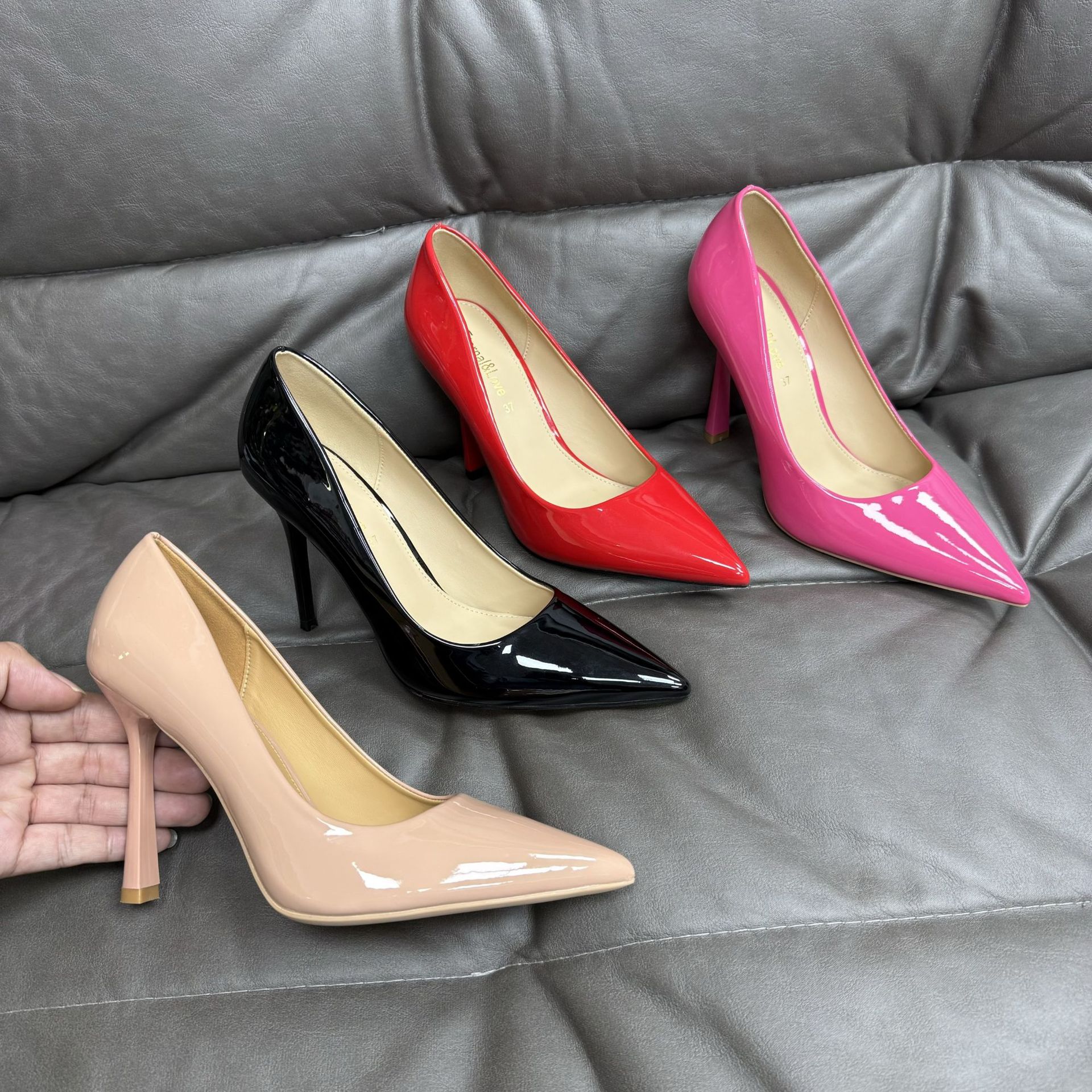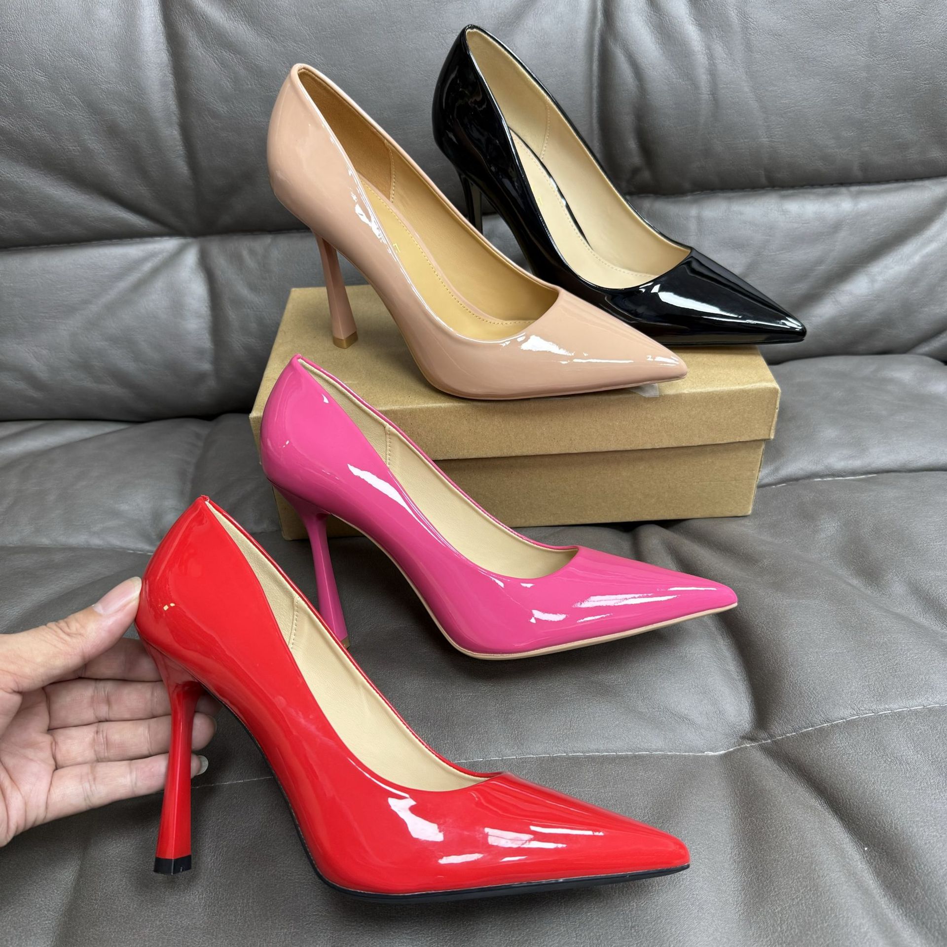 대외 무역 패션 싱글 레이어 신발 여성 봄 새로운 스타일 얇은 굽 뾰족한 섹시한 하이힐 얕은 입 슈퍼 하이힐스토어 가기