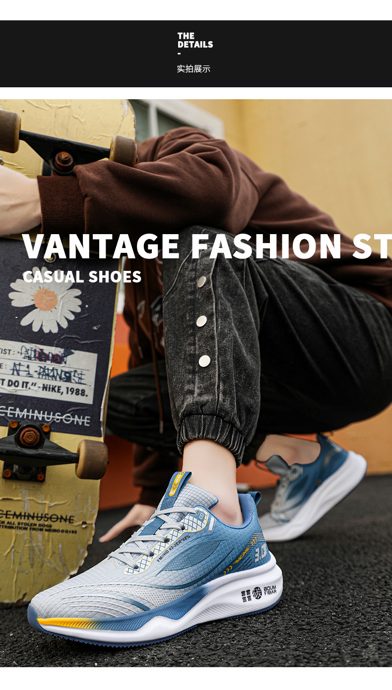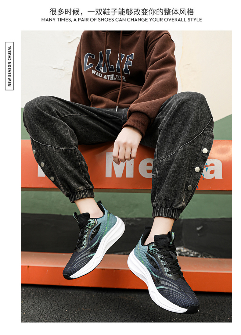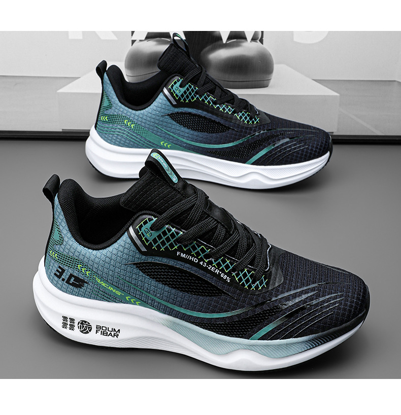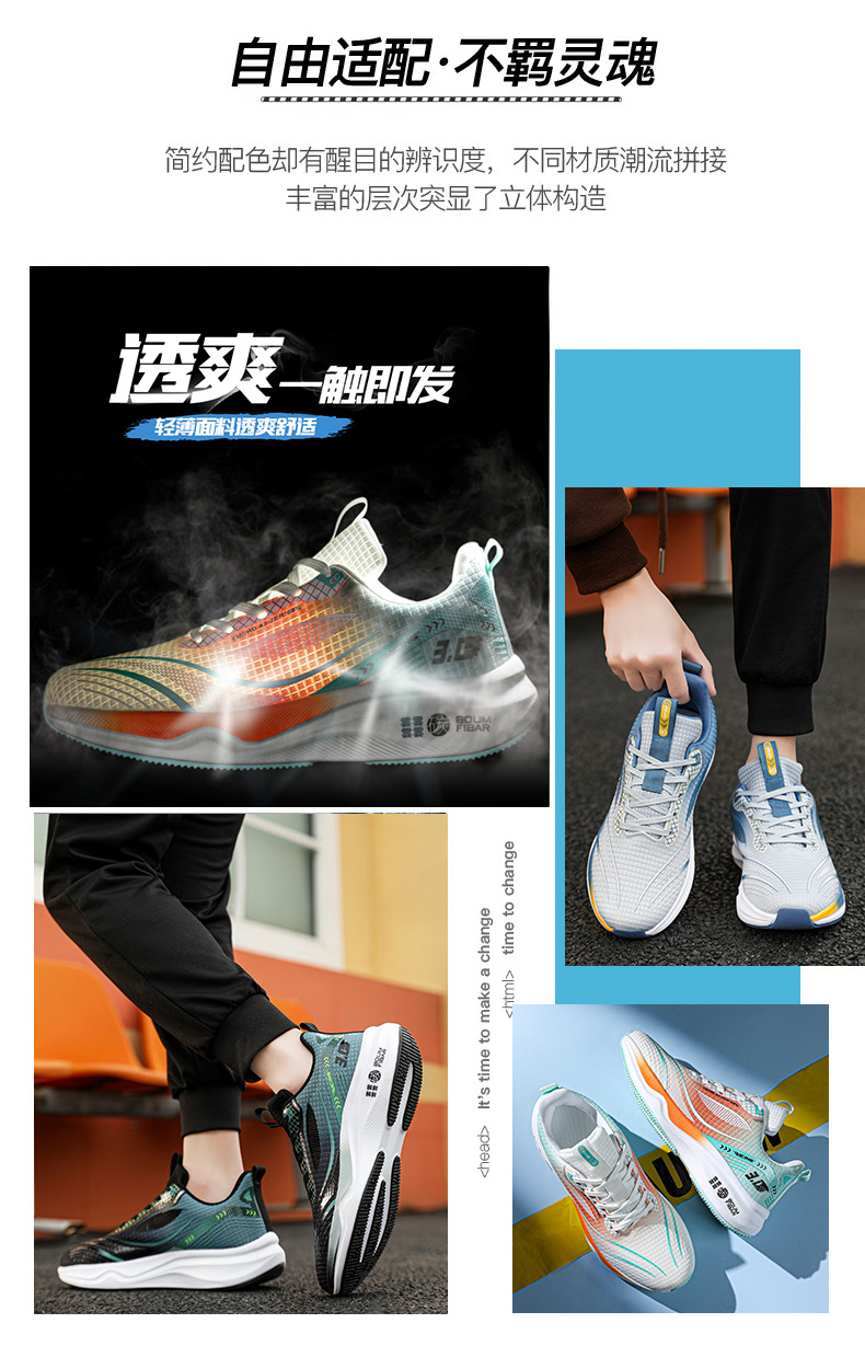 봄 새로운 한국 스타일 트렌디 한 신발 카본 플레이트 메쉬 통기성 캐주얼 러닝 슈즈 남성 러닝 슈즈 학생 슈즈 그린 오렌지스토어 가기