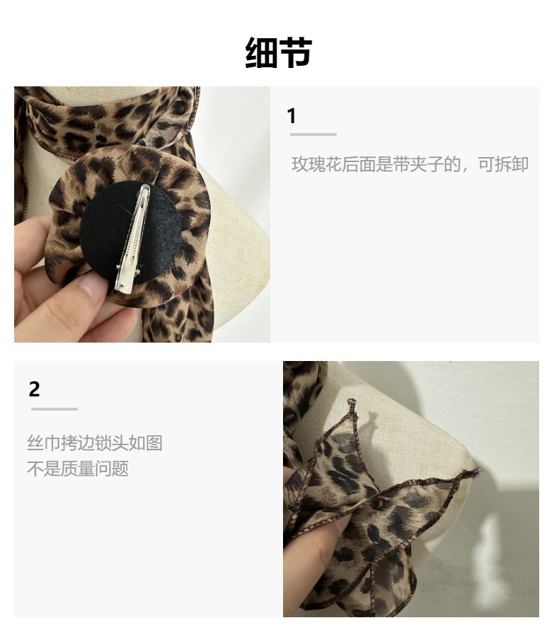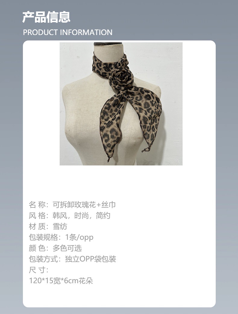 • 신색 쉬폰 브라운 레오파드 프린트 + 로즈