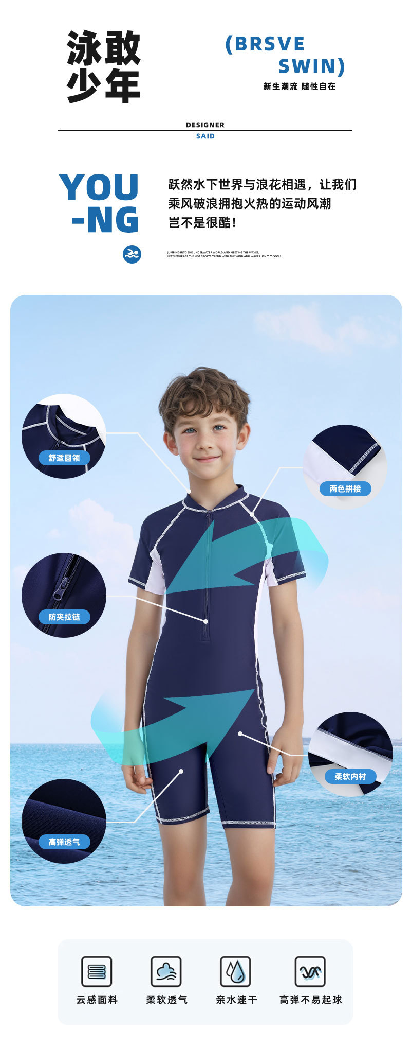 2025 새로운 어린이 수영복 소년 원피스 수영복 소형, 중형 및 대형 어린이 전문 속건성 자외선 차단 수영복 국경 간 맞춤형스토어 가기