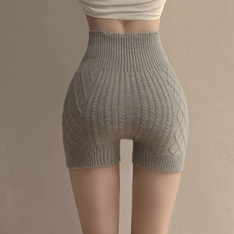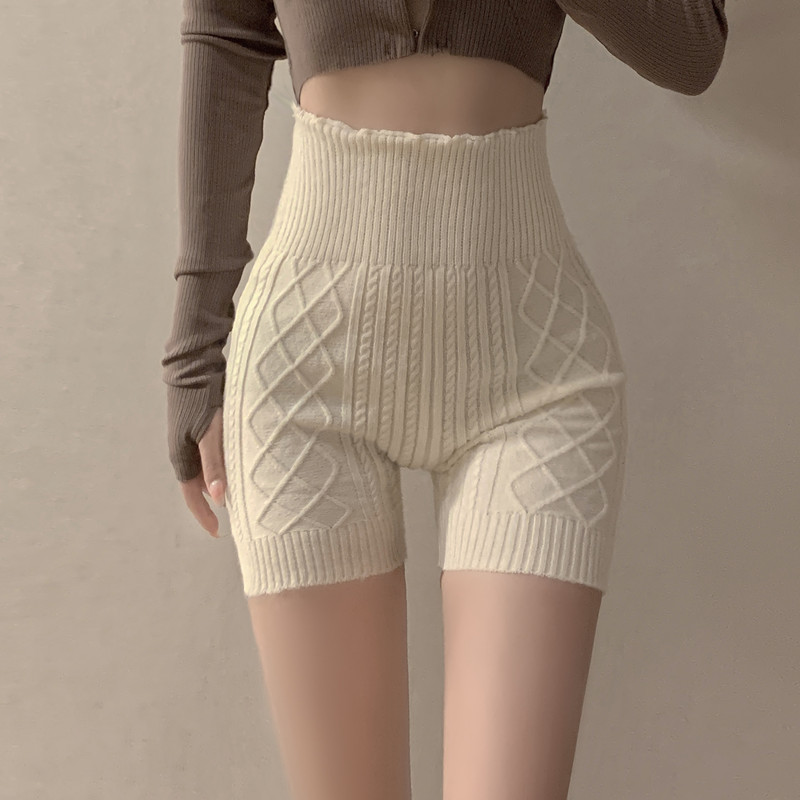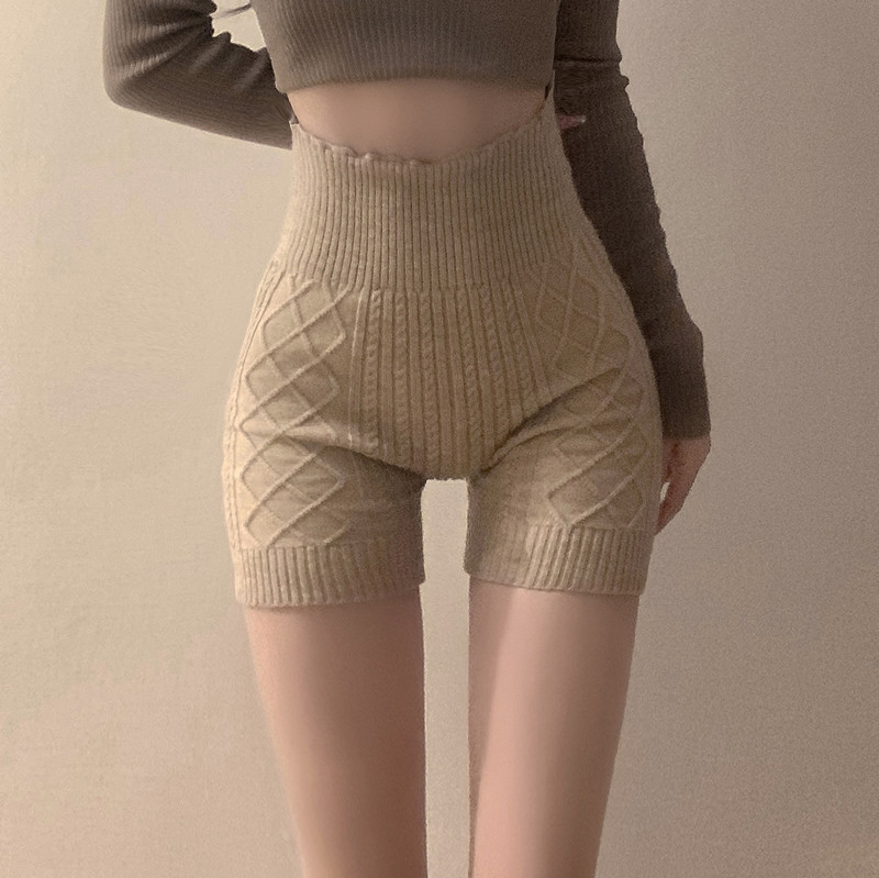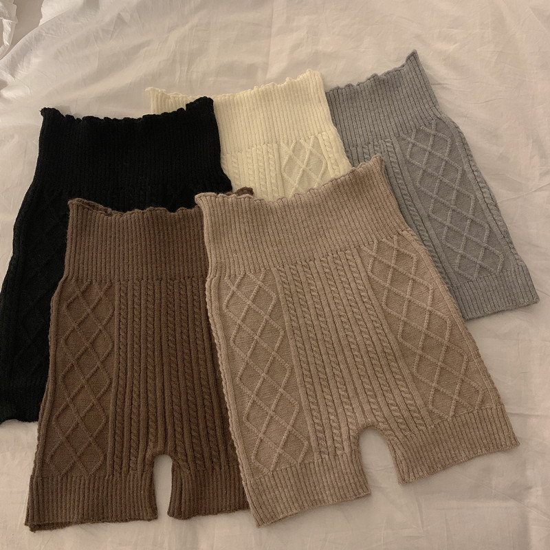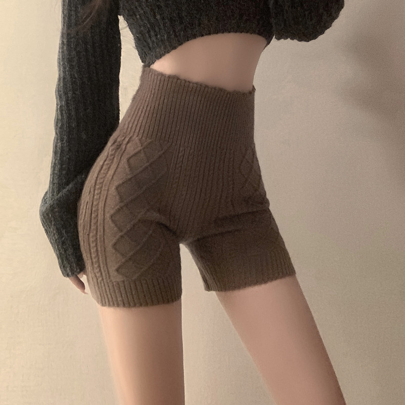 겨울 눈부심 방지 니트 병 반바지 여성 가을 높은 허리 슬리밍 겨울 외부 착용 바지 작은 바지
