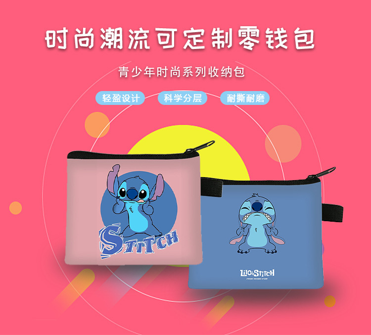 跨境新款史迪仔零钱包儿童大容量可爱钥匙卡包涤纶高级感休闲包包