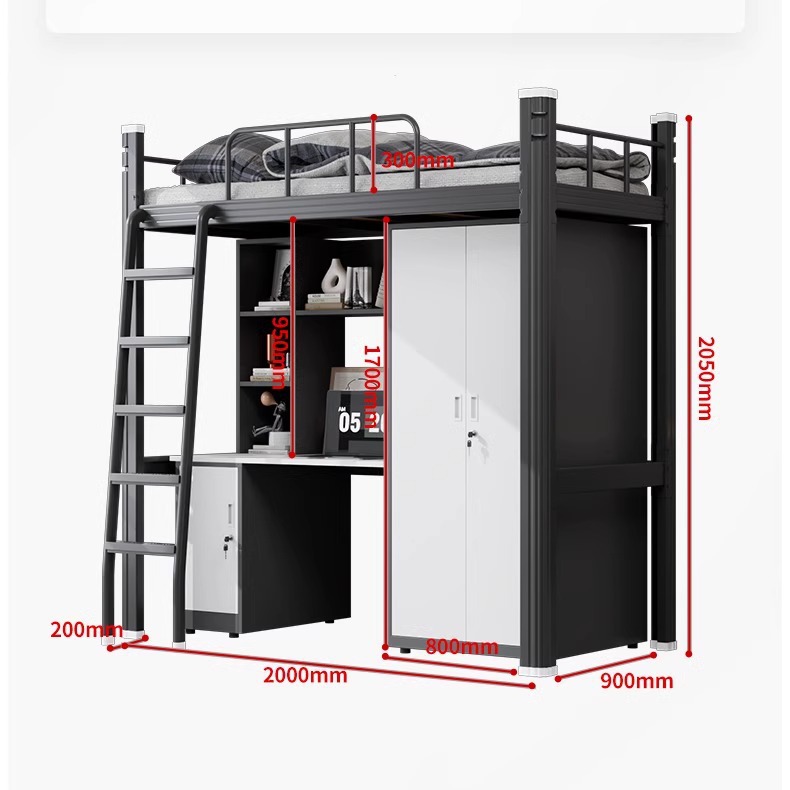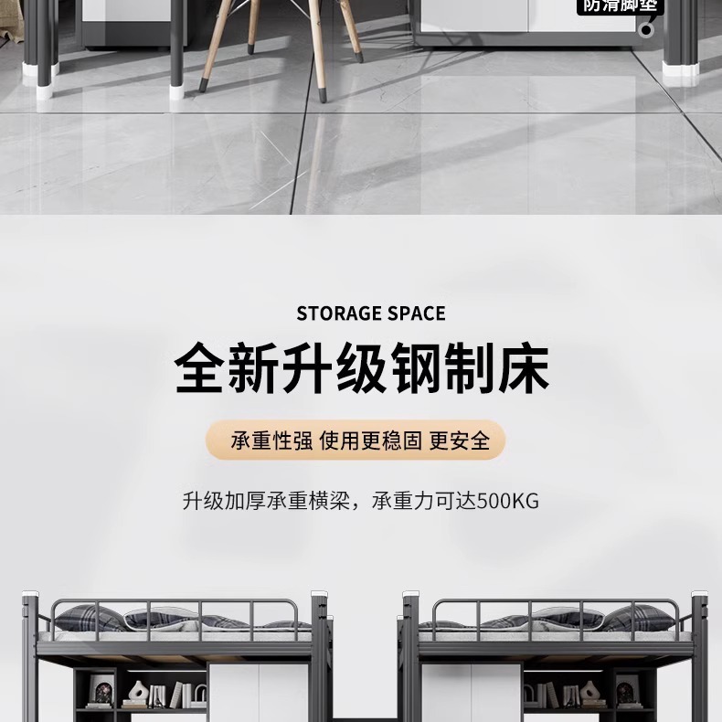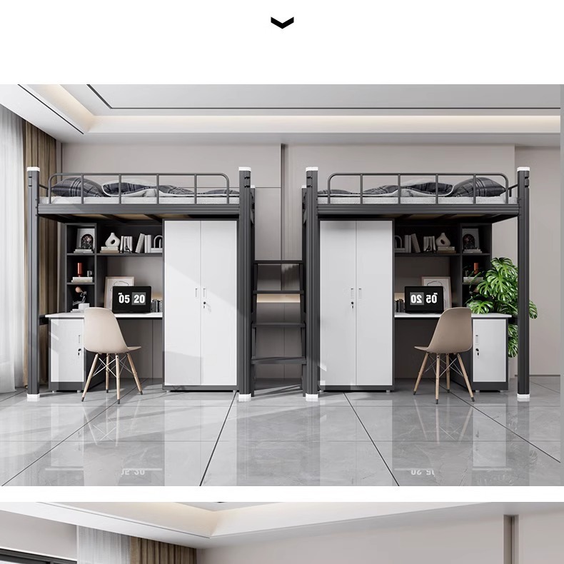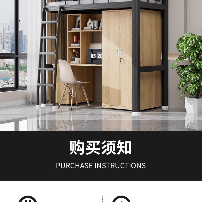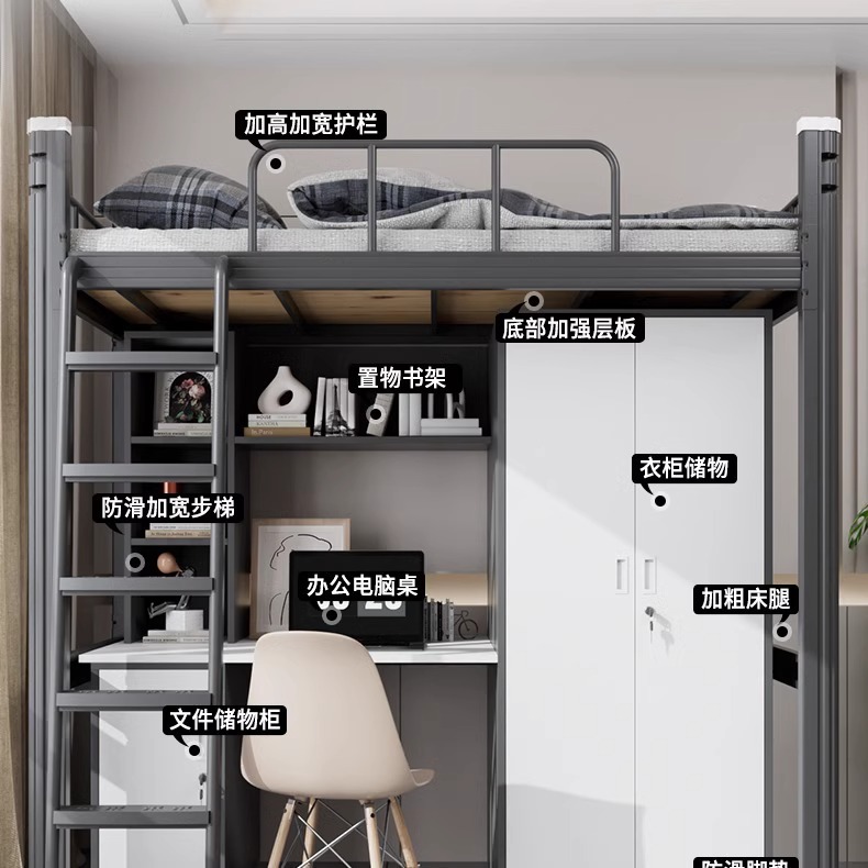 上床下桌大学生宿舍公寓铁架床寝室落地爬梯组合双层床铁艺单人床