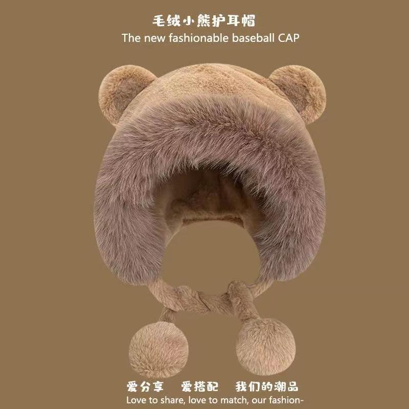 모자 여성 봉제 곰 새로운 레이 펑 겨울 가을과 겨울 두꺼운 따뜻한 귀 가을과 겨울 귀 보호 한국판 도매스토어 가기