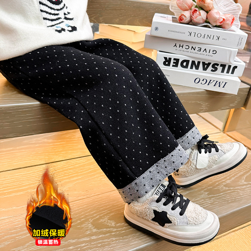 소녀 기모 점 청바지 2024 가을 겨울 새 어린이 한국 아기 서양식 두꺼운 캐주얼 바지