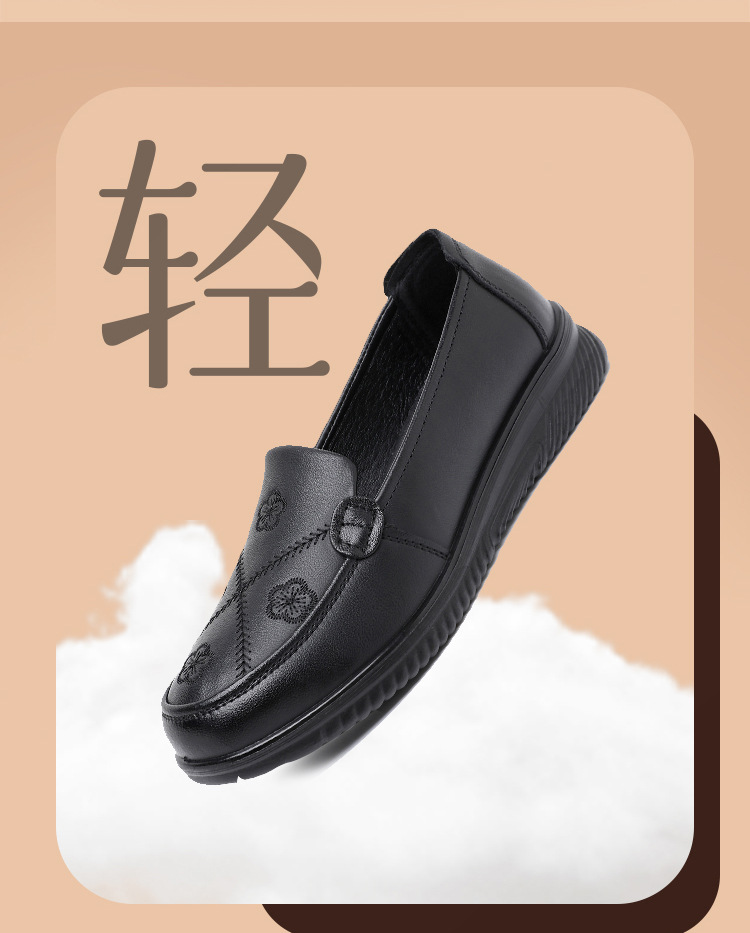 采用聚氨酯软底,妈妈鞋专用鞋底,轻质防滑耐磨不累脚。