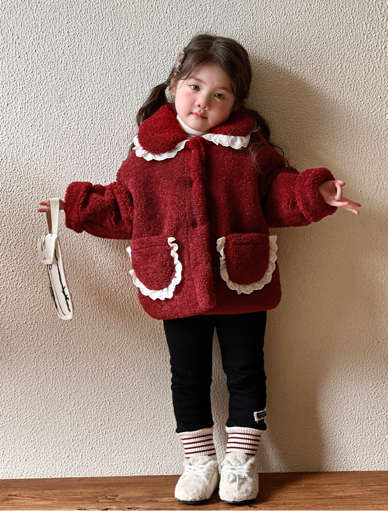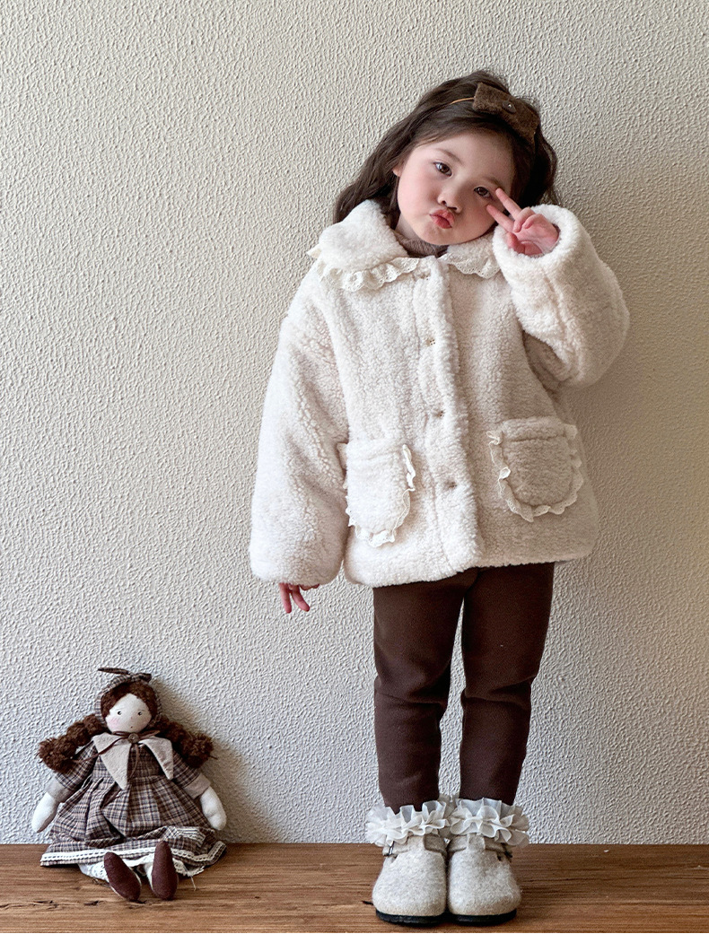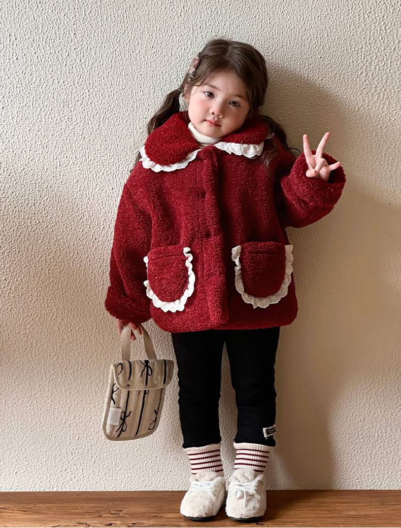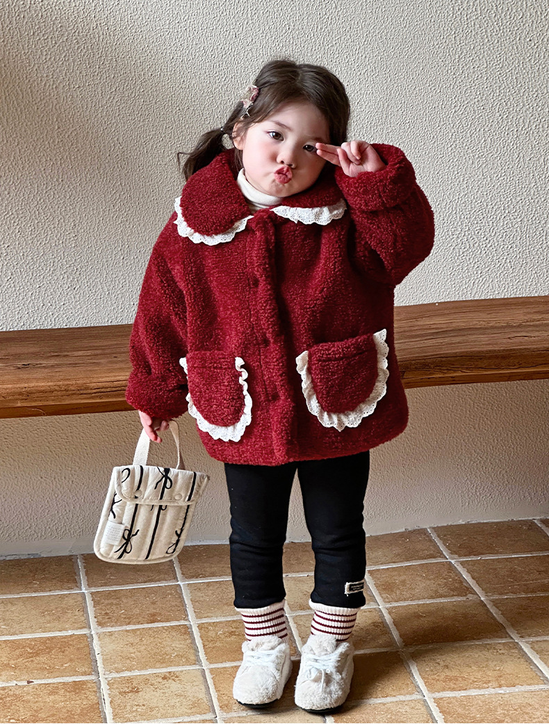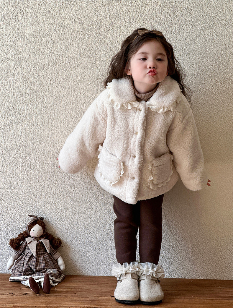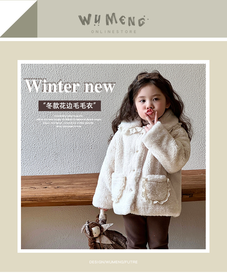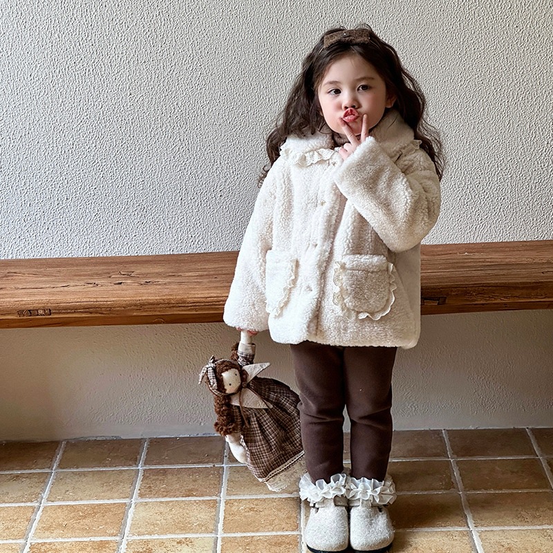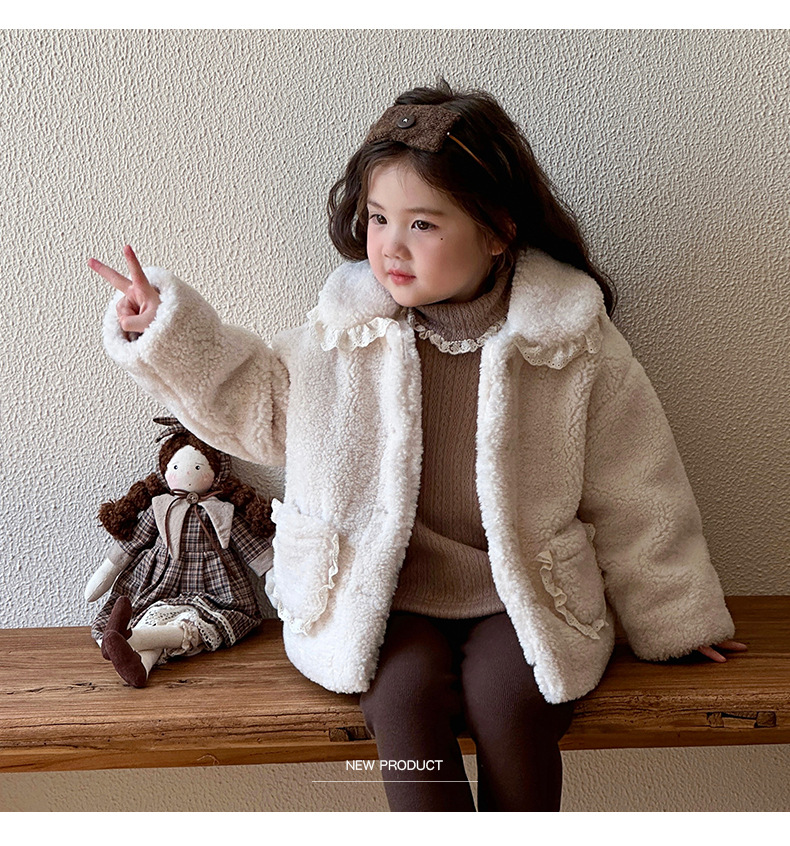 소녀 코트 2023 가을과 겨울 새로운 어린이 서양식 따뜻한 양고기 벨벳 아기 소녀의 겨울 두꺼운 모직 스웨터스토어 가기