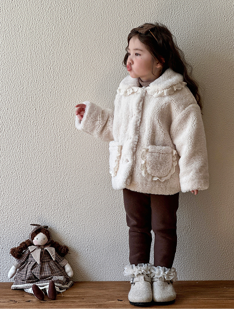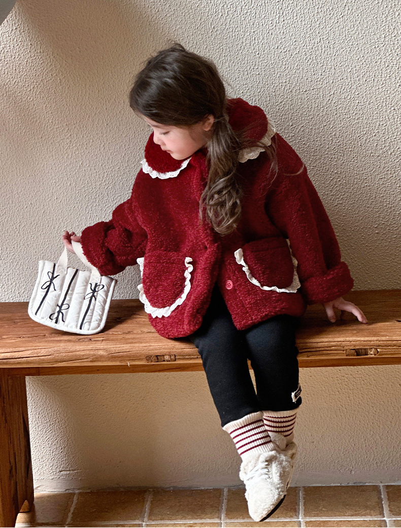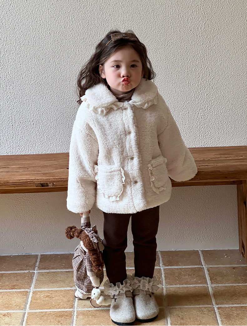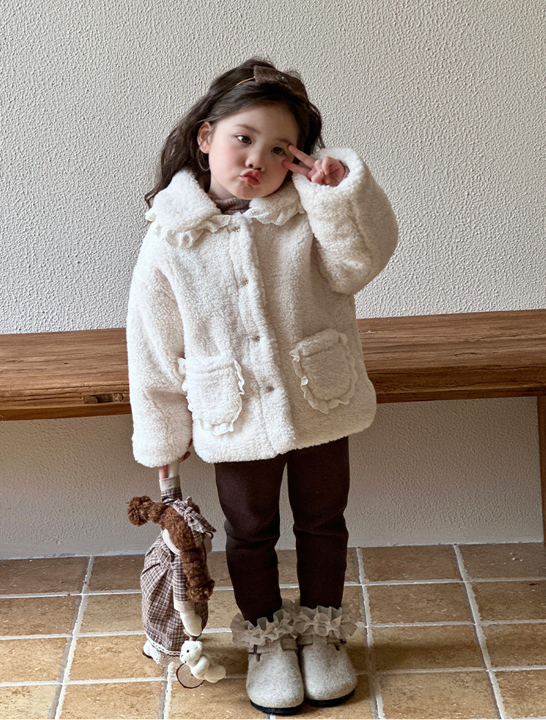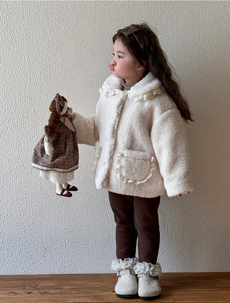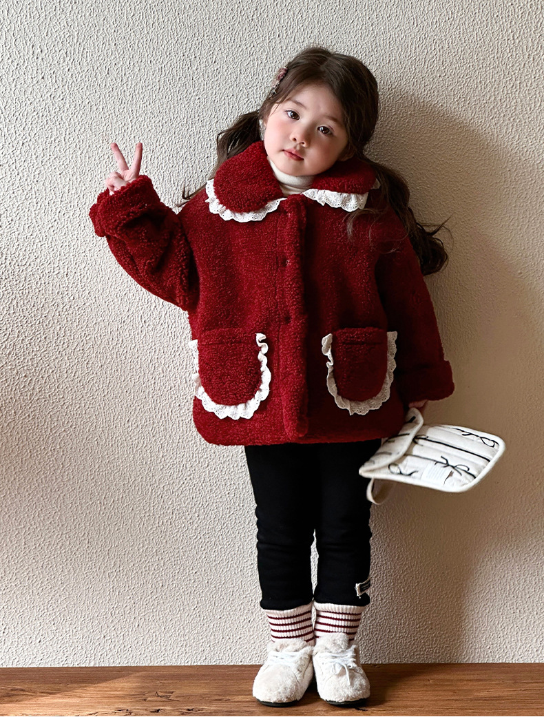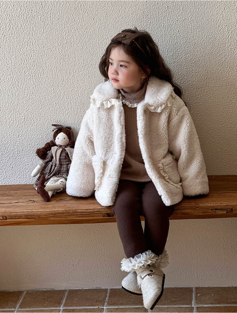 소녀 코트 2023 가을과 겨울 새로운 어린이 서양식 따뜻한 양고기 벨벳 아기 소녀의 겨울 두꺼운 모직 스웨터스토어 가기