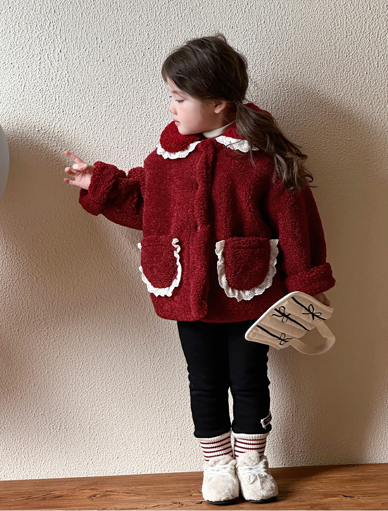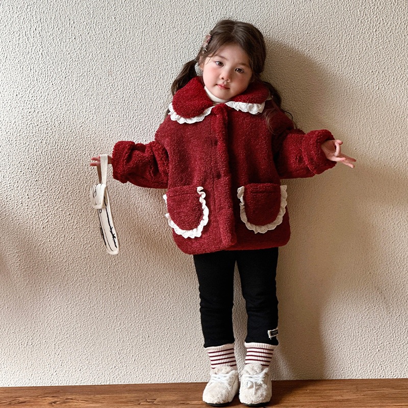 소녀 코트 2023 가을과 겨울 새로운 어린이 서양식 따뜻한 양고기 벨벳 아기 소녀의 겨울 두꺼운 모직 스웨터