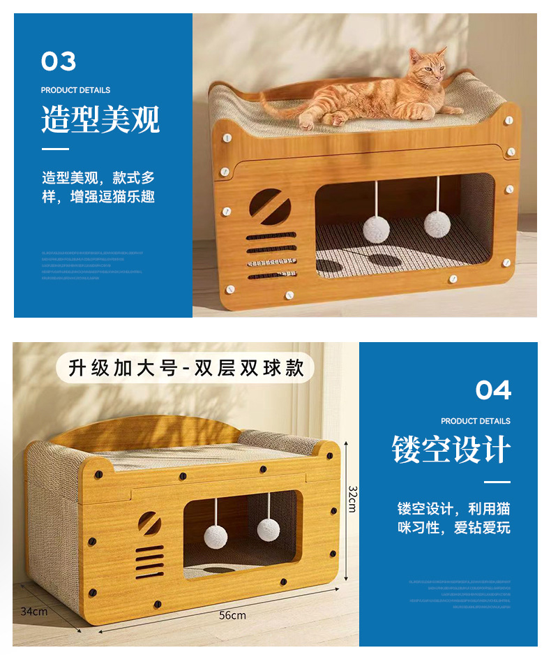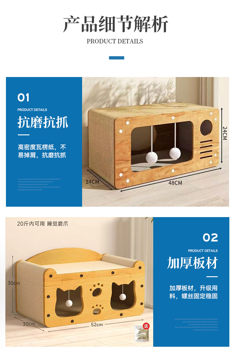 고양이 둥지, 고양이 집, 비닐하우스, 부스러기가 없는 소파, 골판지, 내마모성 고양이 집, 고양이 스크래치 보드, 애완용 고양이 더블 레이어