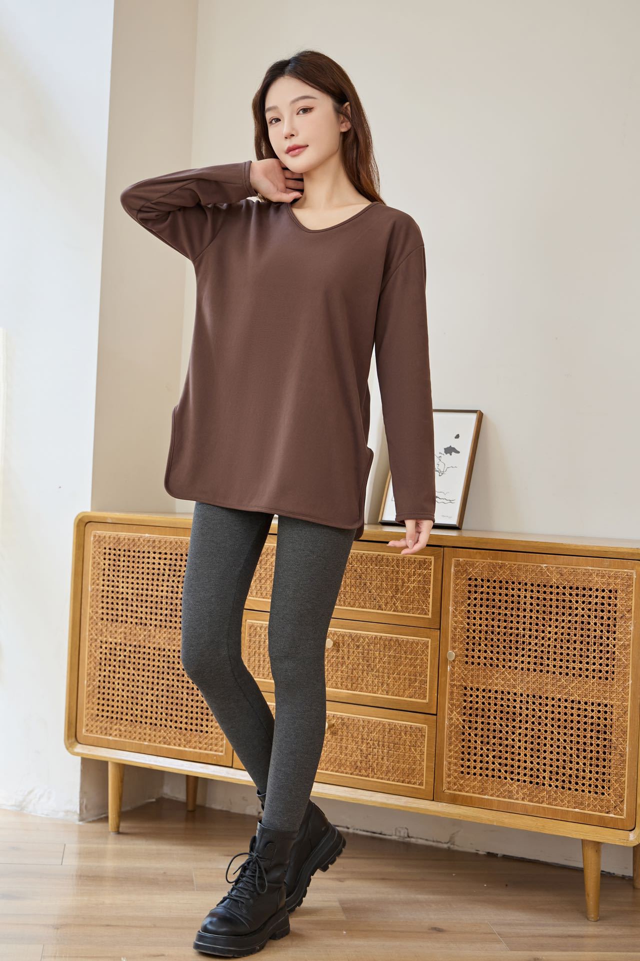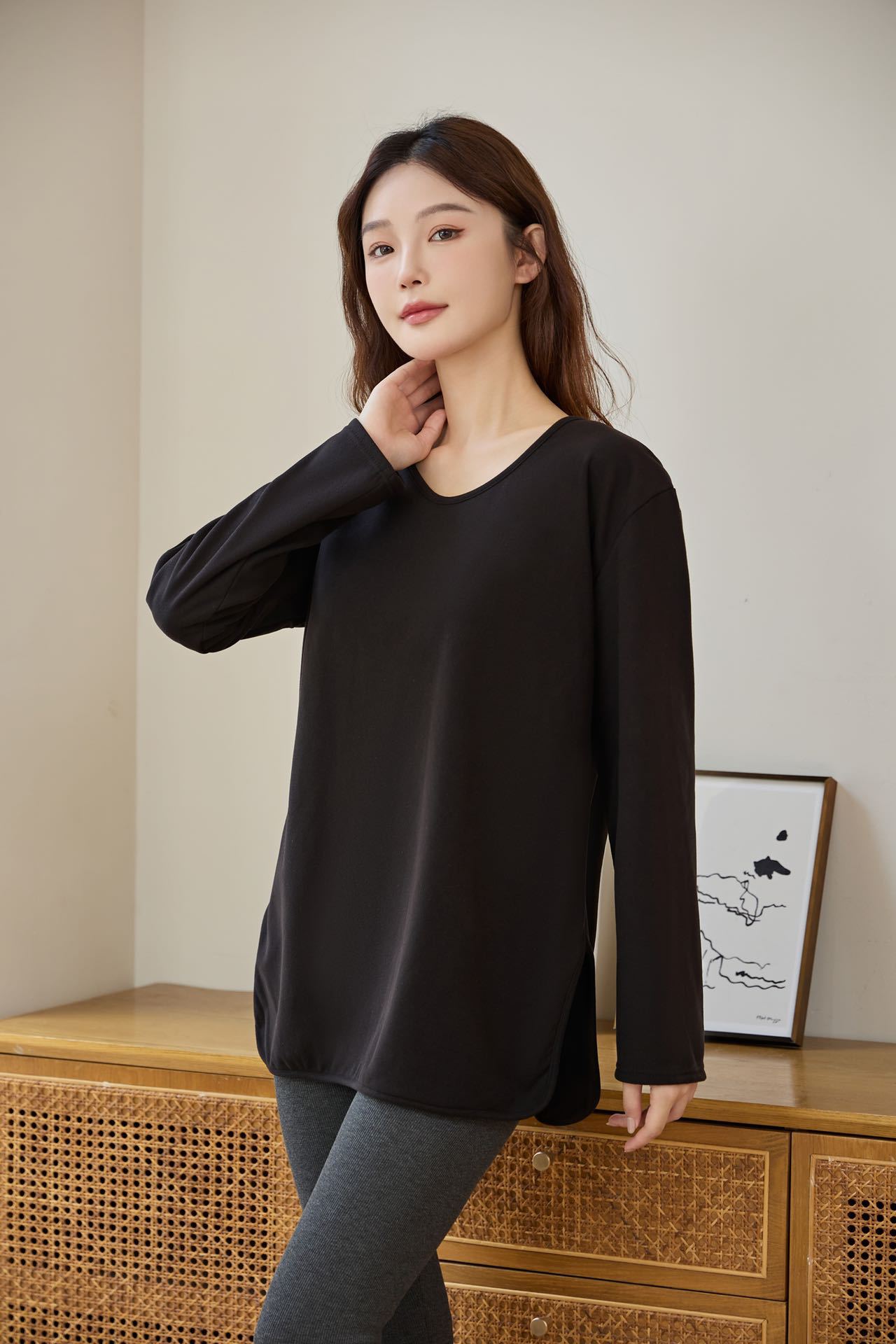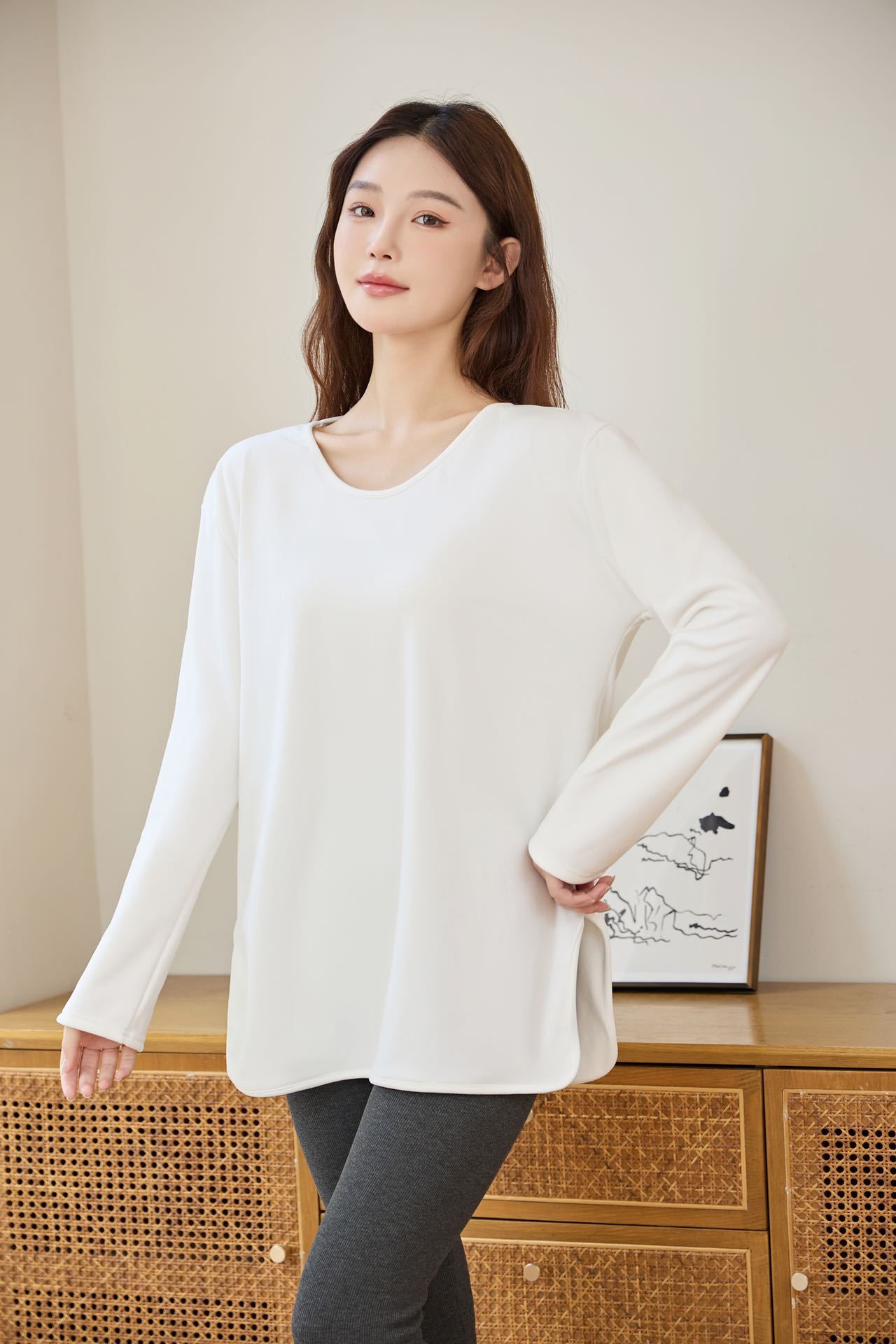 앙고라 레드 원피스 기모 두꺼운 한국 스타일 분할 대형 플레이트 티셔츠 가을 및 겨울 중간 길이 T 솔리드 컬러 루즈 탑스토어 가기