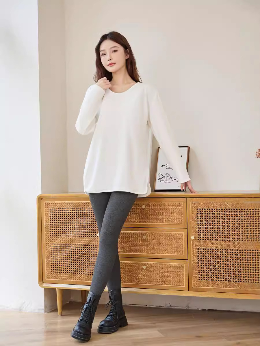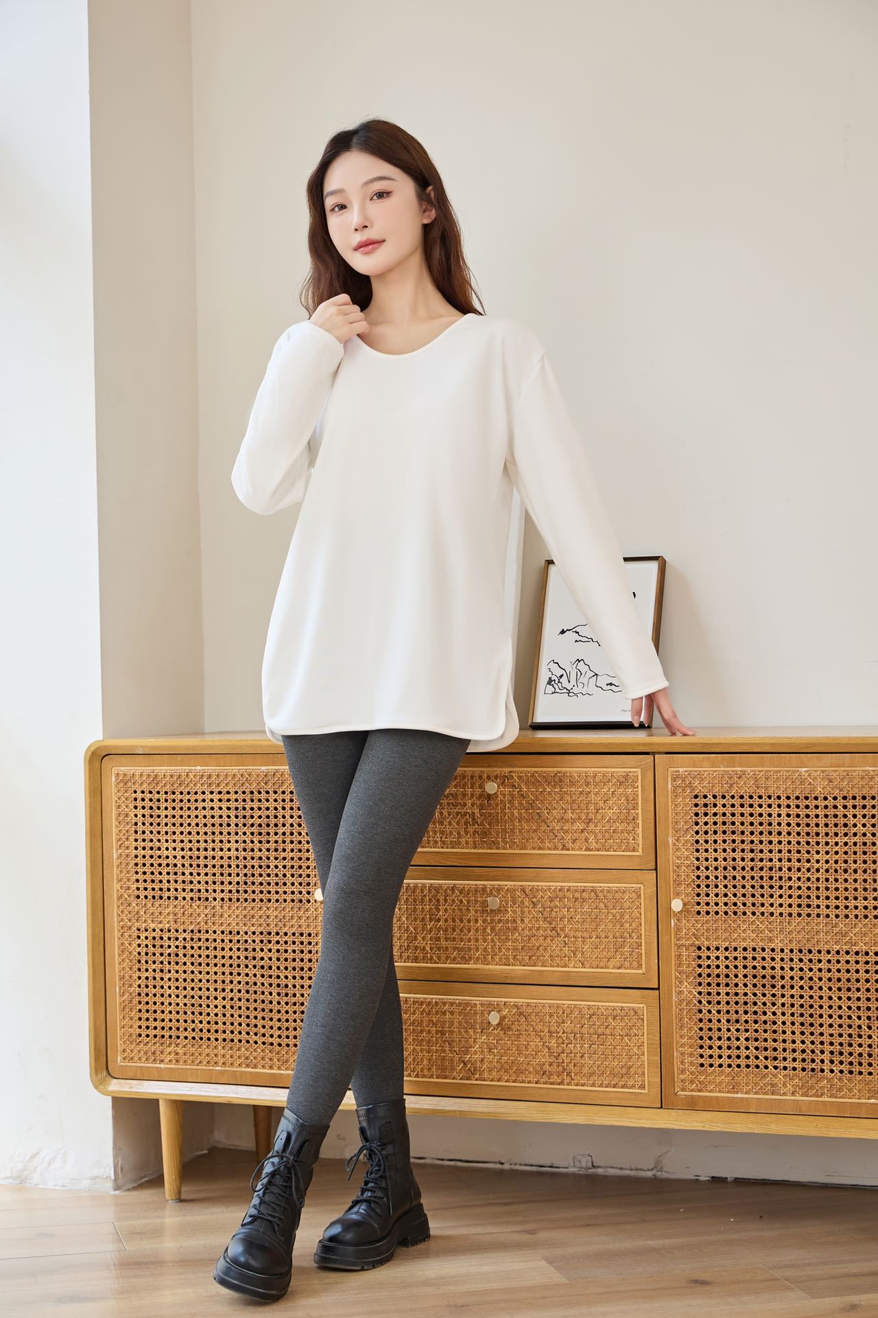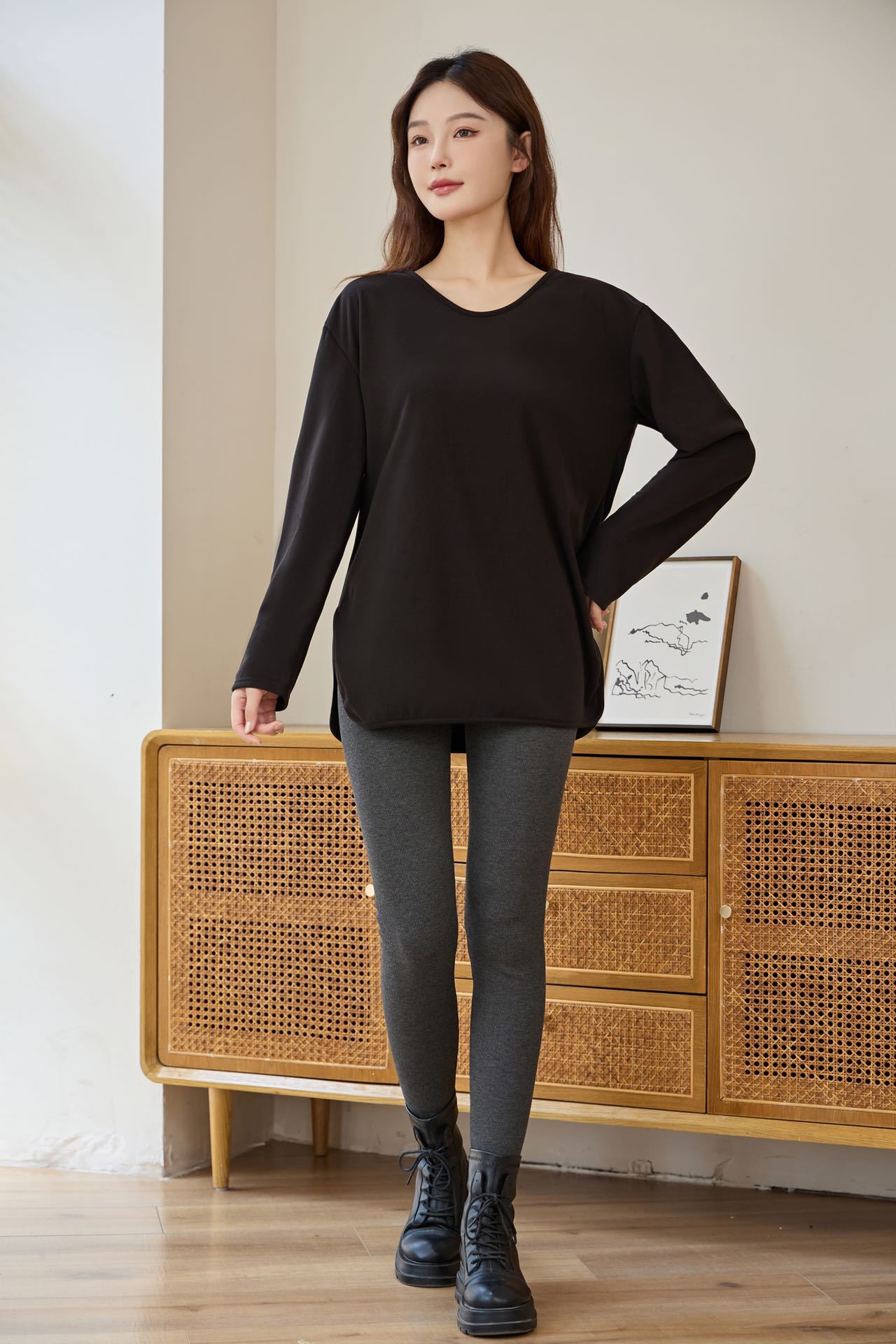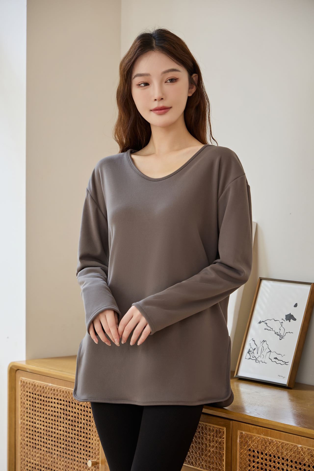 앙고라 레드 원피스 기모 두꺼운 한국 스타일 분할 대형 플레이트 티셔츠 가을 및 겨울 중간 길이 T 솔리드 컬러 루즈 탑스토어 가기