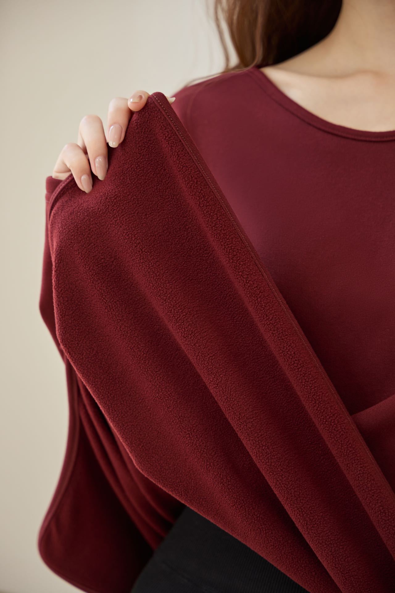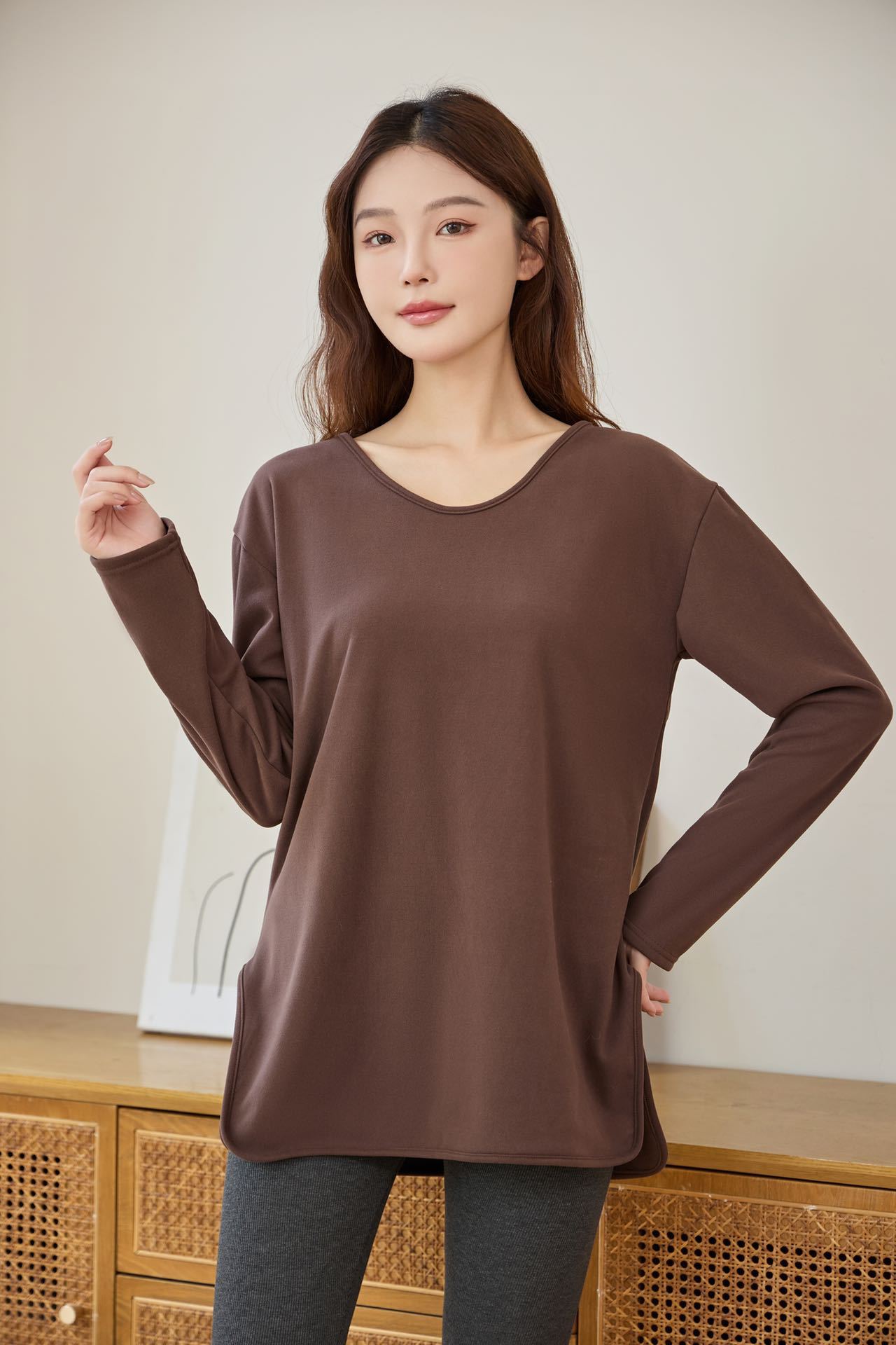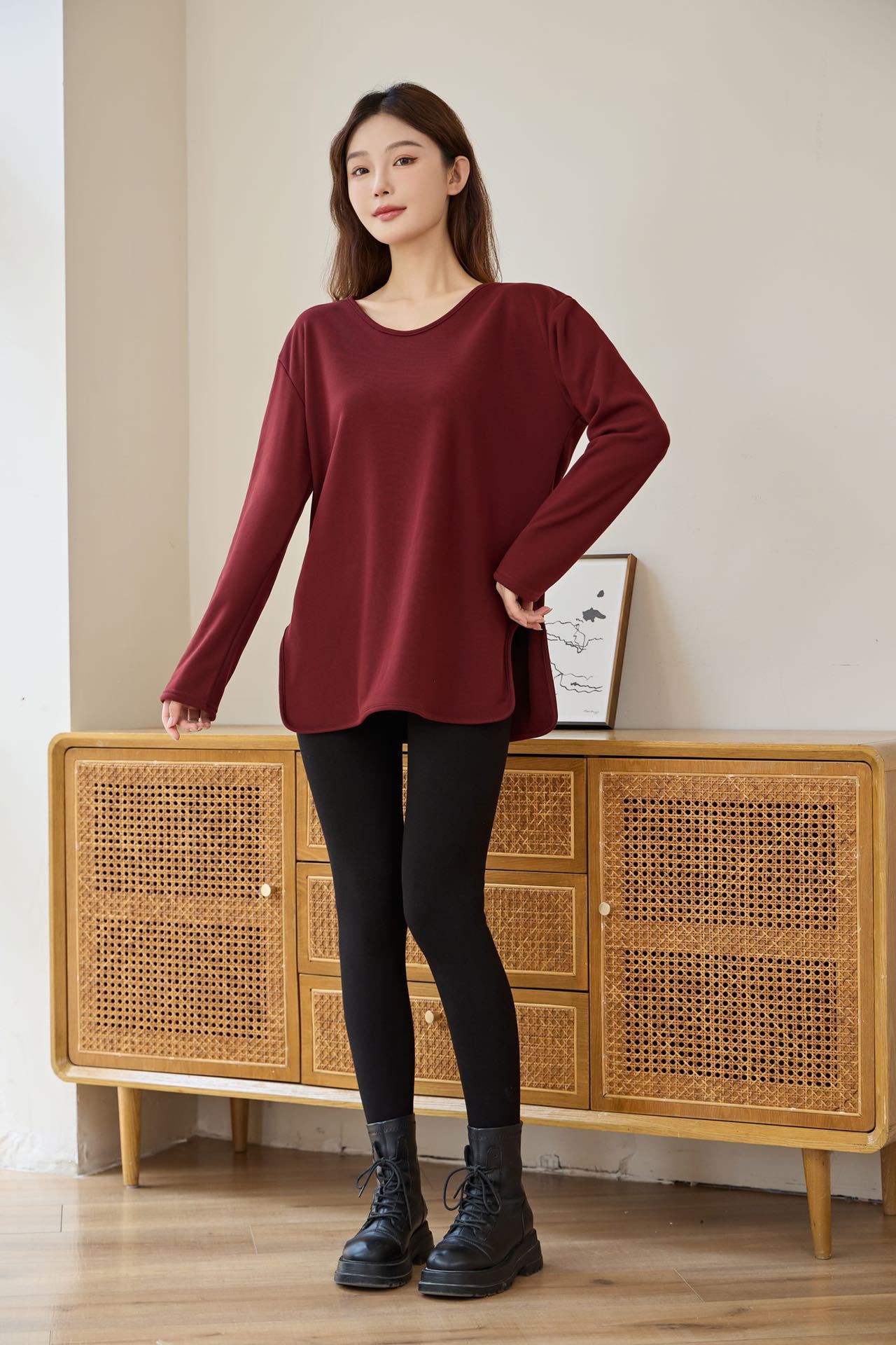 앙고라 레드 원피스 기모 두꺼운 한국 스타일 분할 대형 플레이트 티셔츠 가을 및 겨울 중간 길이 T 솔리드 컬러 루즈 탑
