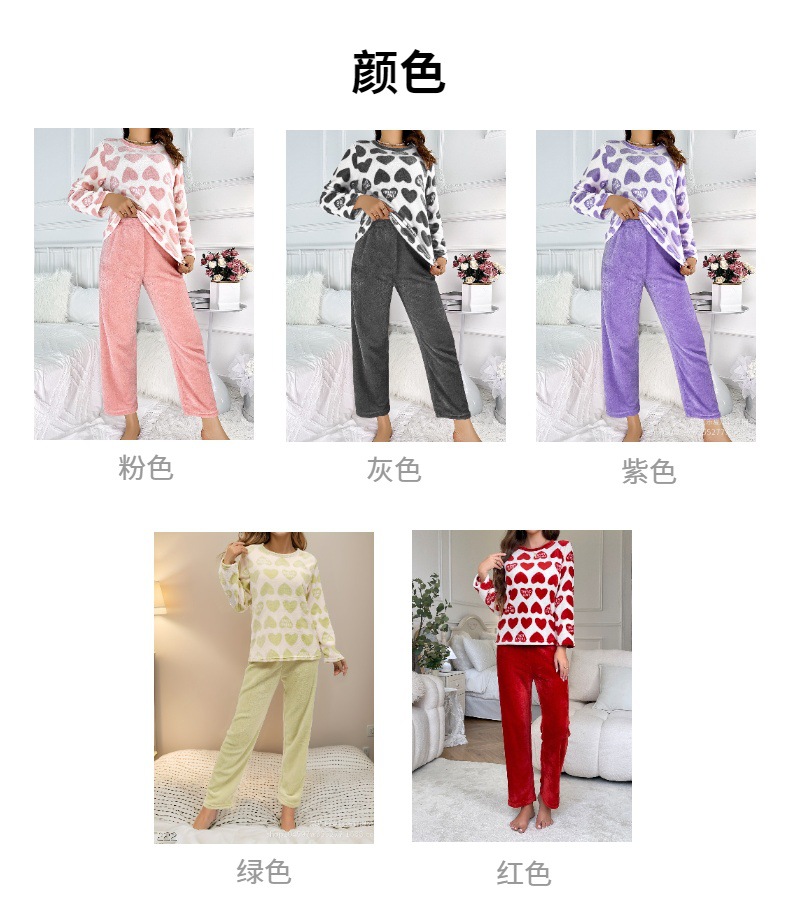 [멀티 컬러] 크로스보더 2024 가을 겨울 플란넬 잠옷 따뜻하고 부드러운 긴팔 바지 여성 잠옷 세트스토어 가기