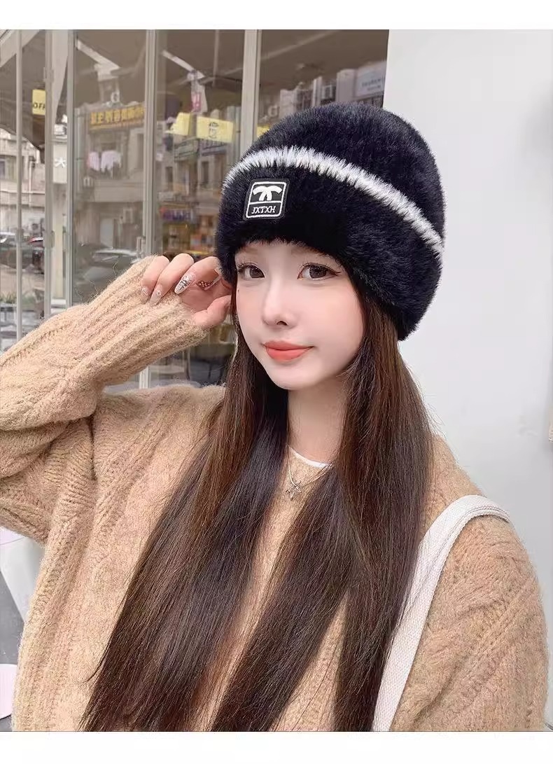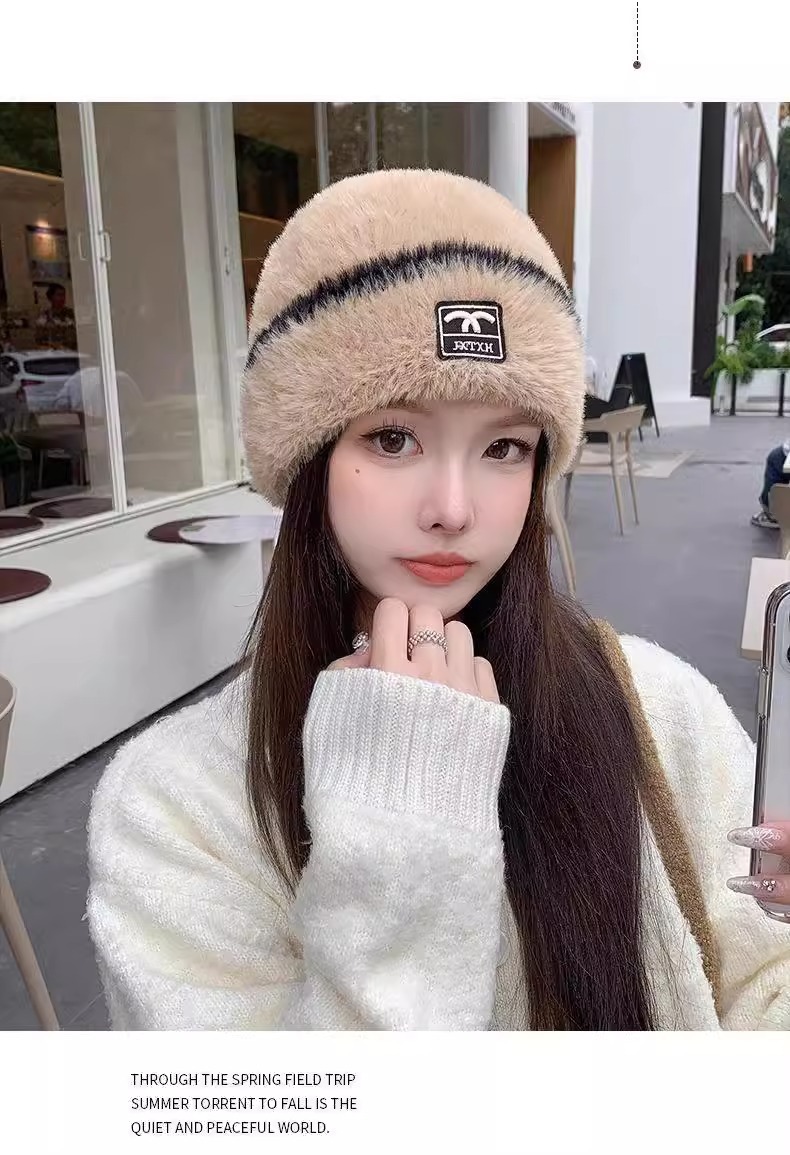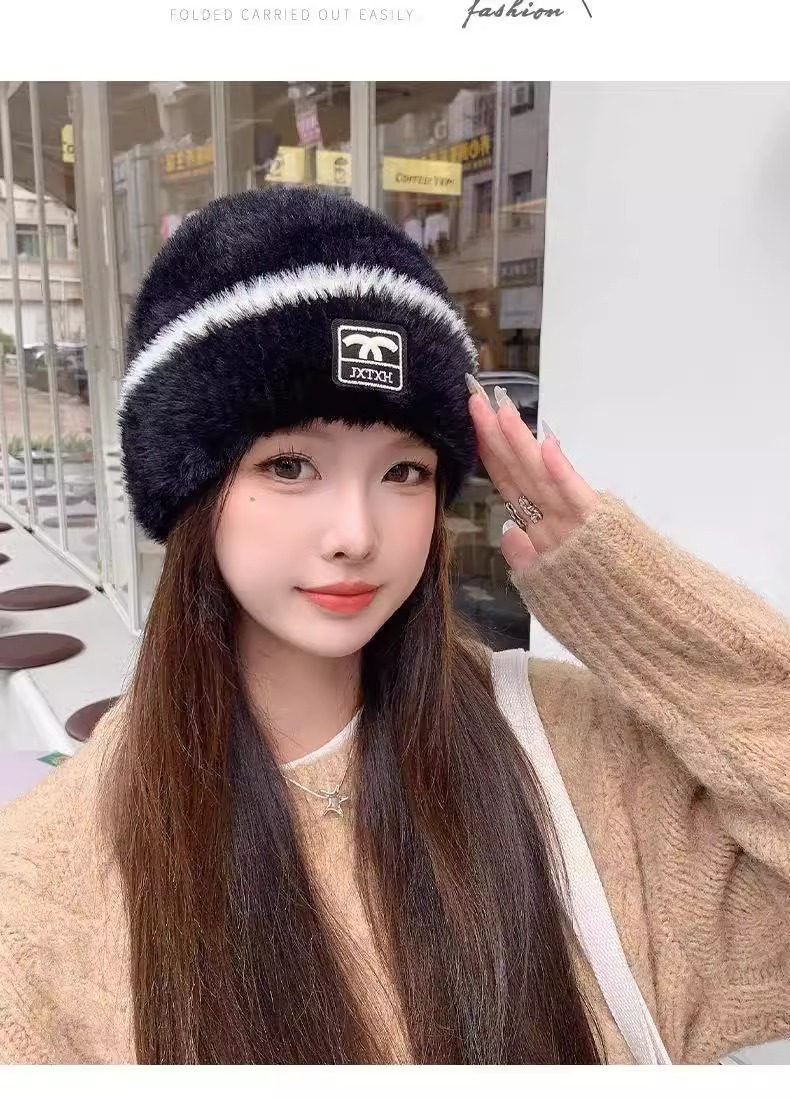 양모 모자 가을과 겨울 여성의 새로운 따뜻한 기모 패션 모자 모든 경기 캐주얼 니트 모자 귀 보호 귀여운 차가운 모자 두꺼운스토어 가기