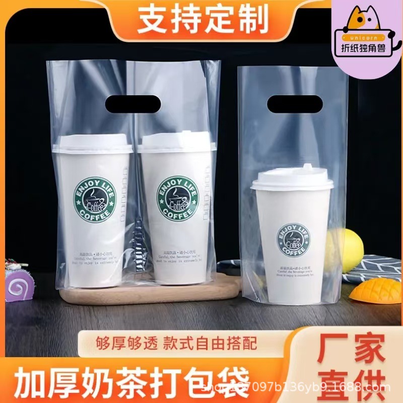 밀크티컵 포장봉투 90구경 두꺼운 밀크티 음료 커피 콜라 휴대용 가방 도매 휴대용 핸드백형