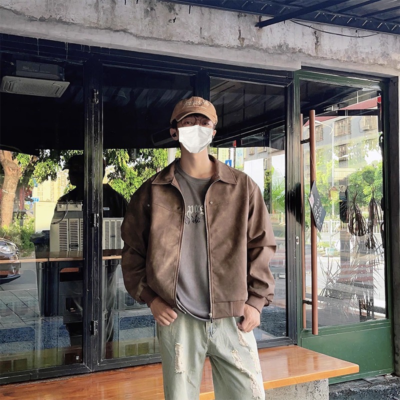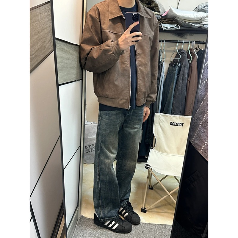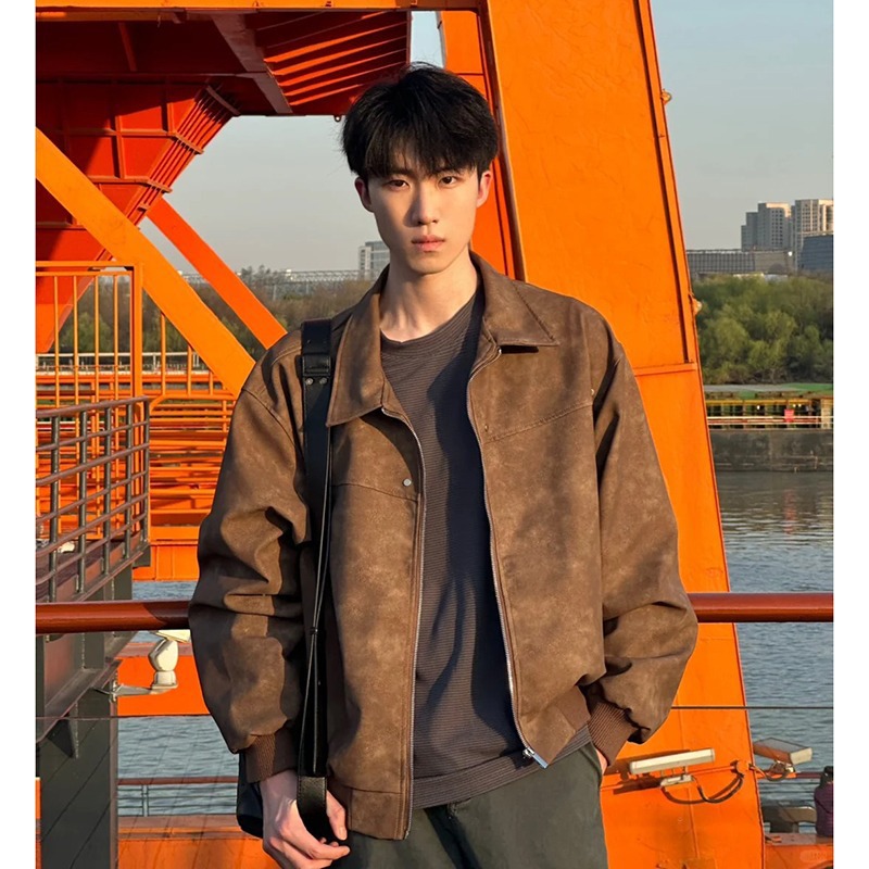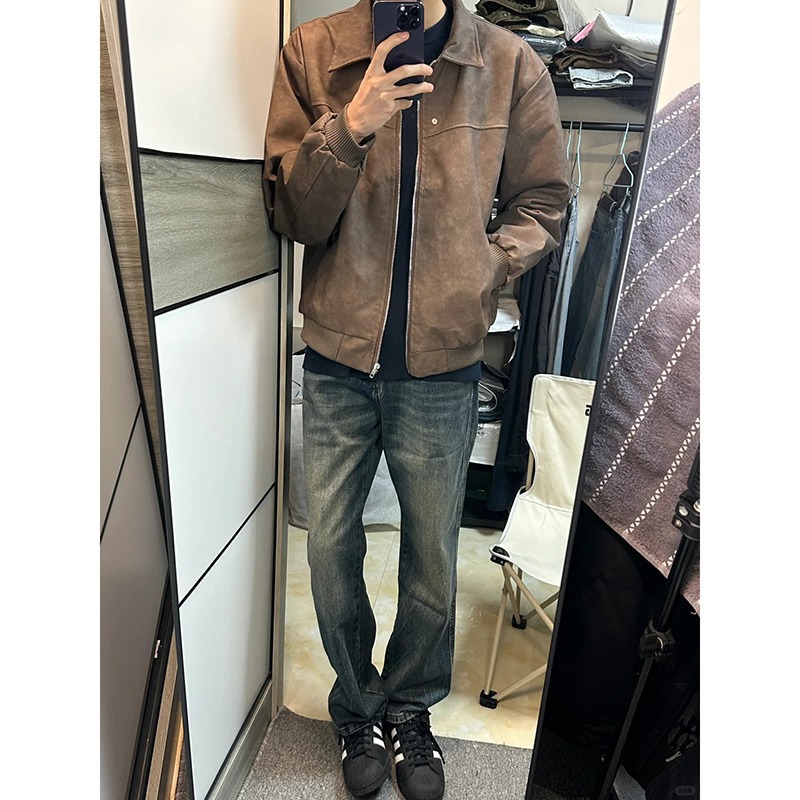아메리칸 스타일 레트로 PU 가죽 자켓 남자 가을과 겨울 하이 스트리트 메일러 스웨이드 라펠 야구 스웨이드 커플 재킷스토어 가기