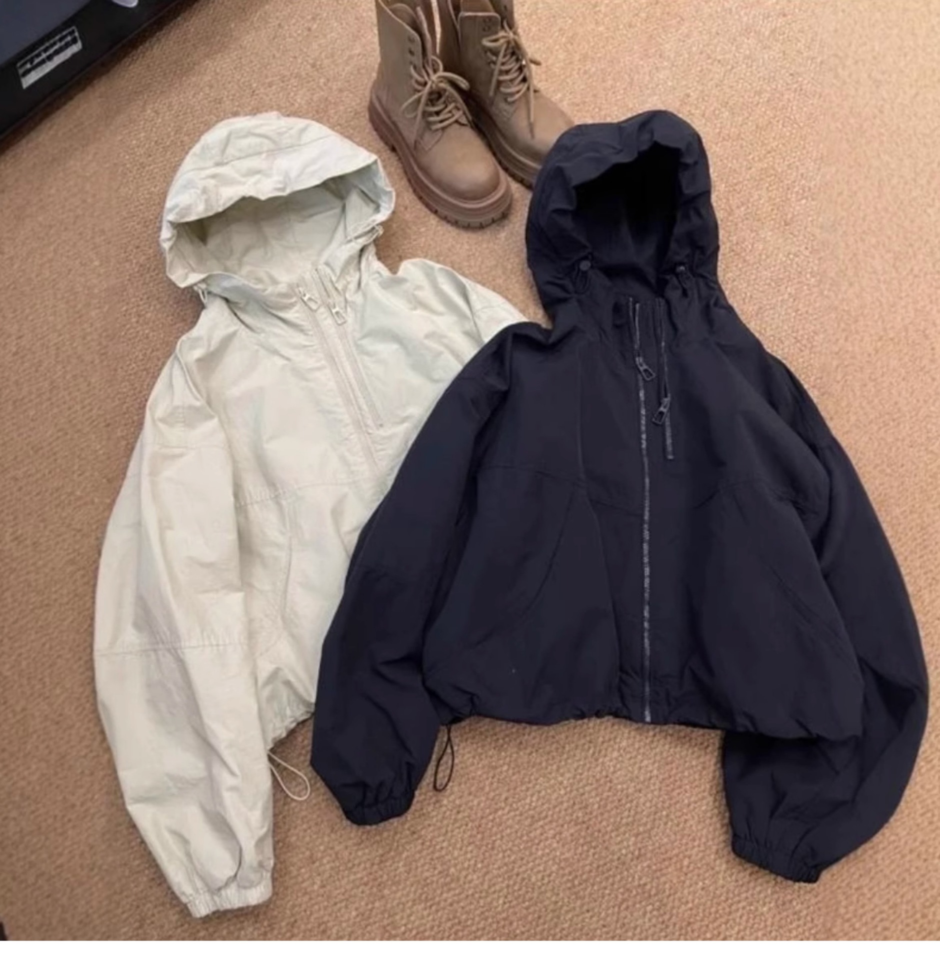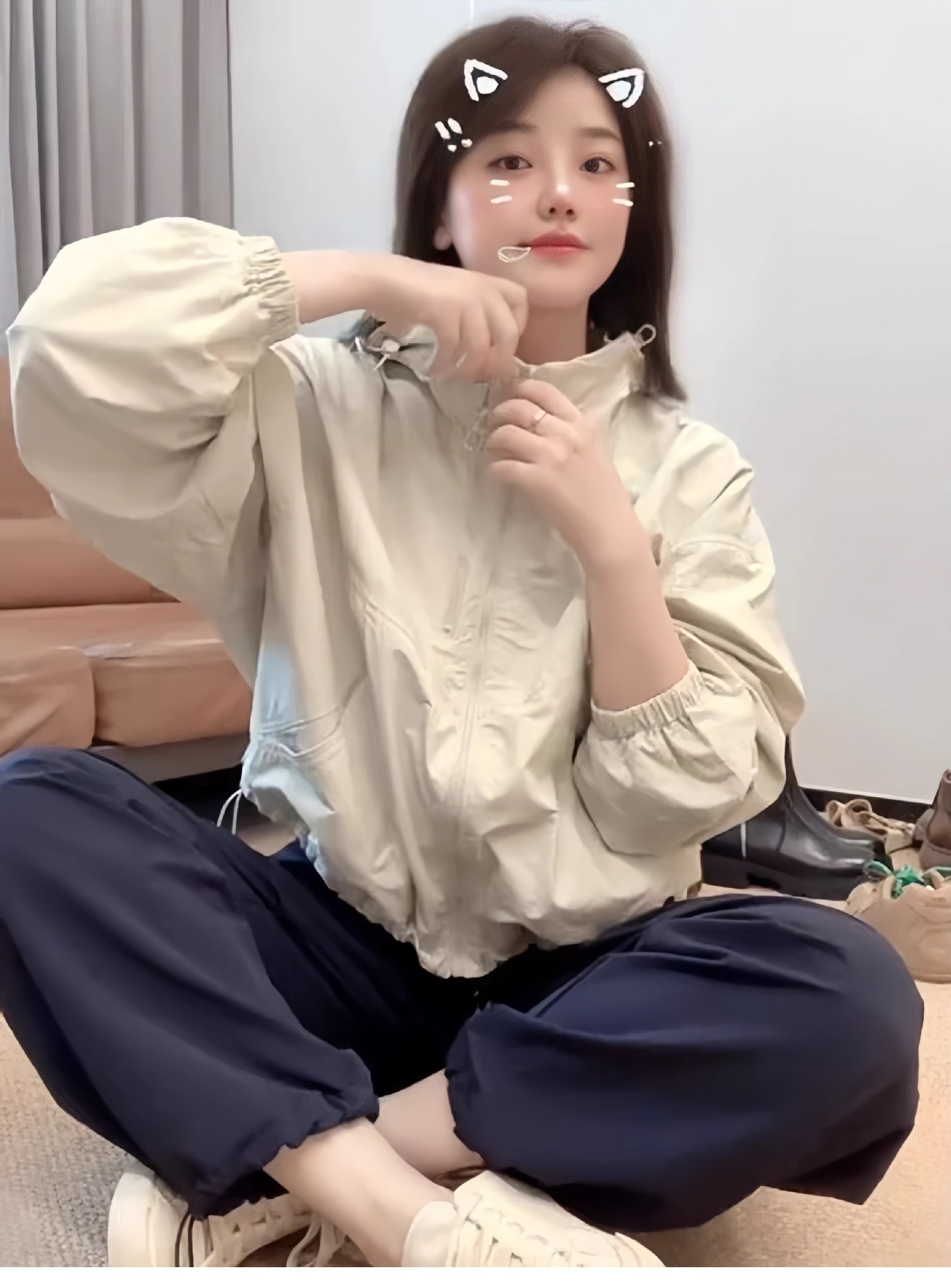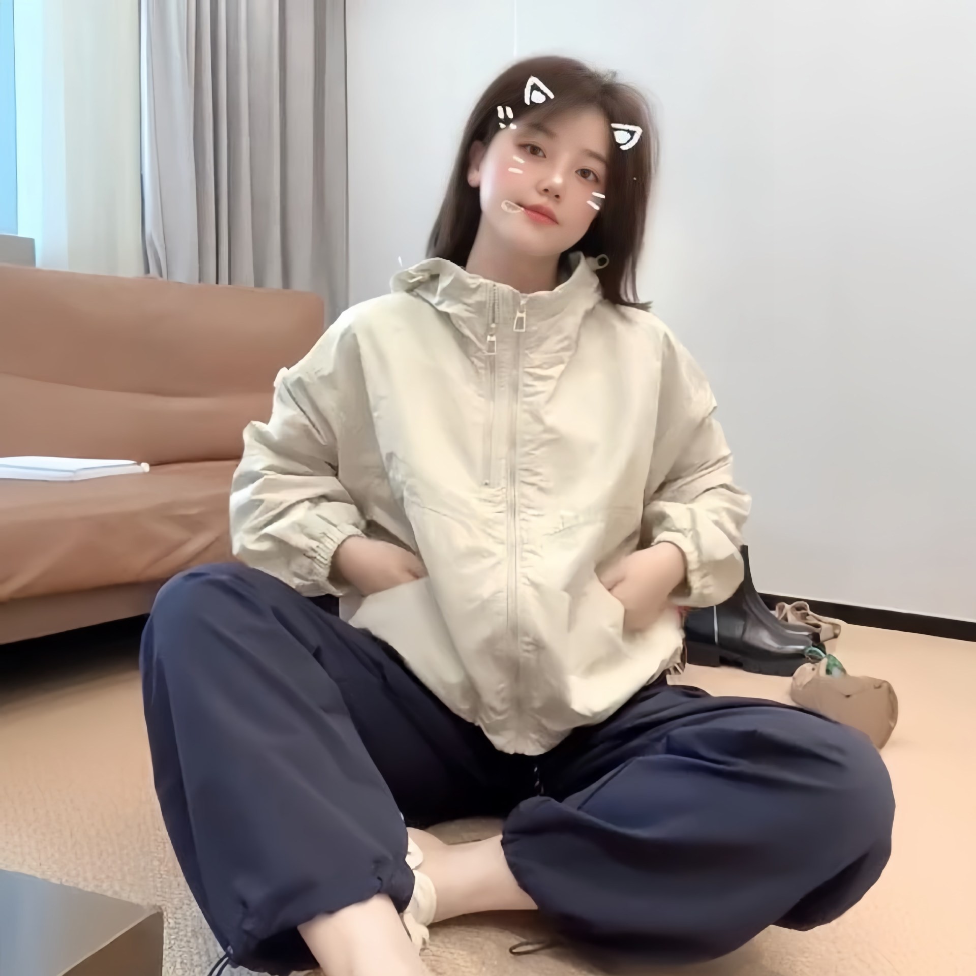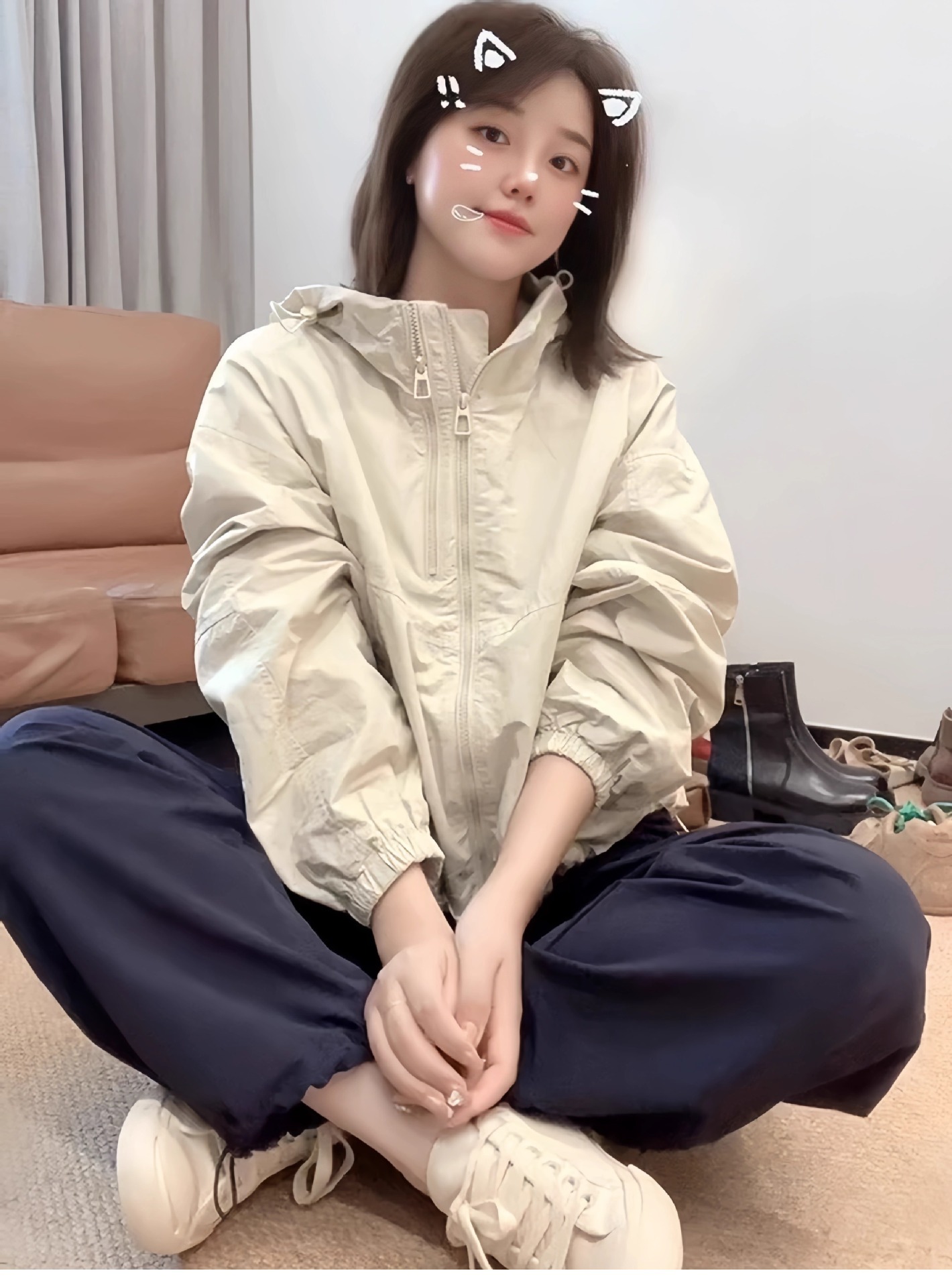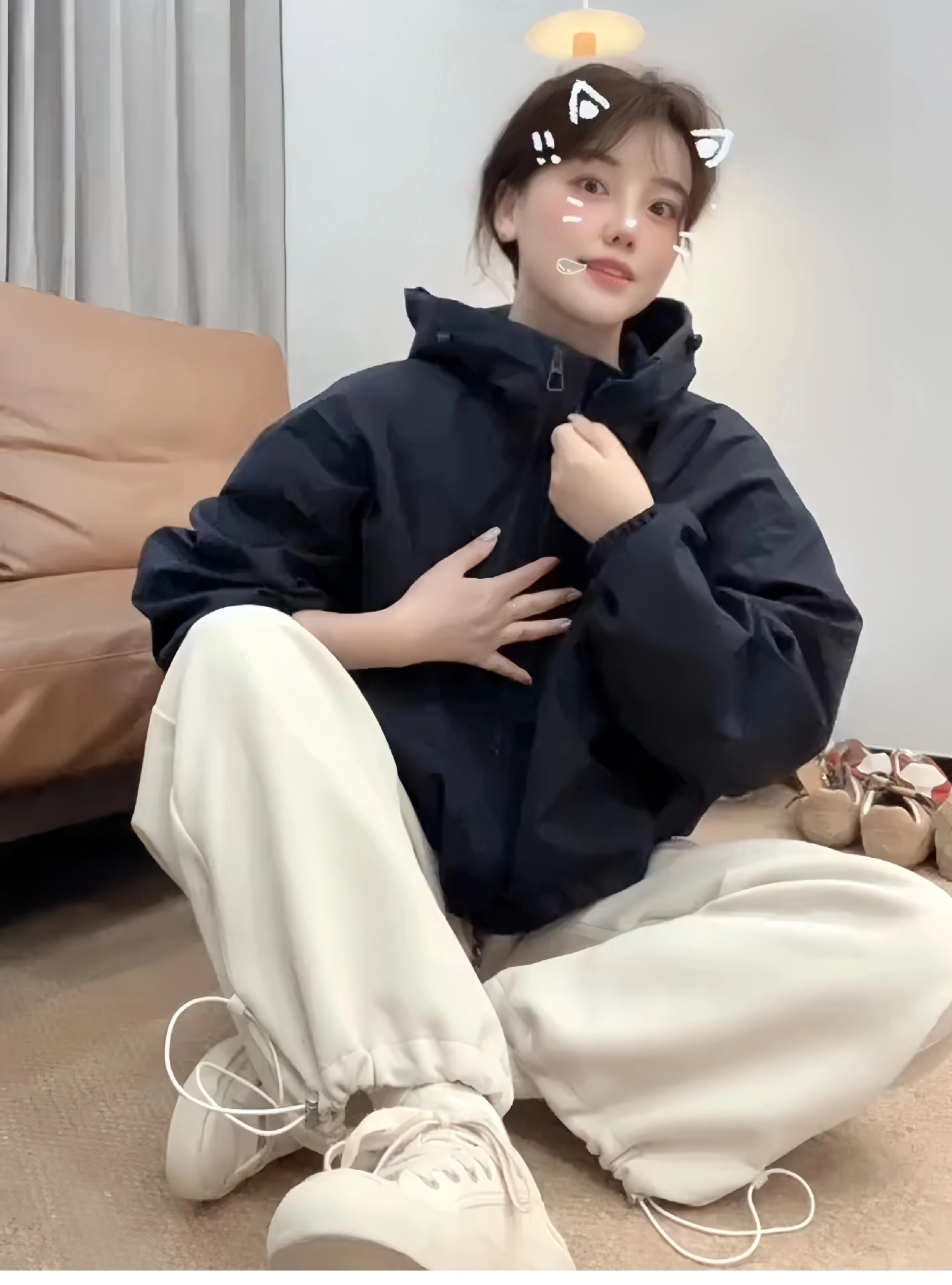 유럽 역 더블 지퍼 캐주얼 루즈 후드 재킷 코트 여자 2024 가을 및 겨울 짧은 재킷 올 매치 탑스토어 가기