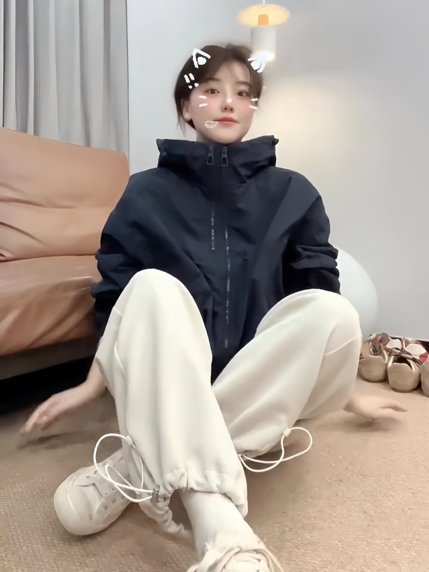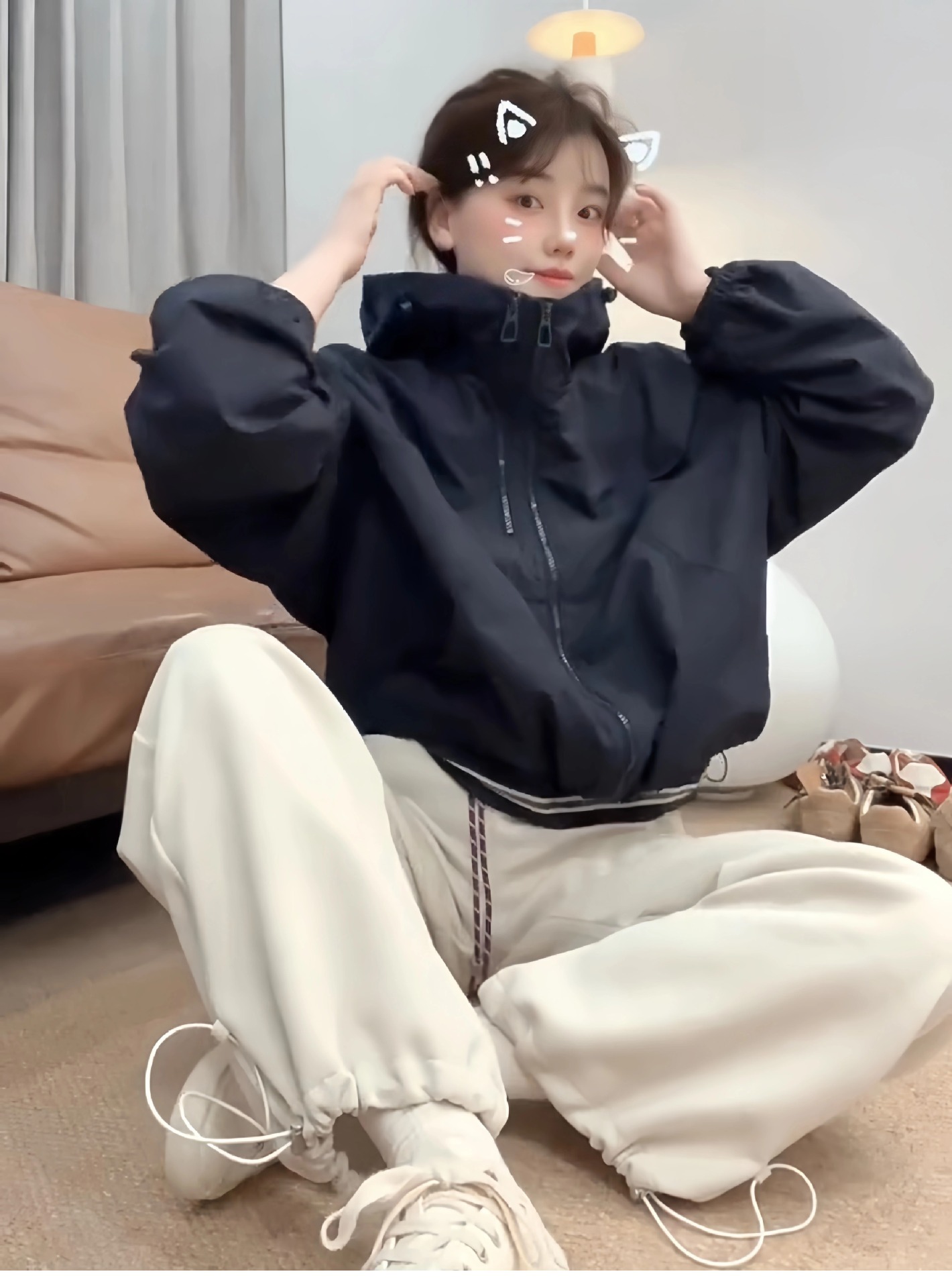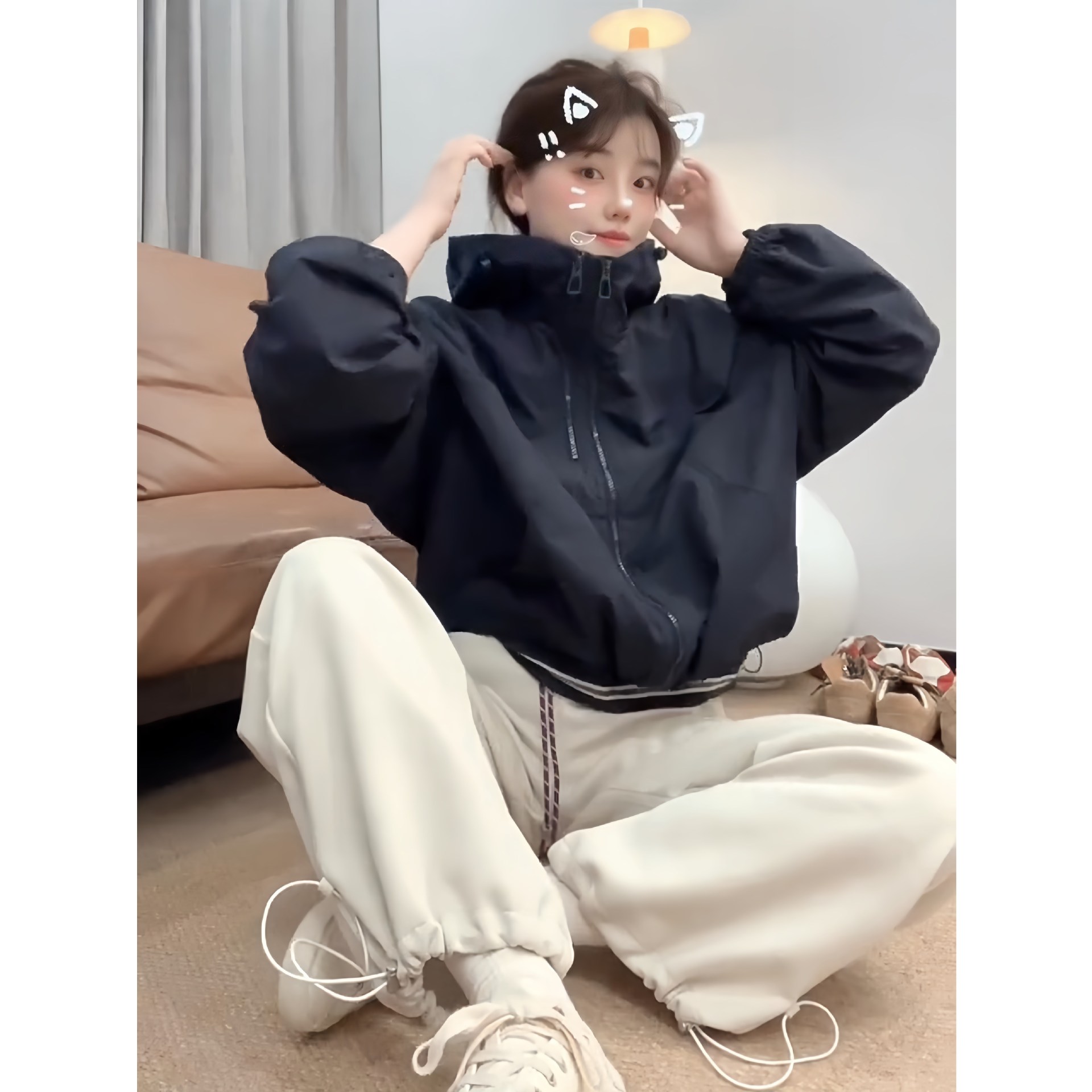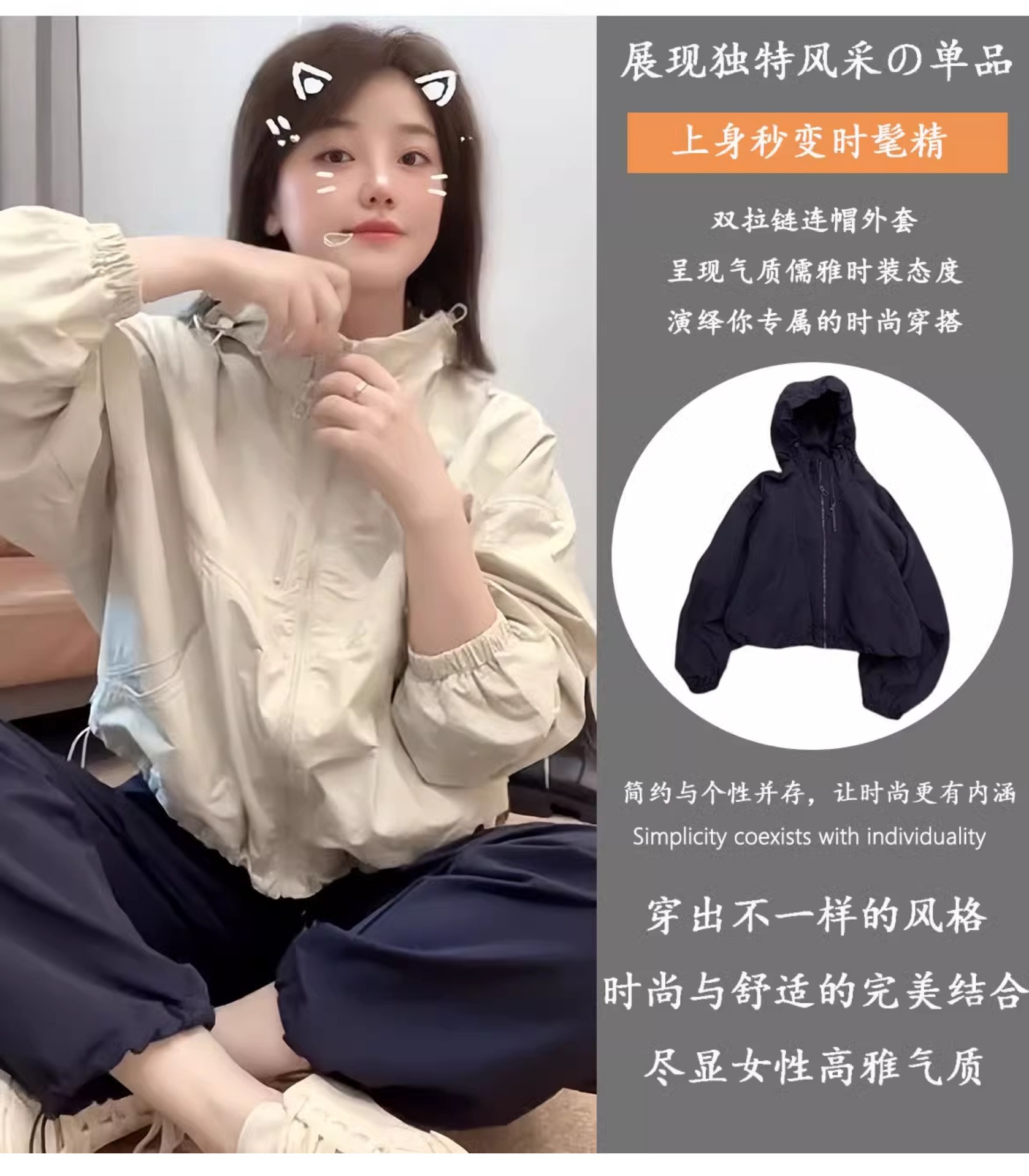 유럽 역 더블 지퍼 캐주얼 루즈 후드 재킷 코트 여자 2024 가을 및 겨울 짧은 재킷 올 매치 탑