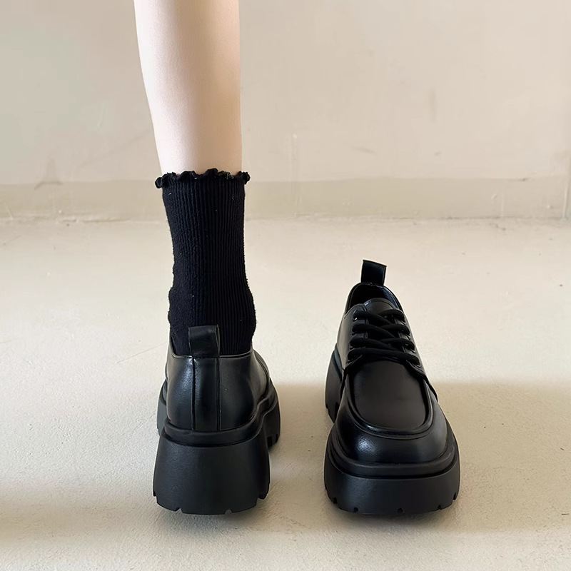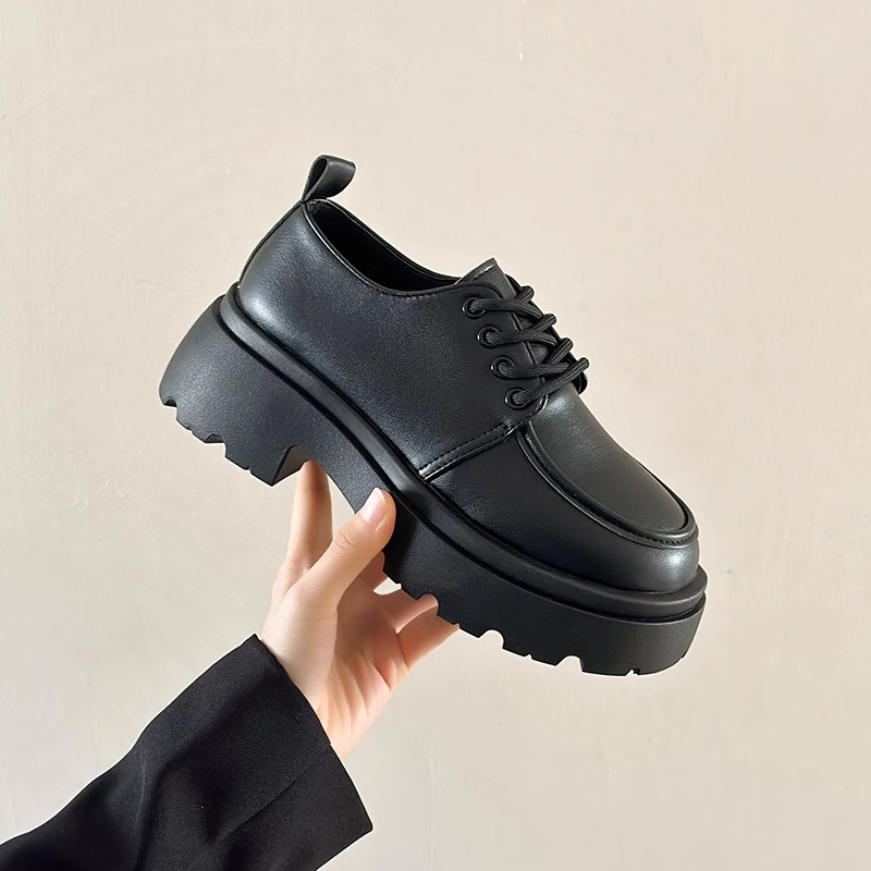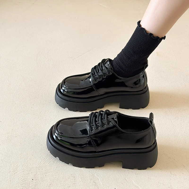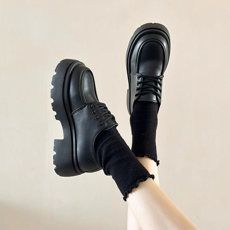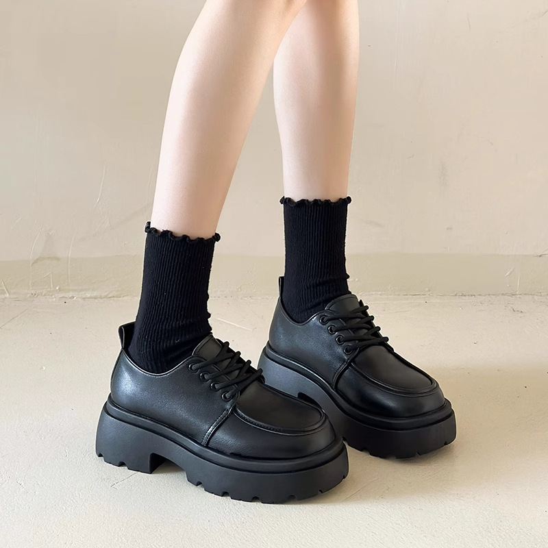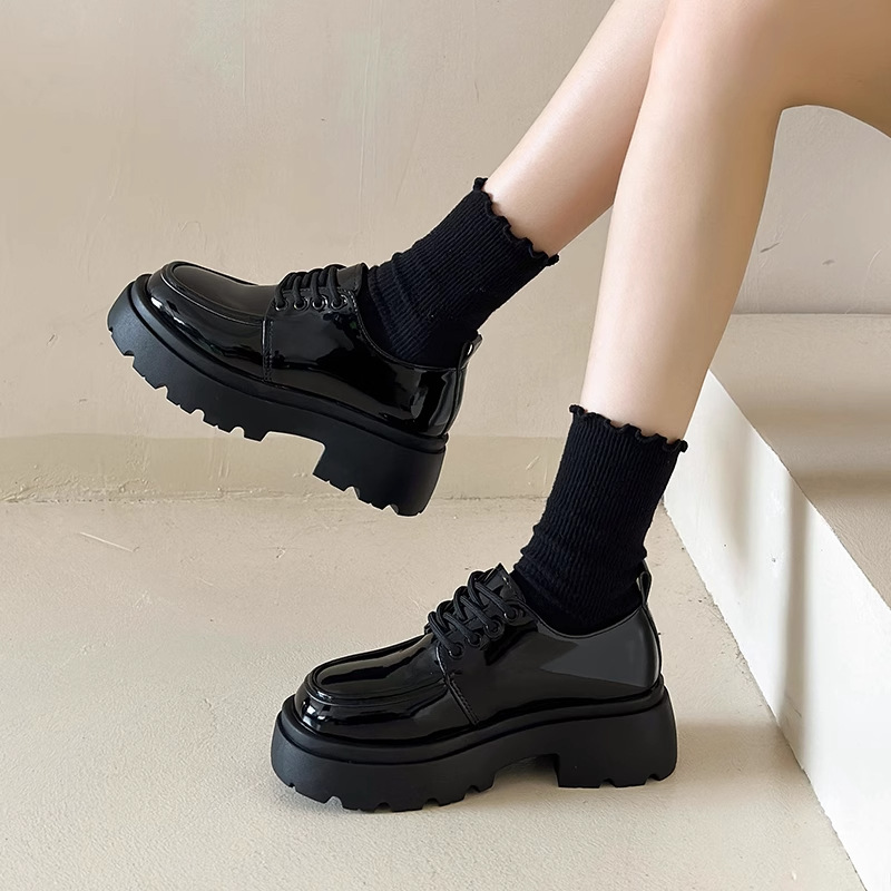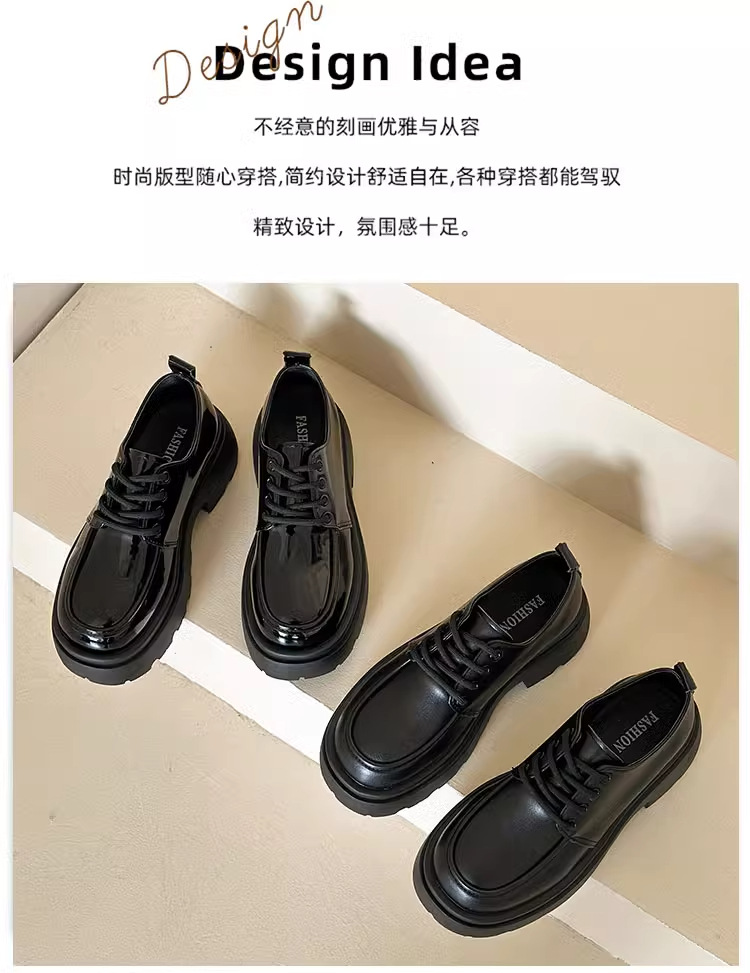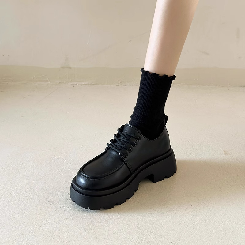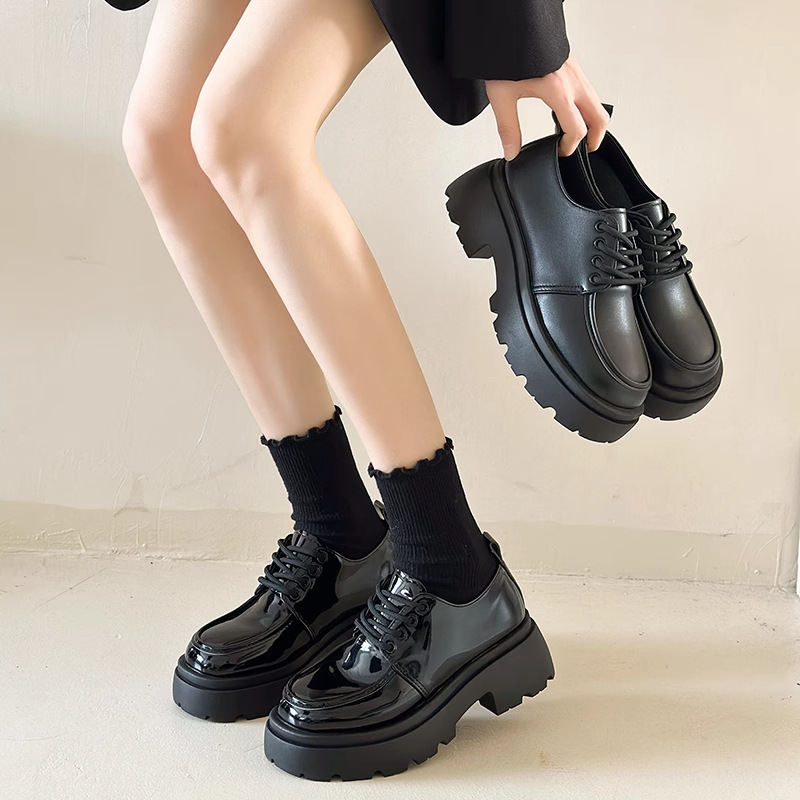 영국 스타일 두꺼운 바닥 작은 가죽 신발 여성의 2024 새로운 도착 가을 및 겨울 메리 제인 올 매치 퍼핀 로퍼 블랙 JK 싱글 레이어 신발스토어 가기