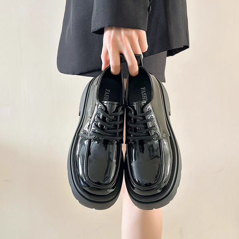 영국 스타일 두꺼운 바닥 작은 가죽 신발 여성의 2024 새로운 도착 가을 및 겨울 메리 제인 올 매치 퍼핀 로퍼 블랙 JK 싱글 레이어 신발