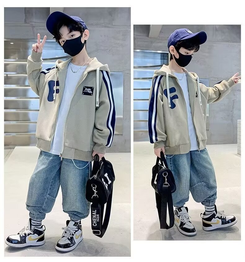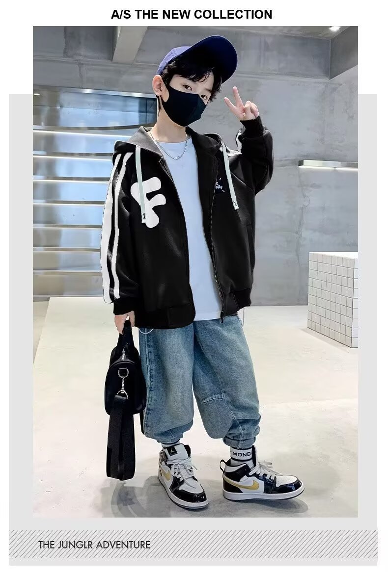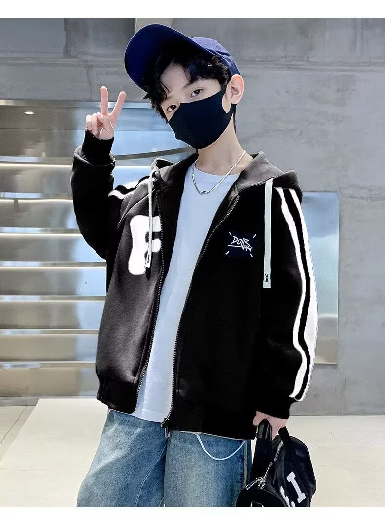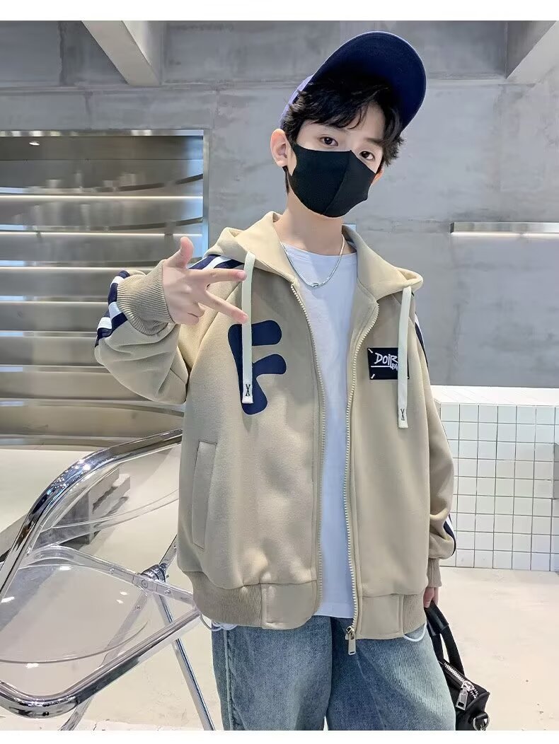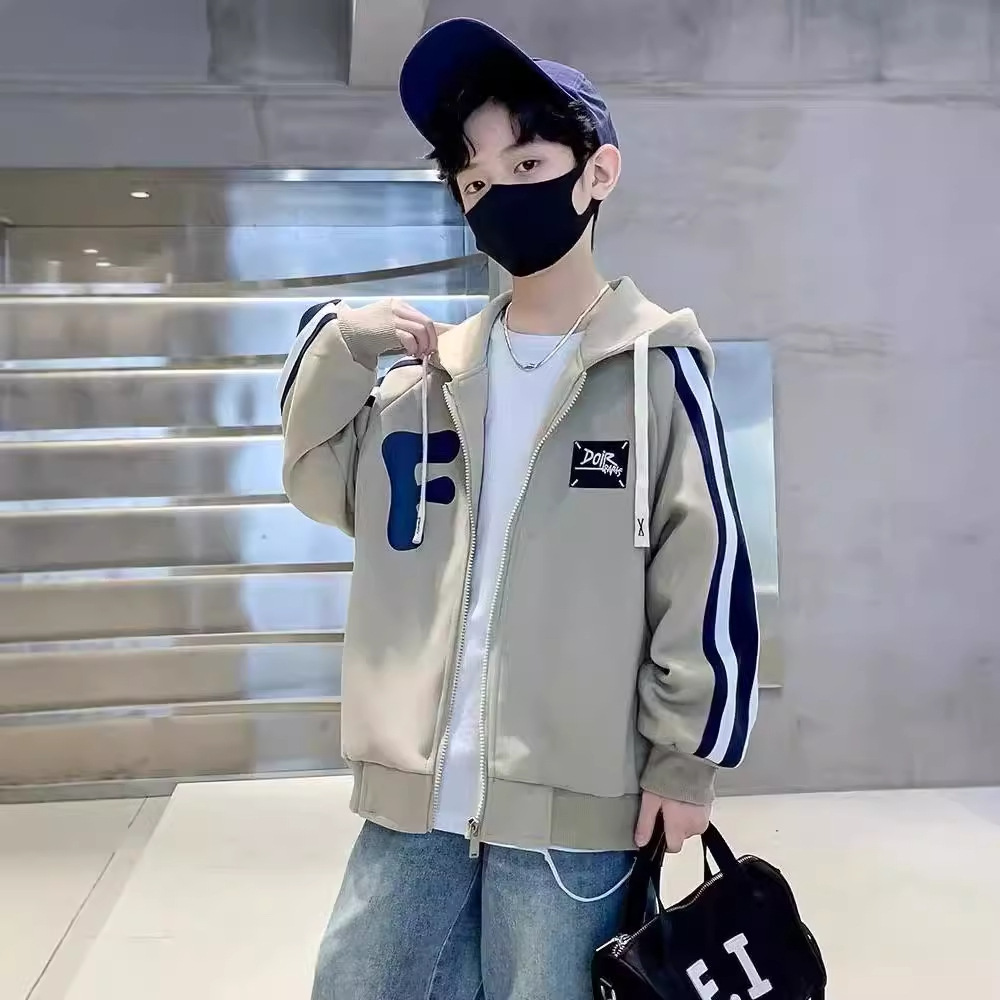 어린이 봄과 가을 스포츠 톱 소년의 가을 코트 2024 가을 새로운 큰 어린이 후드 카디건 스웨터 패션