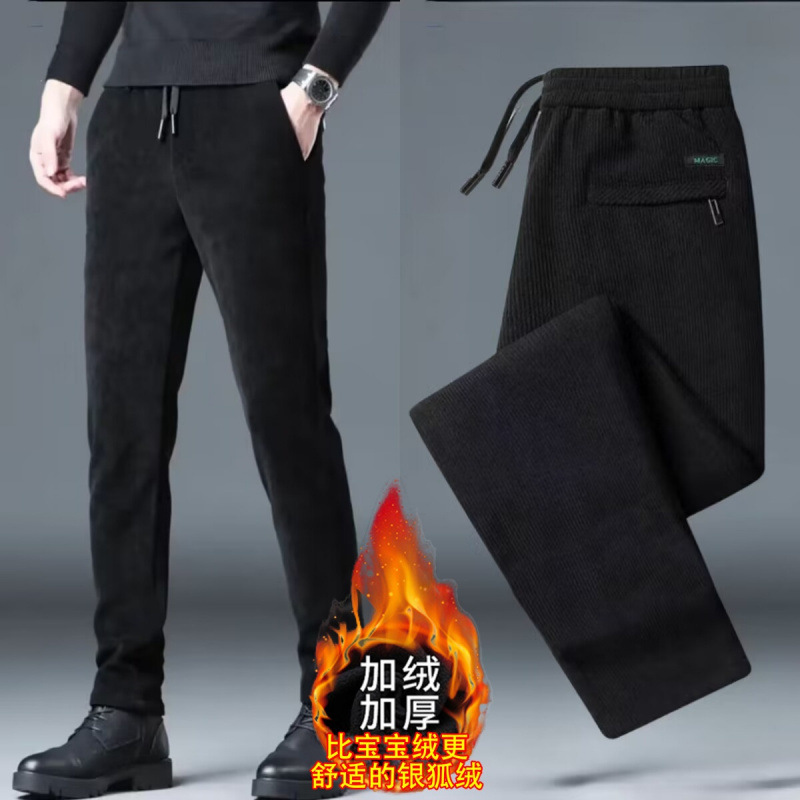 2024 새로운 헤비 코듀로이 땀 바지 가을과 겨울 남자 느슨한 캐주얼 기모 두꺼운 스포츠 스트레이트 바지스토어 가기