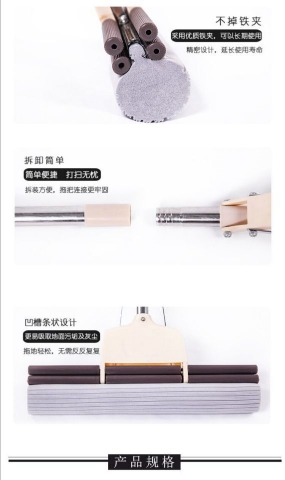 게으른 걸레 가정용 스폰지 흡수성 걸레 고무 면 걸레 두꺼운 스테인레스 스틸 막대 손없는 세척스토어 가기