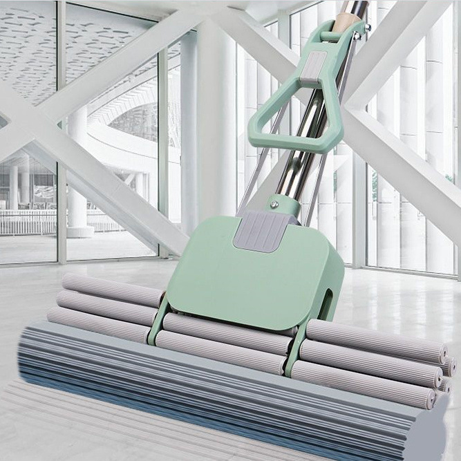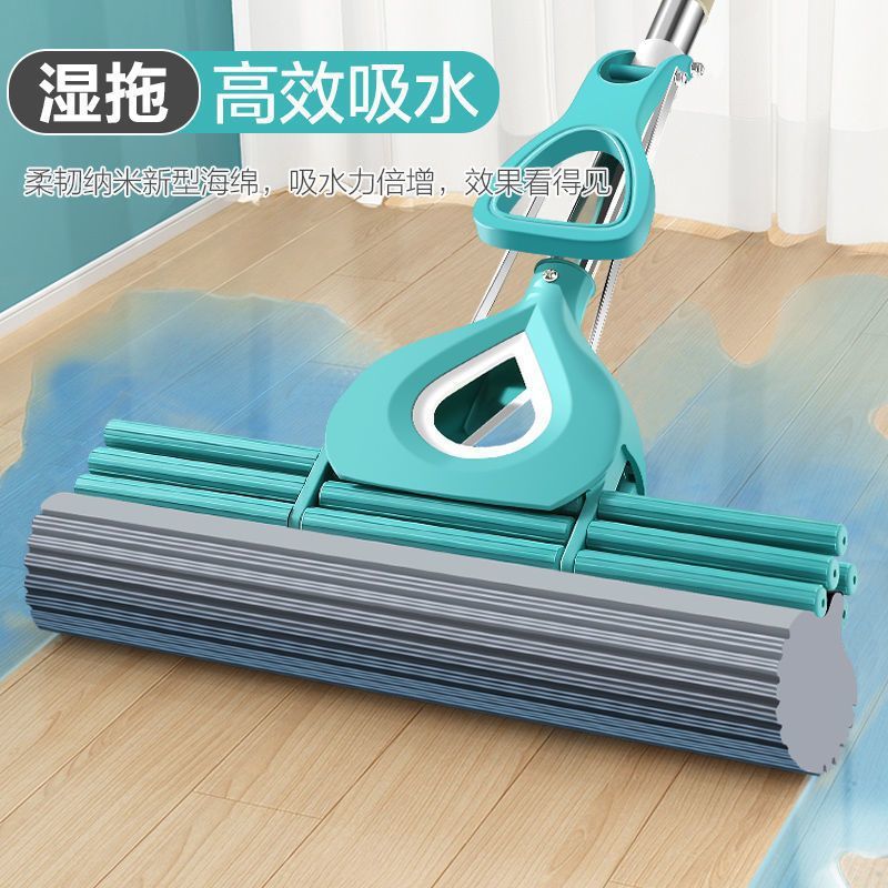 게으른 걸레 가정용 스폰지 흡수성 걸레 고무 면 걸레 두꺼운 스테인레스 스틸 막대 손없는 세척