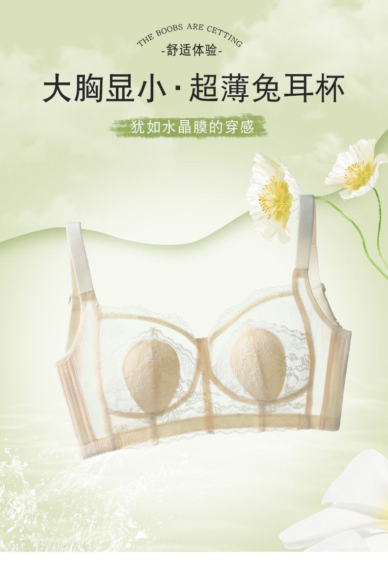 여름 초박형 속옷 여성용 대형 가슴 작은 처짐 방지 파라멜리스 토끼 귀 컵 스틸 링 조정 가능한 플러스 사이즈 브라스토어 가기