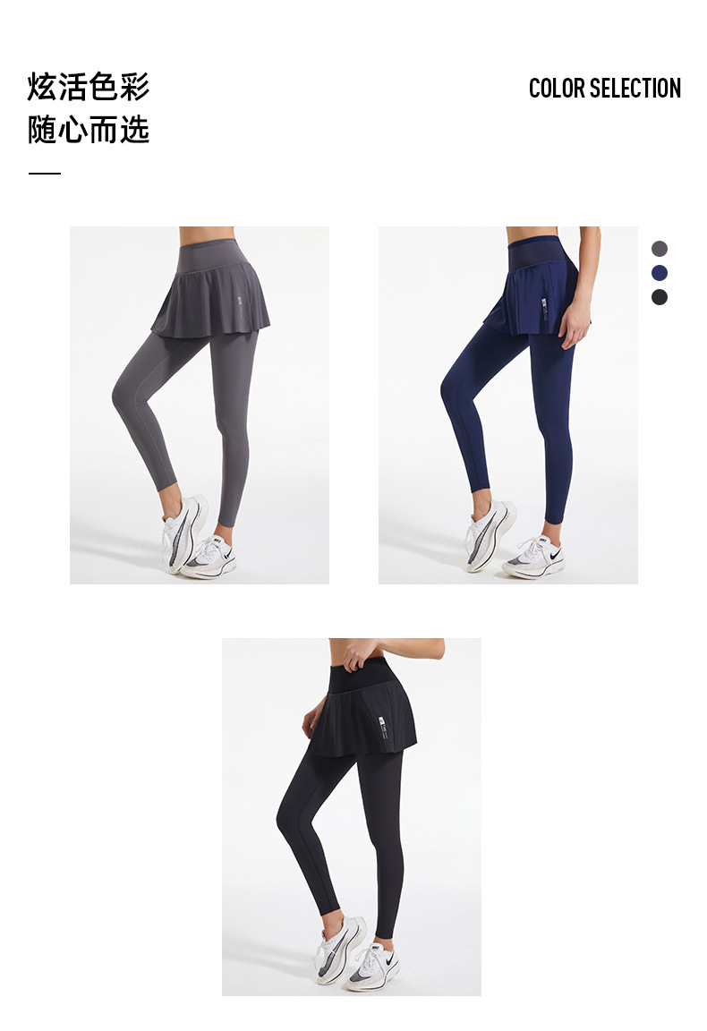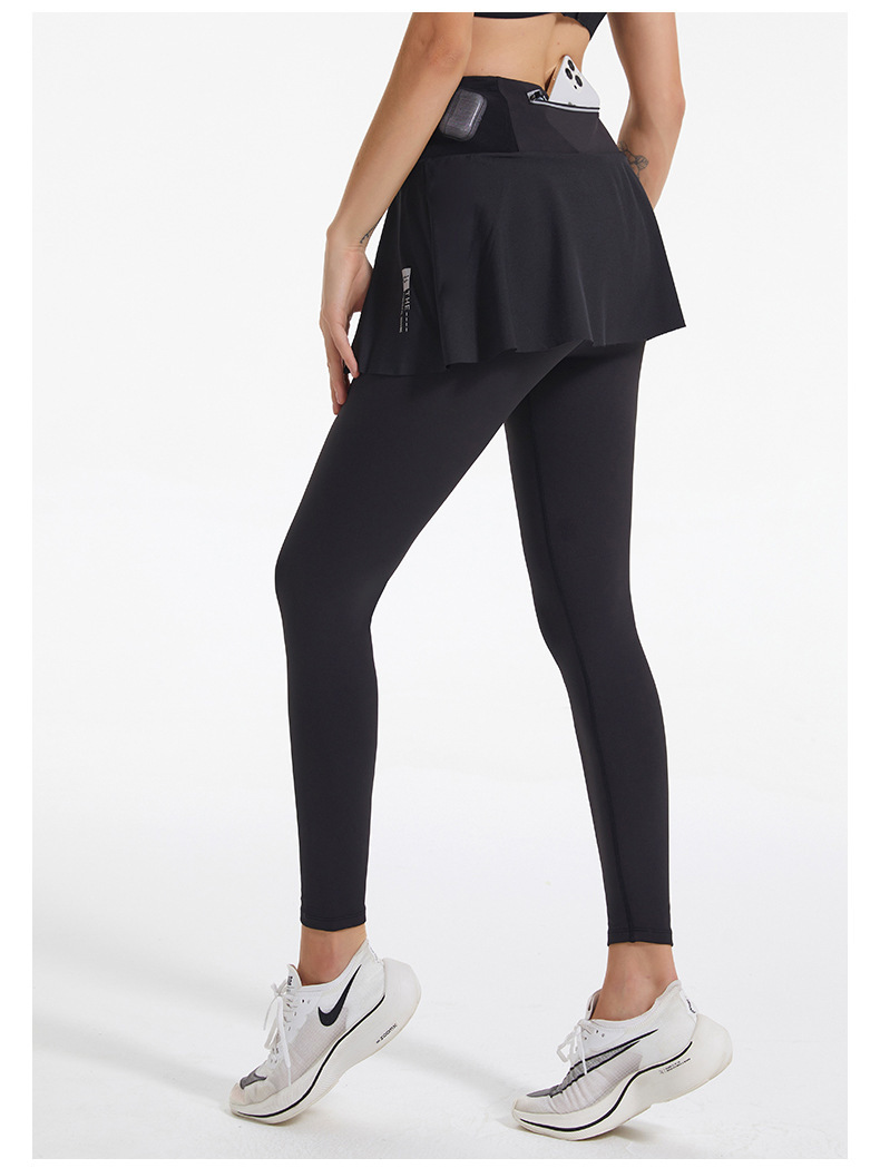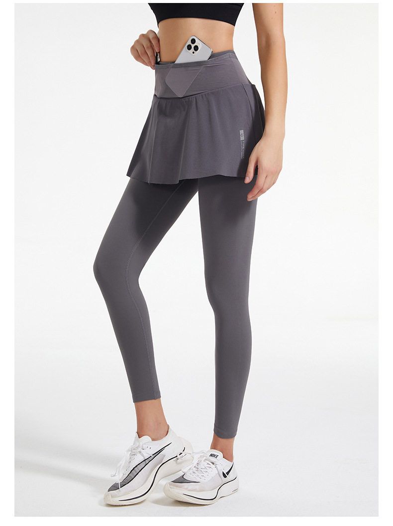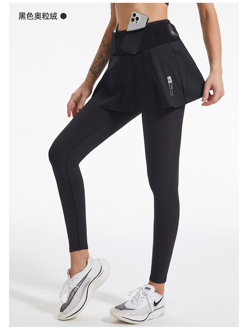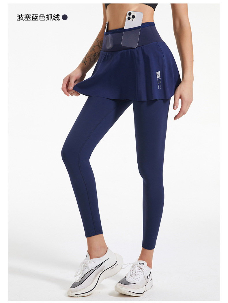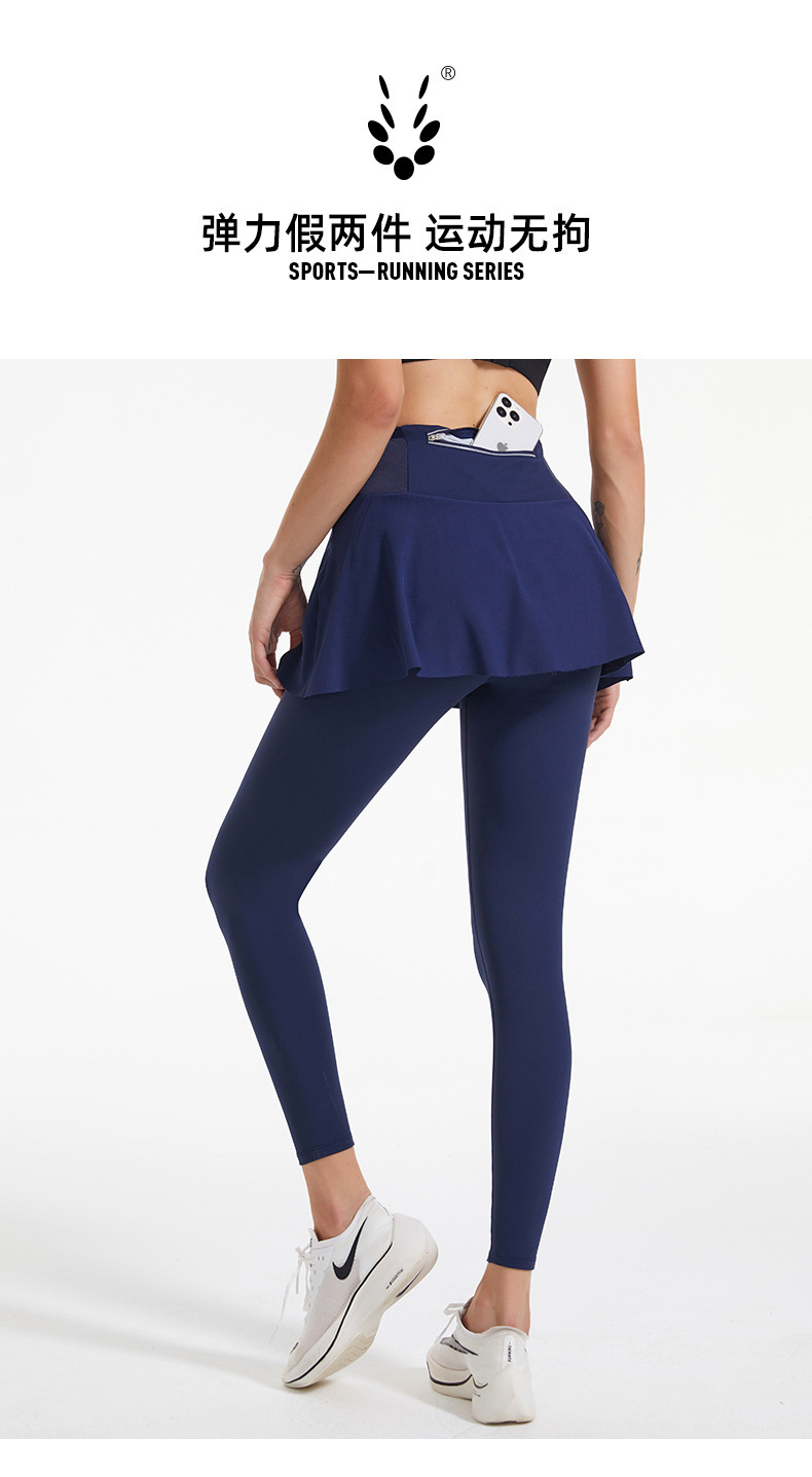 멀티 포켓 러닝 바지 여성 하이 웨이스트 야외 전문 가짜 투피스 빠른 건조 통기성 피트니스 모닝 러닝 타이트 바지