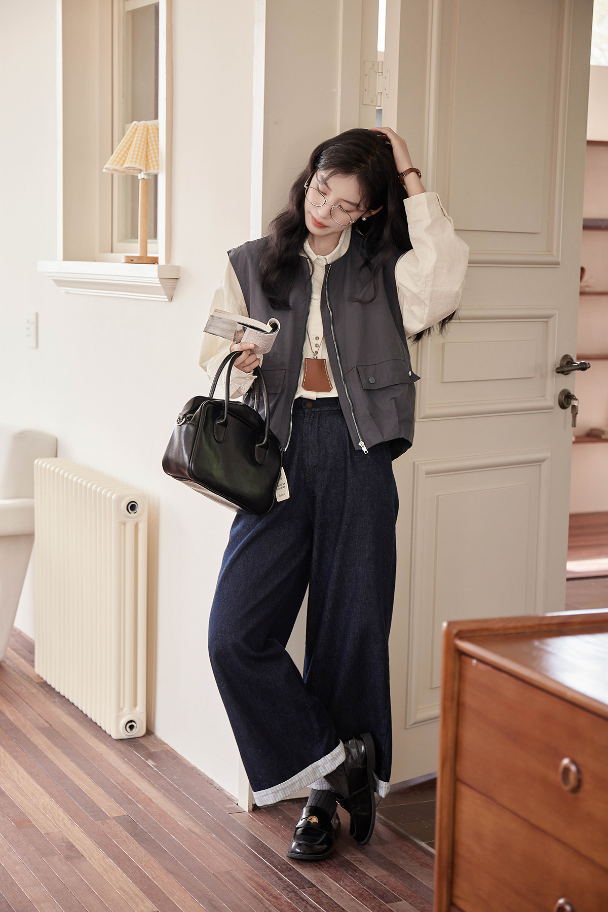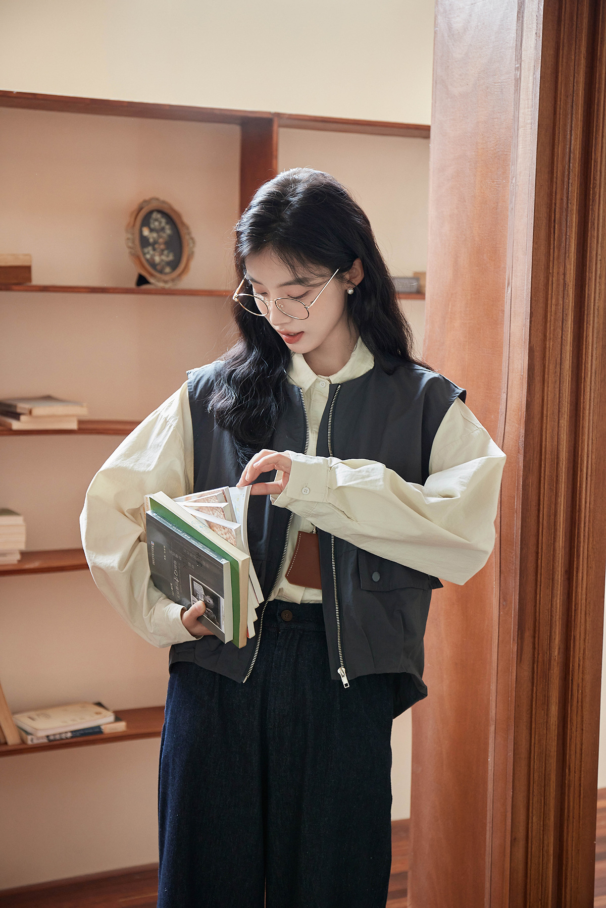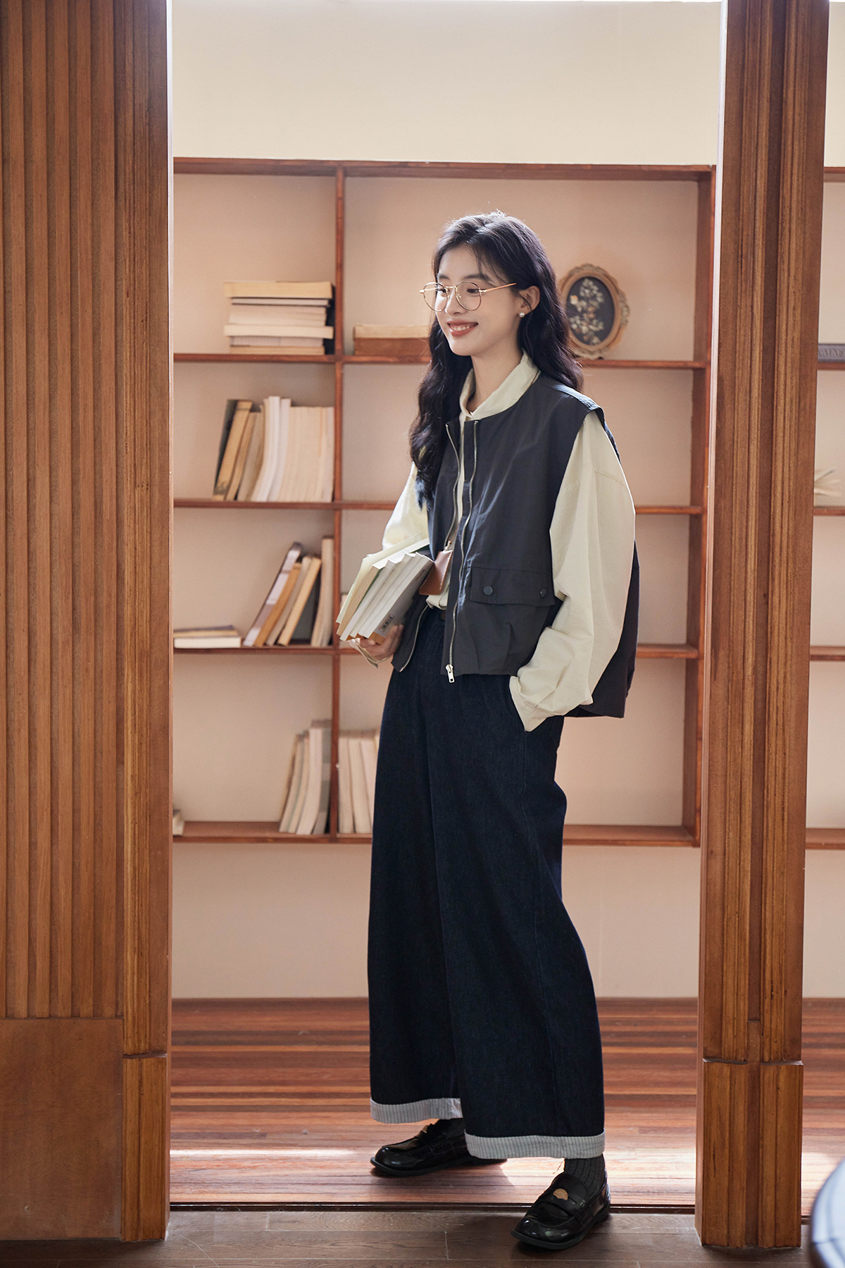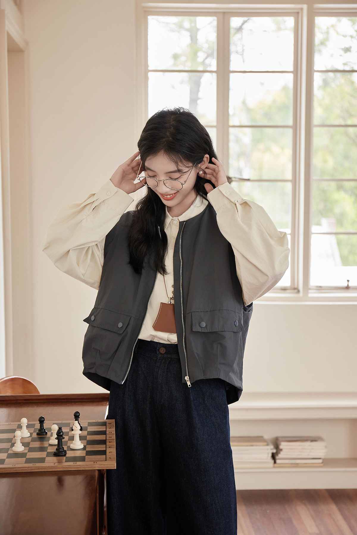 2024 가을과 겨울 새로운 일본 스타일 간단한 포켓 지퍼 조끼 여성 한국 스타일 민소매 쌓인 작업복스토어 가기