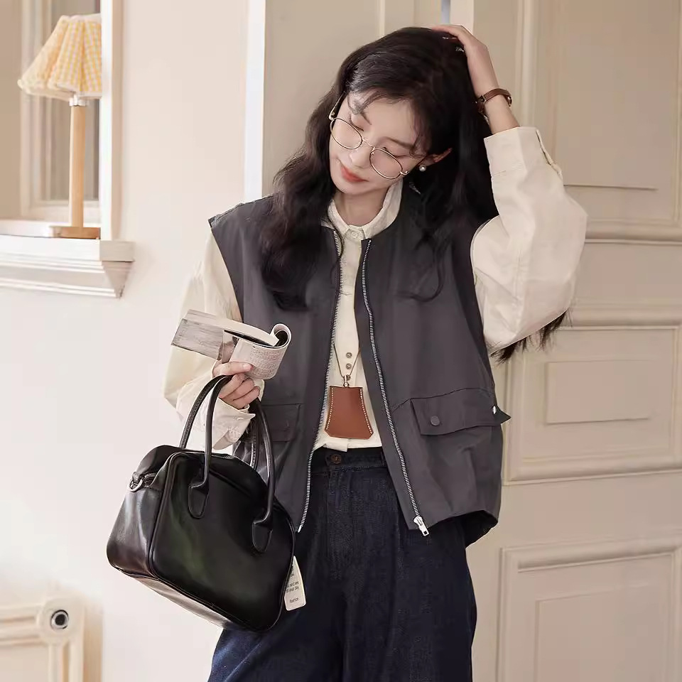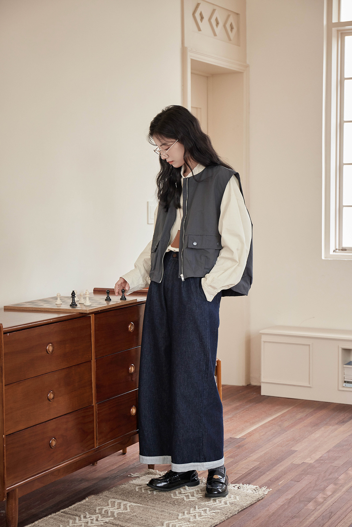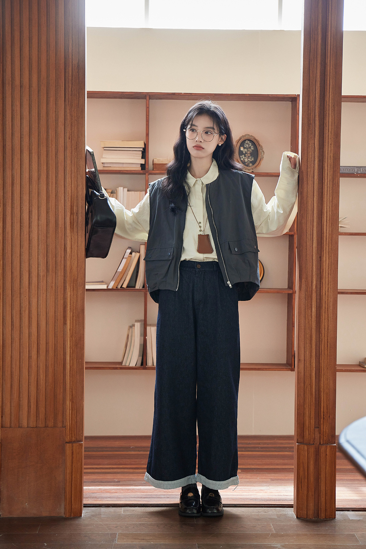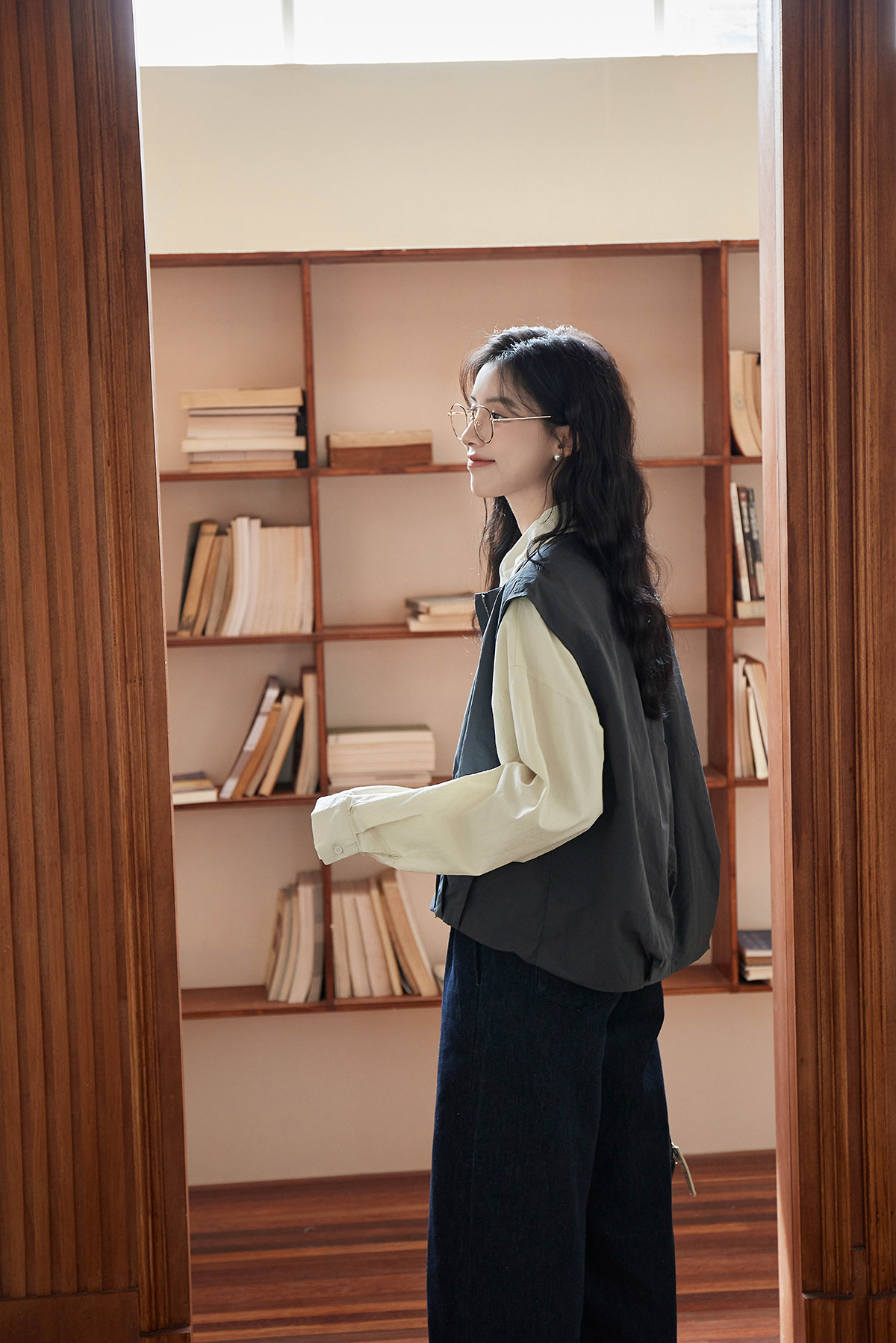 2024 가을과 겨울 새로운 일본 스타일 간단한 포켓 지퍼 조끼 여성 한국 스타일 민소매 쌓인 작업복스토어 가기