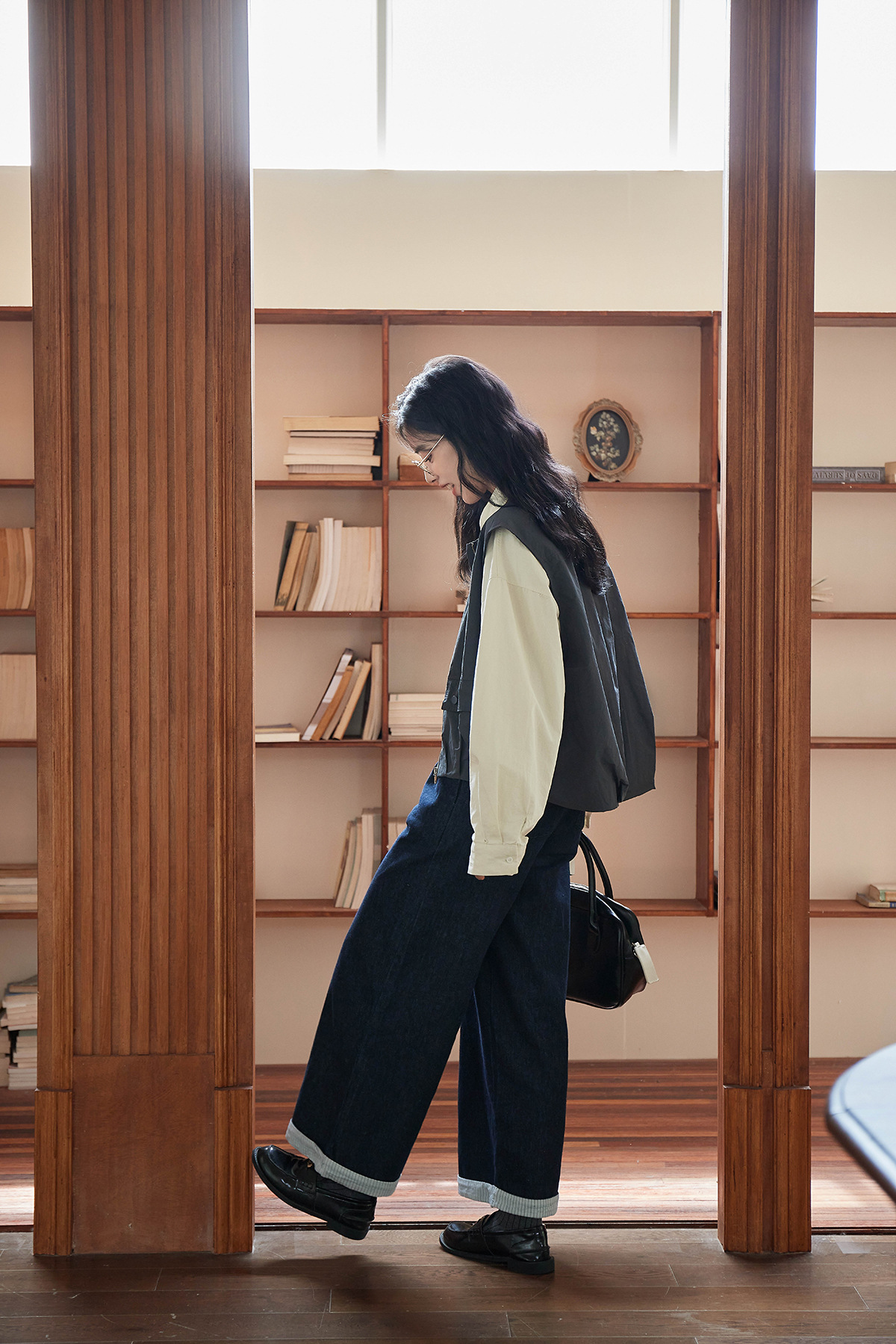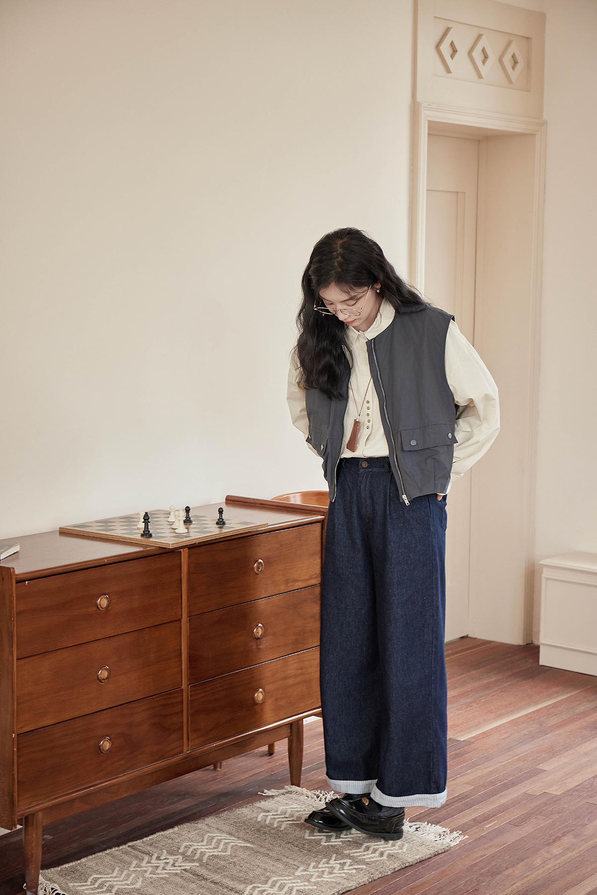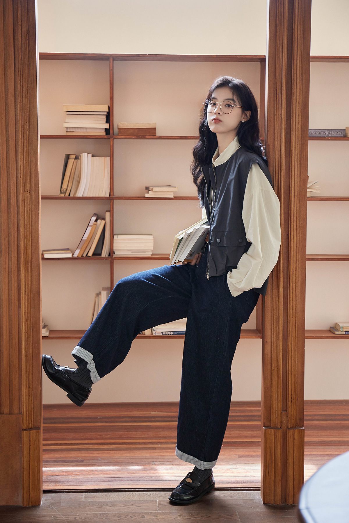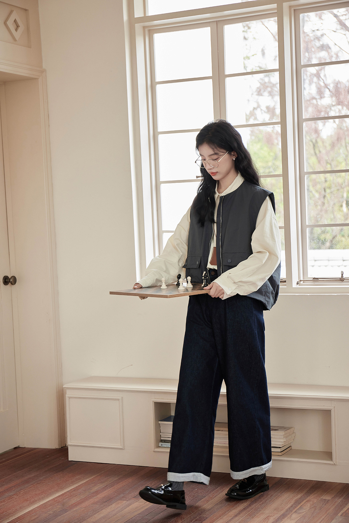 2024 가을과 겨울 새로운 일본 스타일 간단한 포켓 지퍼 조끼 여성 한국 스타일 민소매 쌓인 작업복스토어 가기
