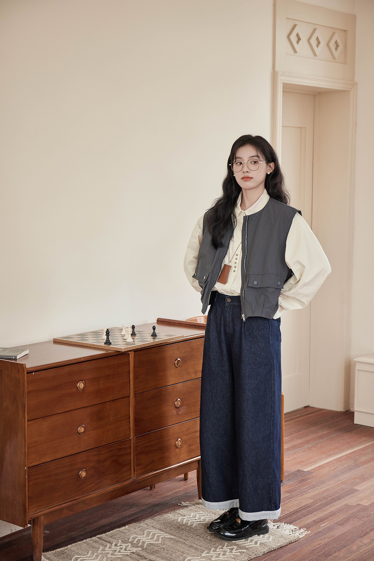 2024 가을과 겨울 새로운 일본 스타일 간단한 포켓 지퍼 조끼 여성 한국 스타일 민소매 쌓인 작업복