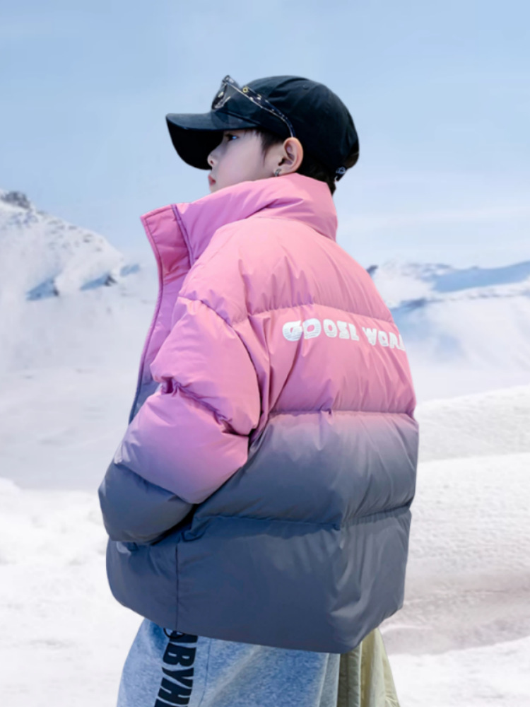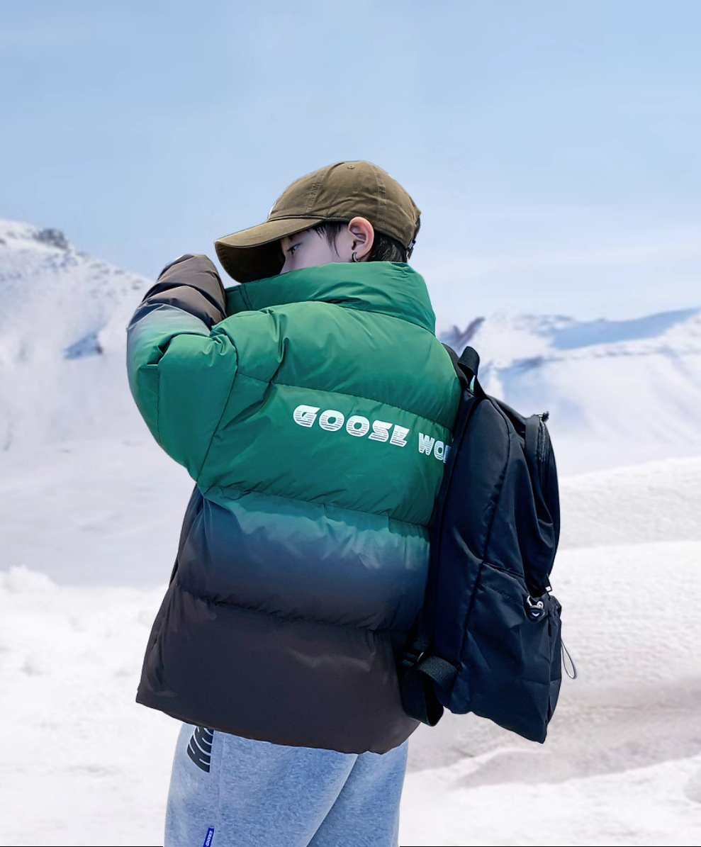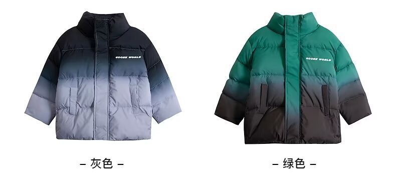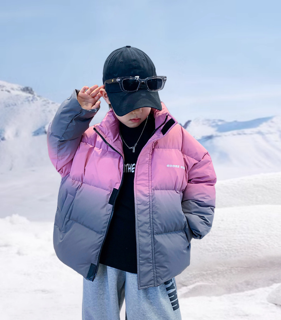 남학생 겨울 의류 그라디언트 2024 새로운 어린이 다운 재킷 덕 다운 중형 및 대형 소년 두꺼운 프라이드 스트리트 윈터 코트스토어 가기