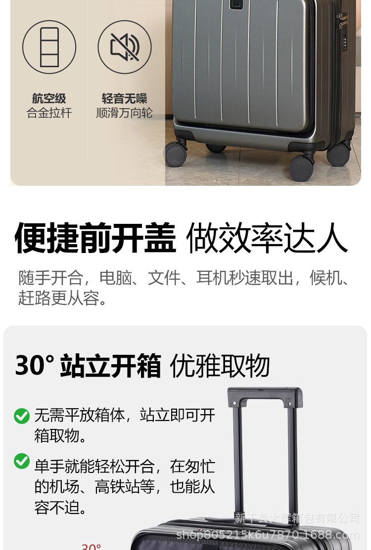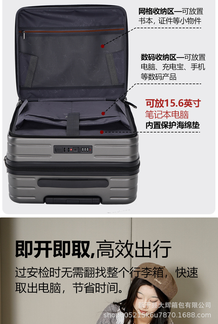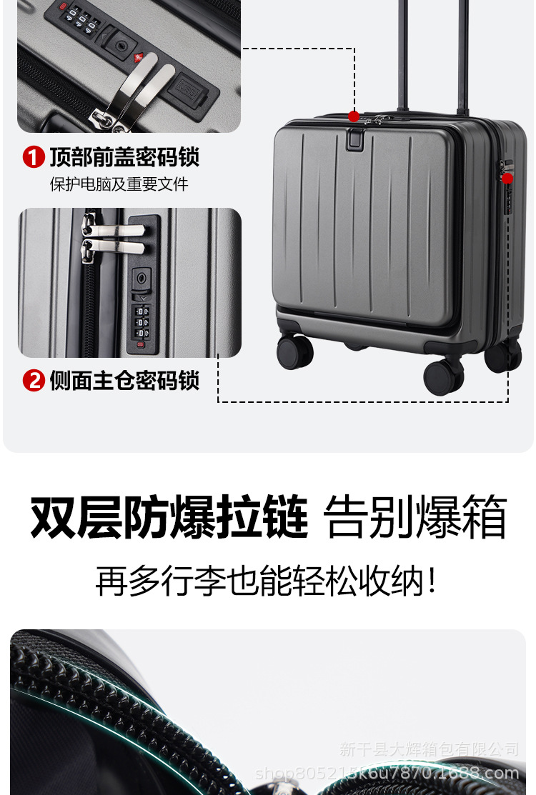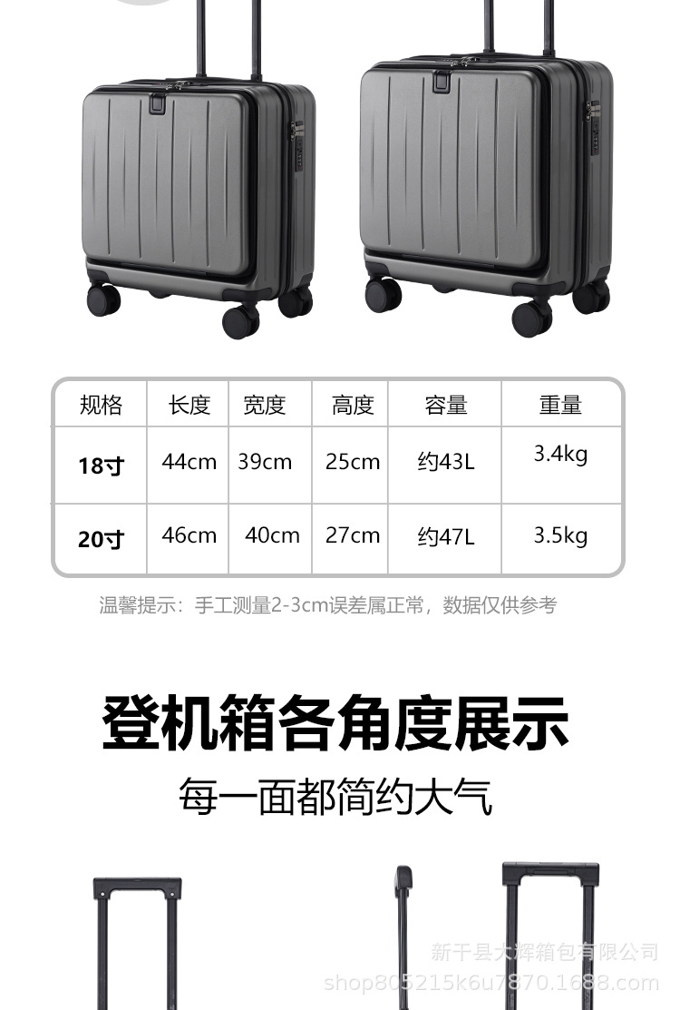 수하물 케이스 20 인치 탑승 케이스 18 전면 개방 가방 여성 남성 유니버설 휠 트롤리 케이스 작은 암호 상자