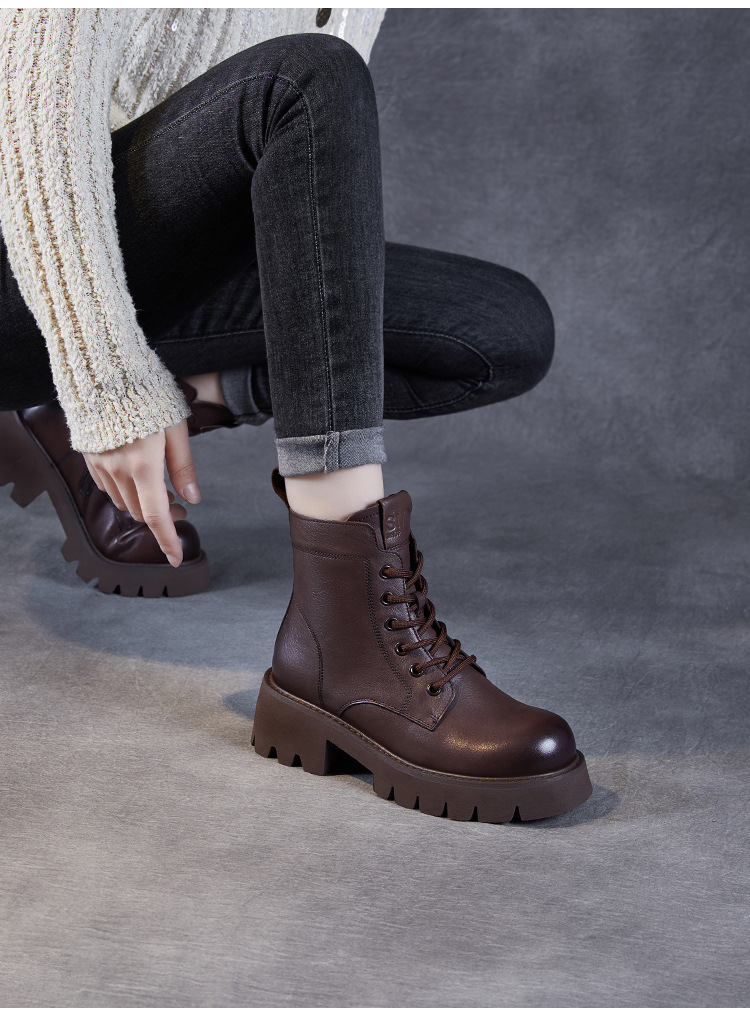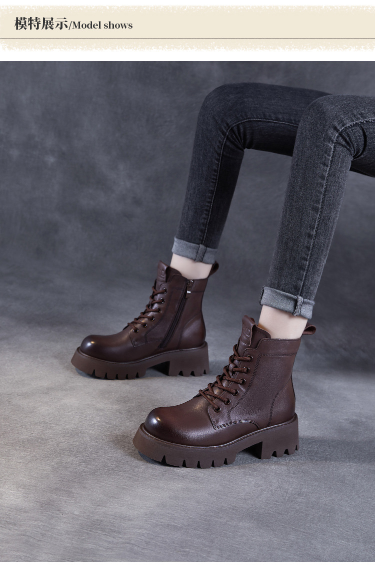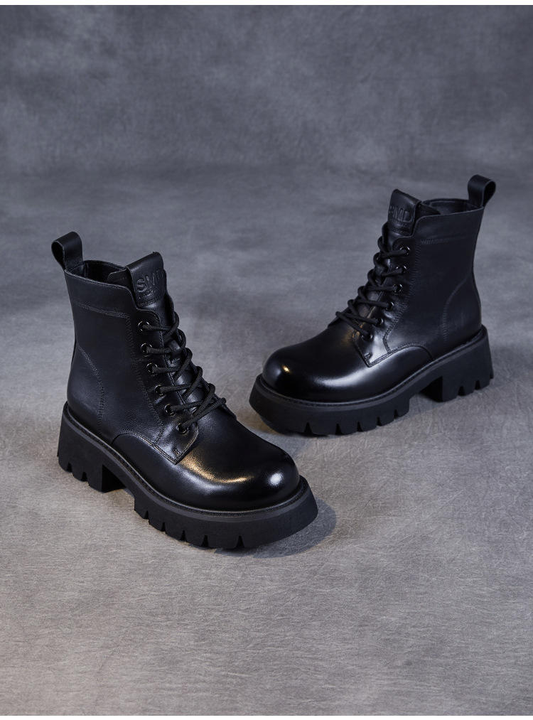 마틴 부츠 여성 영국 스타일 부츠 2024 가을 및 겨울 정품 가죽 패션 올 매치 플랫폼 높이 증가 캐주얼 발-작은 짧은 부츠 표시