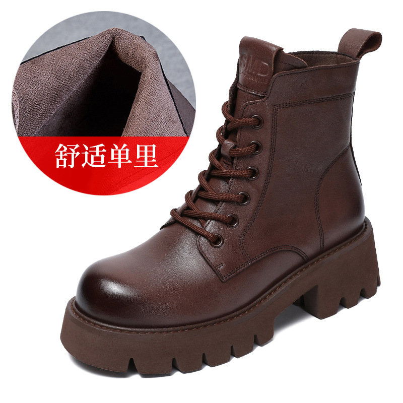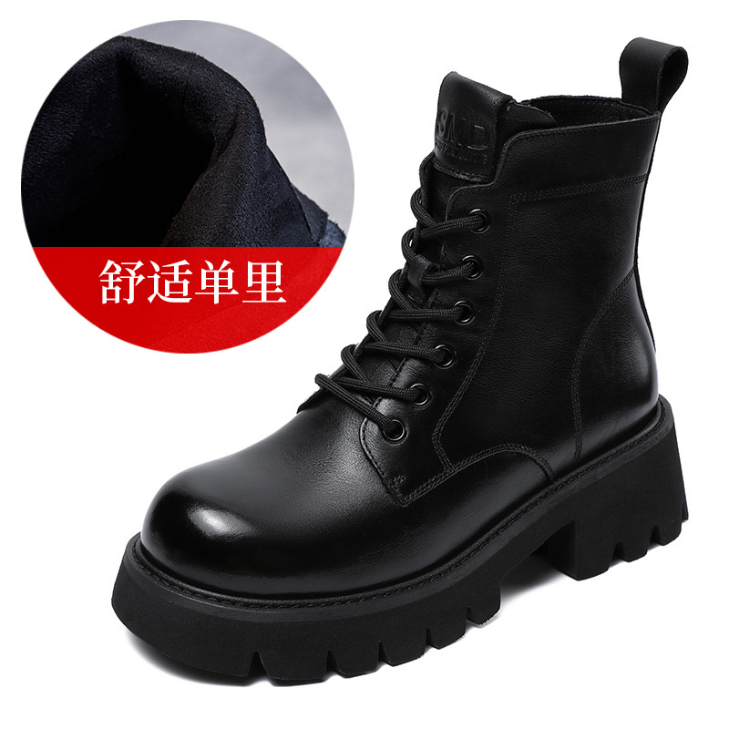 마틴 부츠 여성 영국 스타일 부츠 2024 가을 및 겨울 정품 가죽 패션 올 매치 플랫폼 높이 증가 캐주얼 발-작은 짧은 부츠 표시스토어 가기